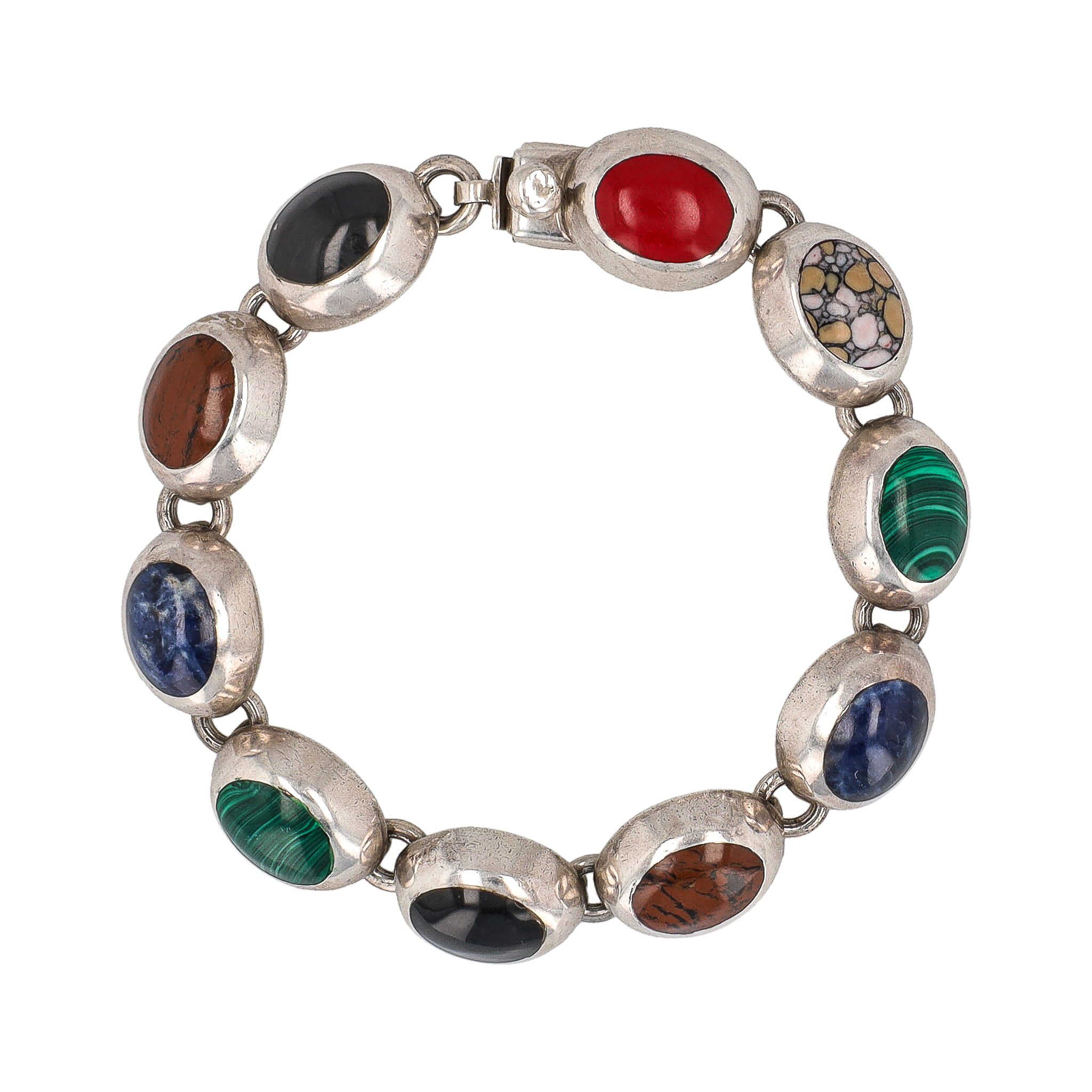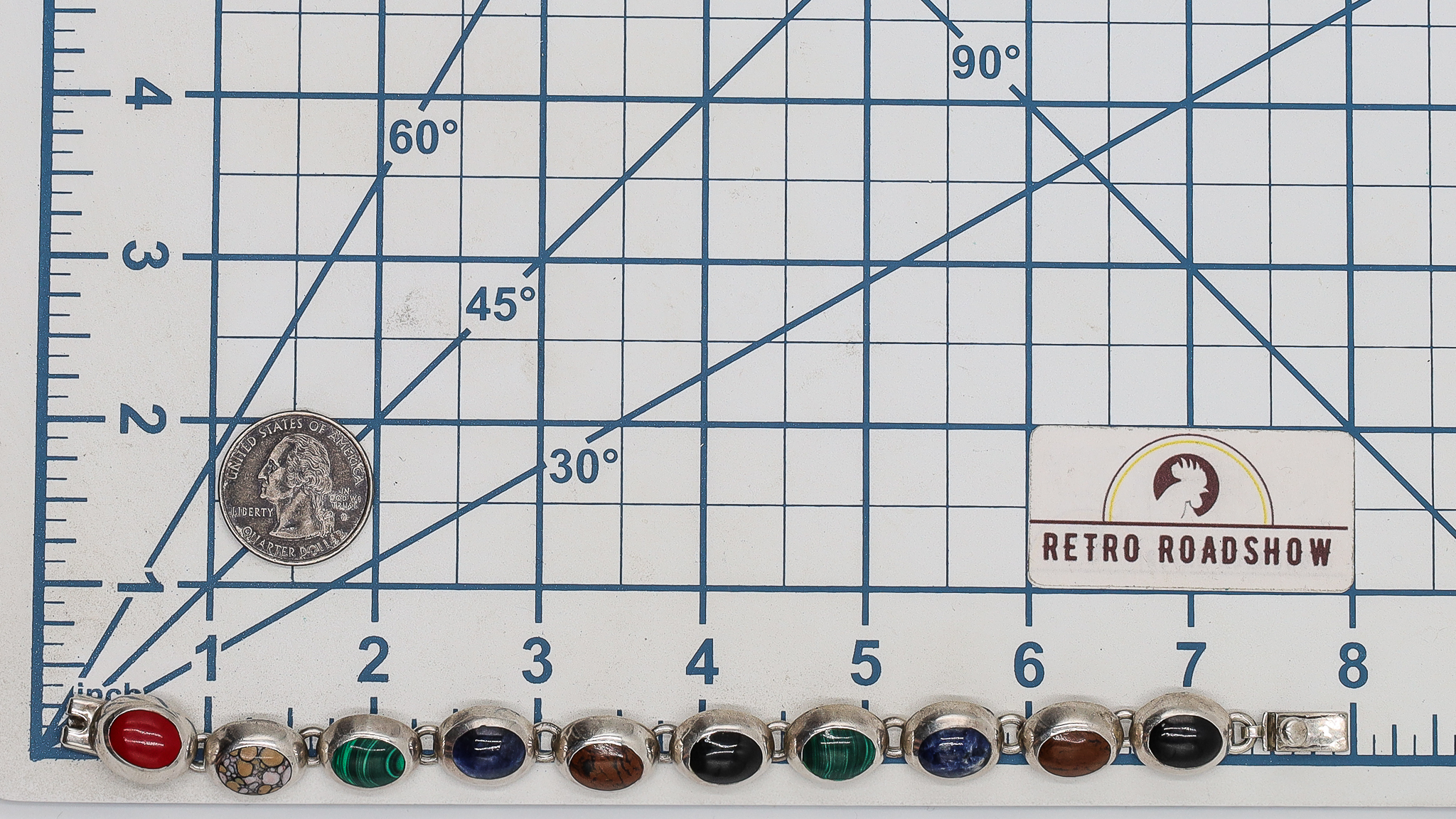 Signed TB-05 Taxco Mexico Onyx Jasper Malachite Sodalite Sterling Bracelet 41g