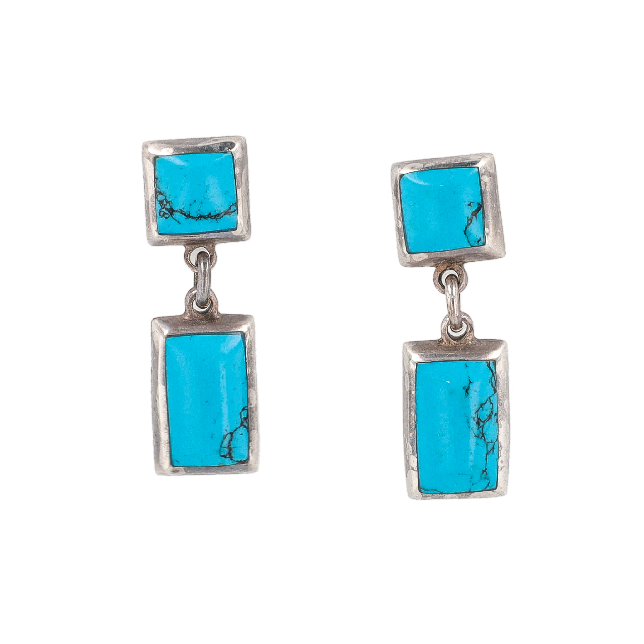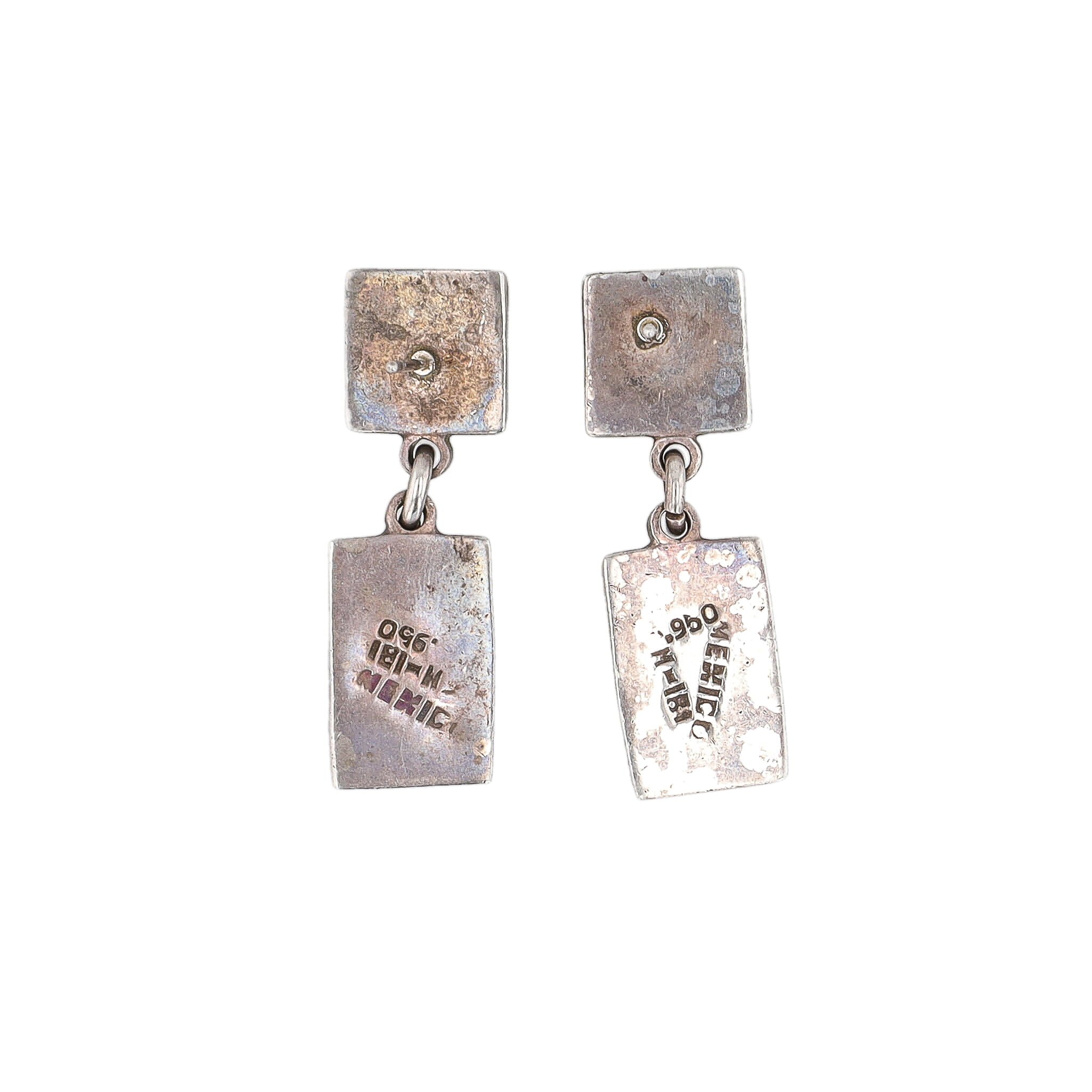 Signed TM-181 Taxco Mexico Turquoise 950 Silver Dangle Earrings 10g