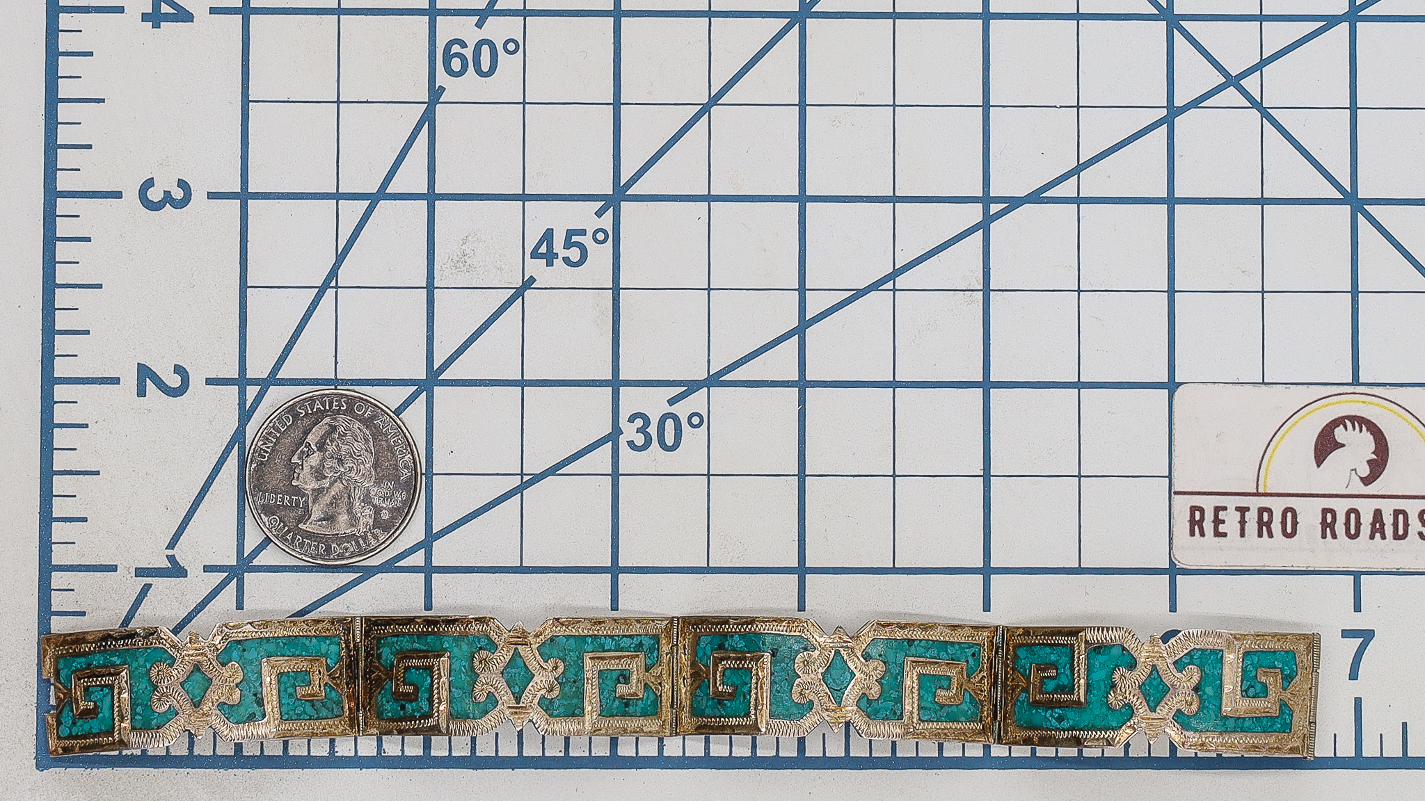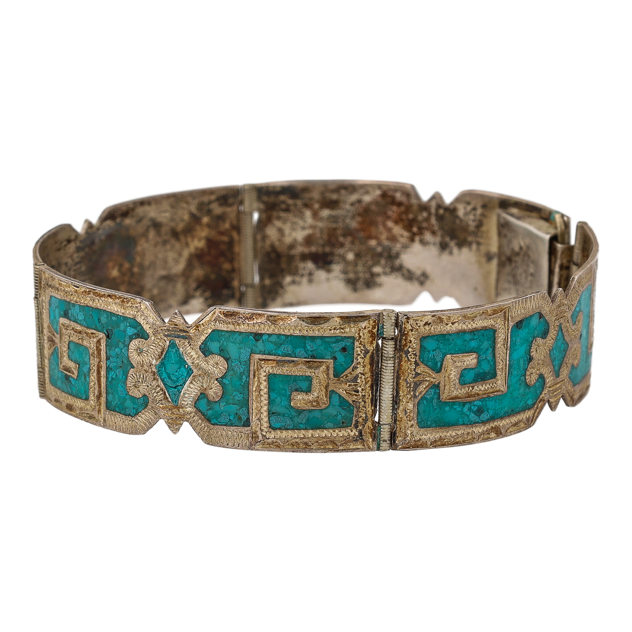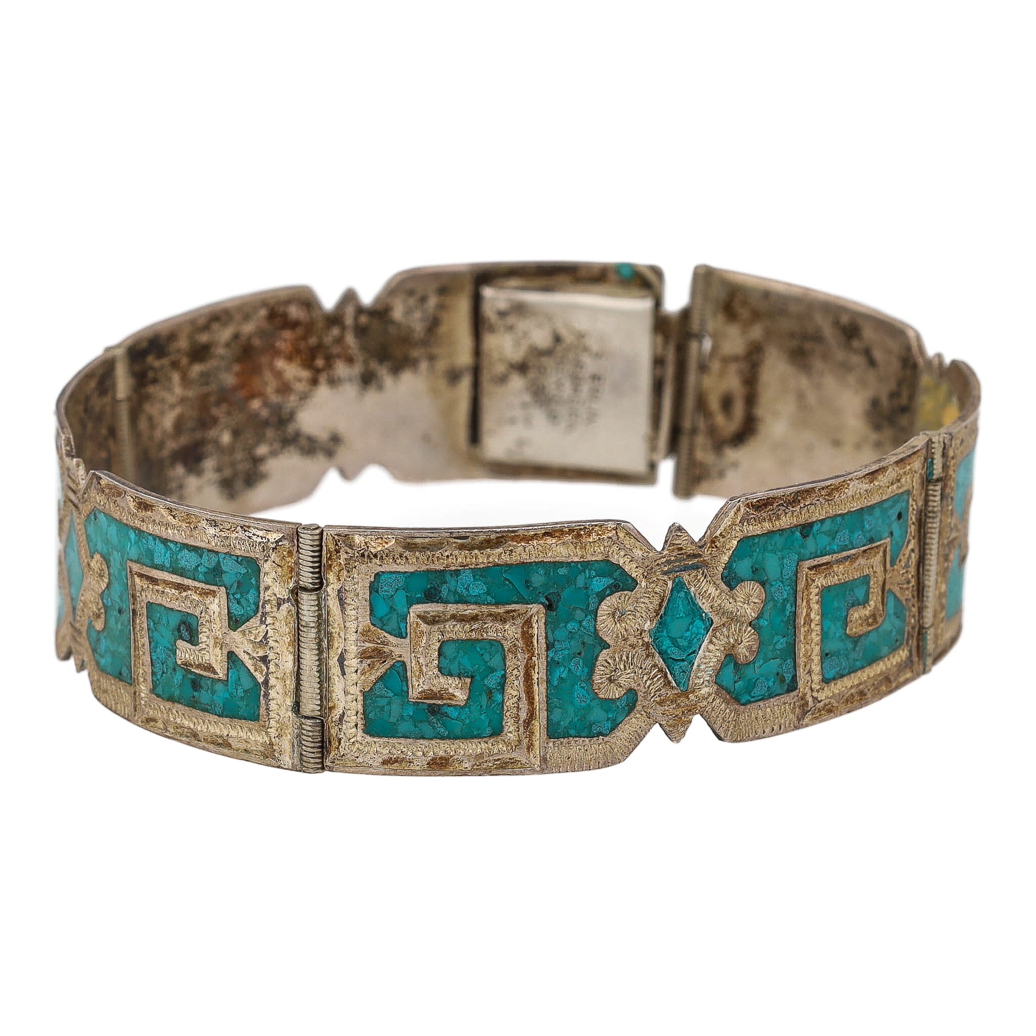 Vintage Mexico Crushed Turquoise Sterling Panel Bracelet 21g