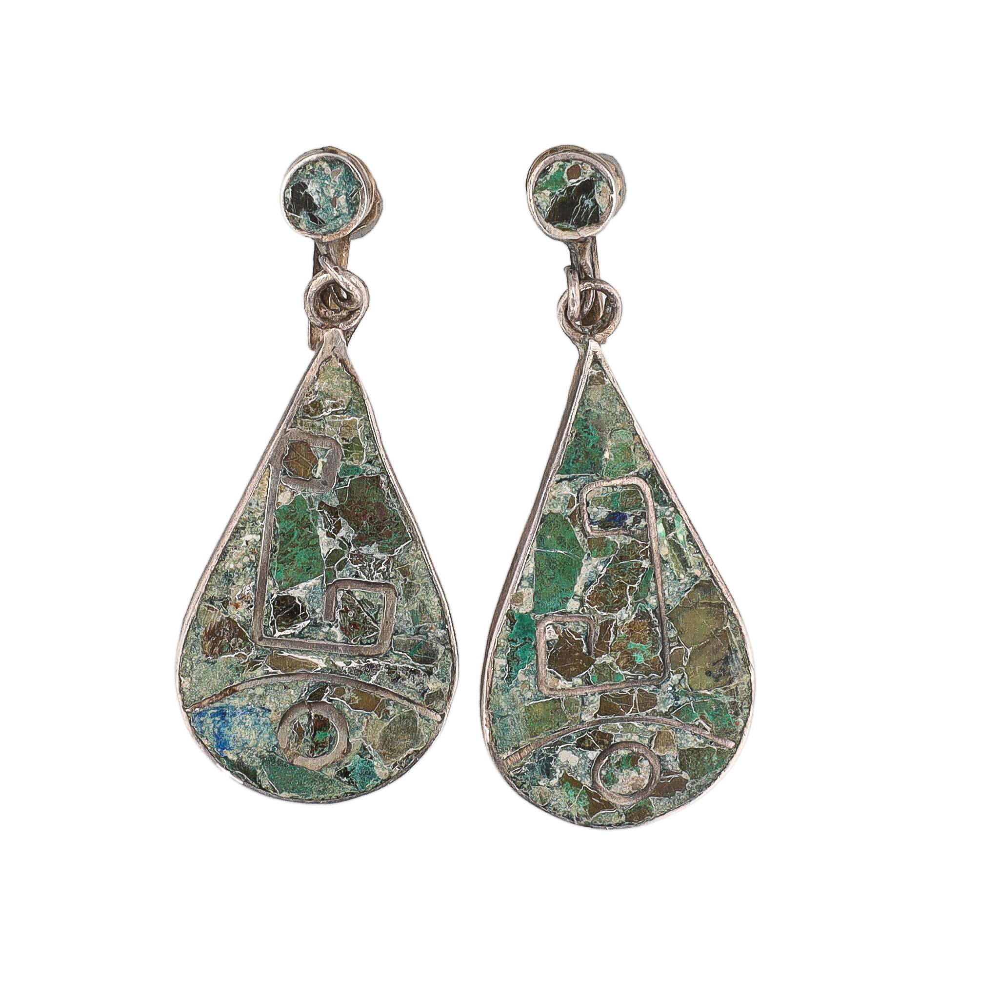 Vintage Crushed Turquoise Drop Dangle Earrings 8g