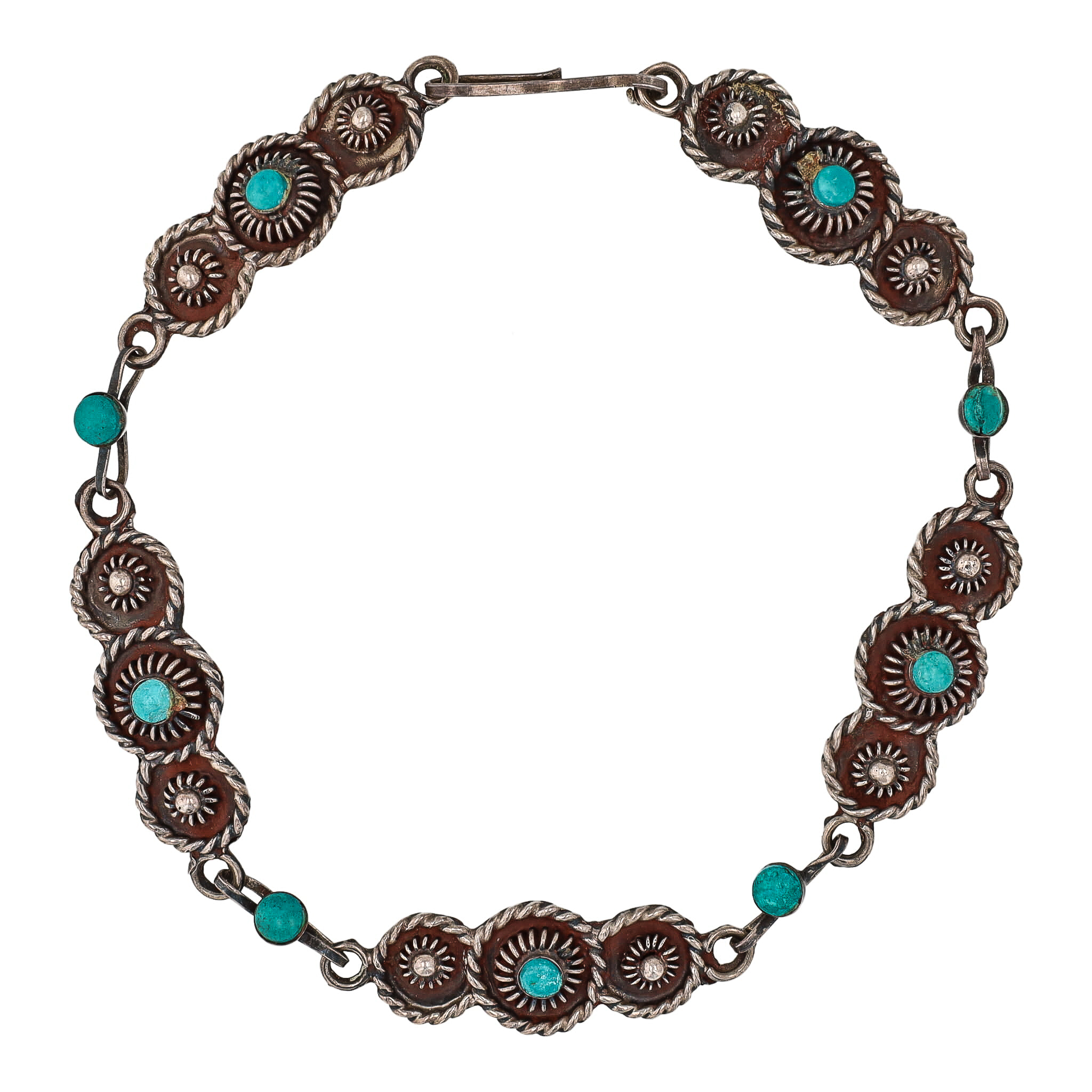 Signed DMD Taxco Mexico Snake Eye Turquoise Sterling Bracelet 8g