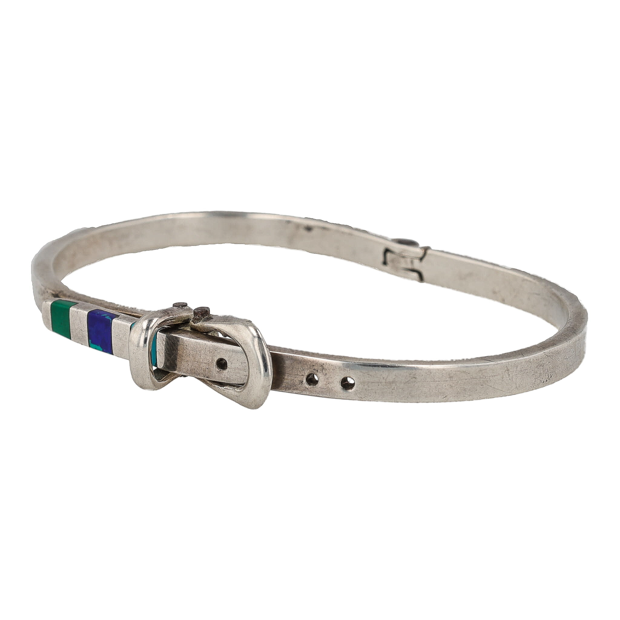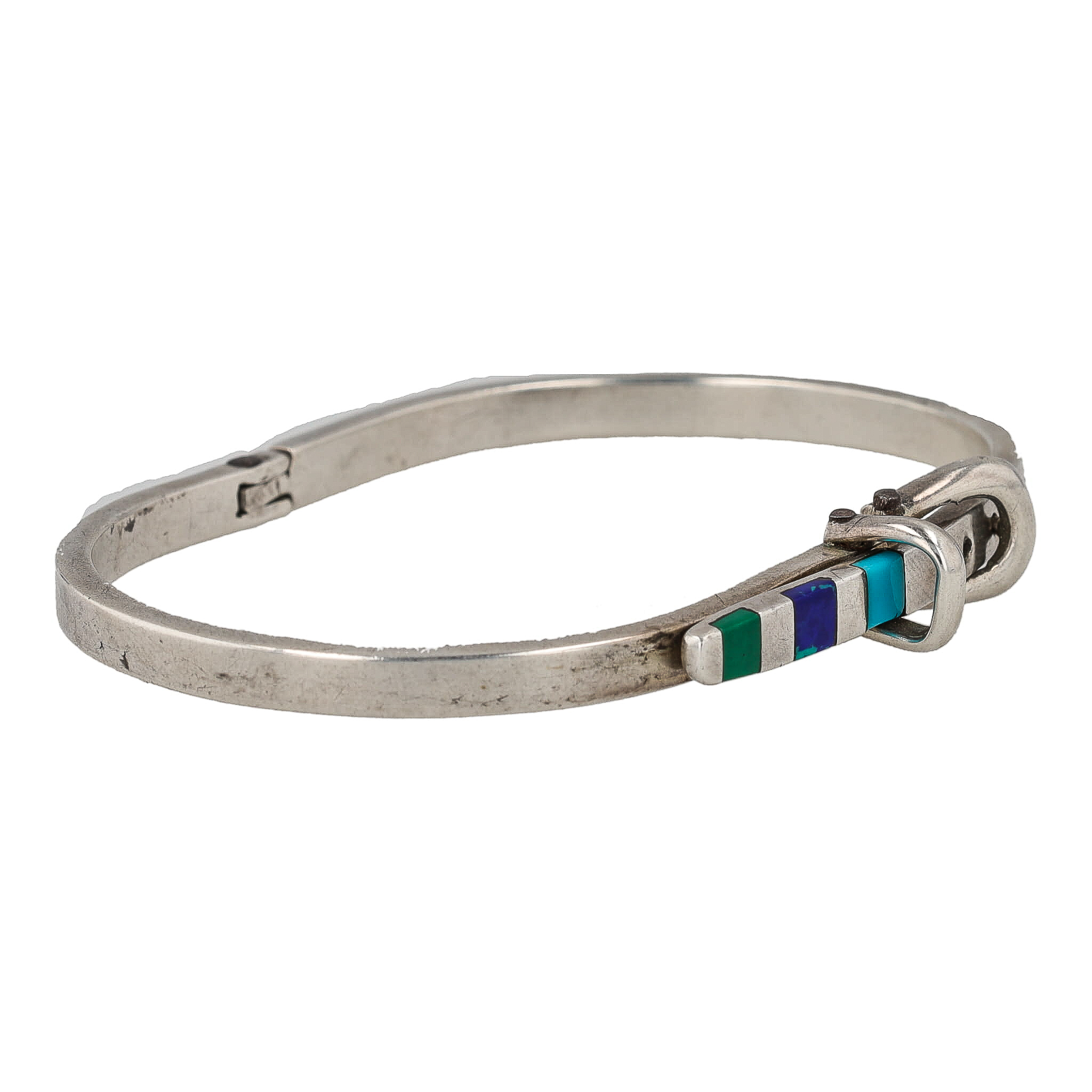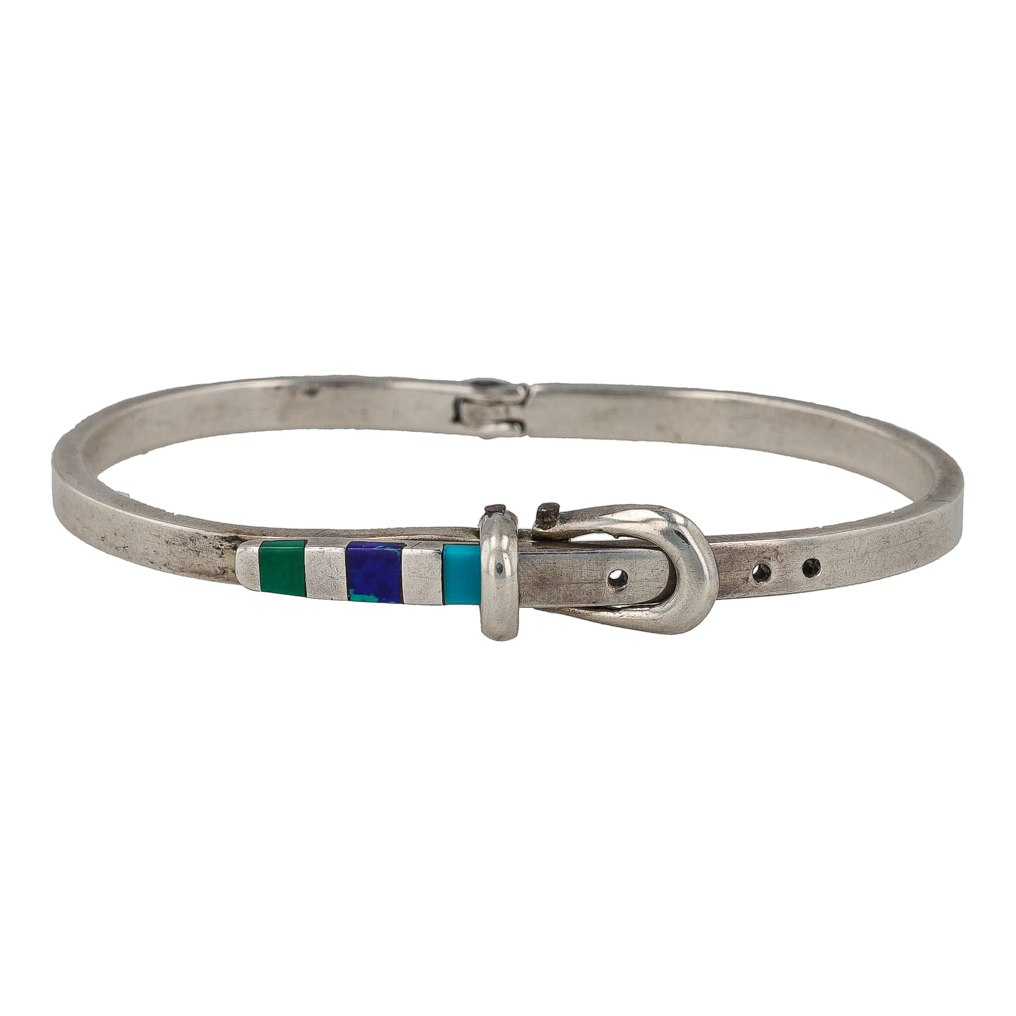 Vintage Mexico Multi Stone Sterling Hinge Bracelet 25g-Malachite, Turquoise, Azurite