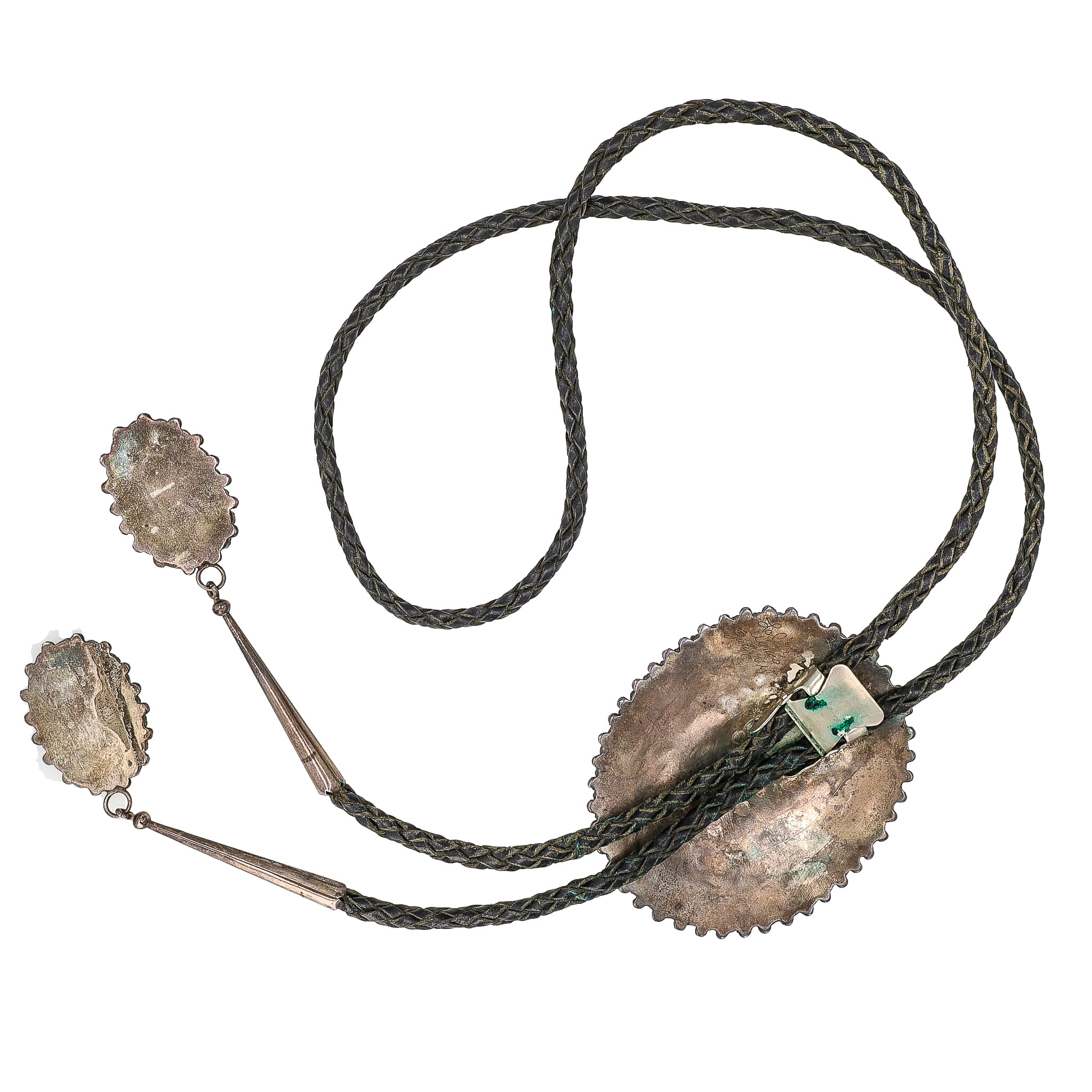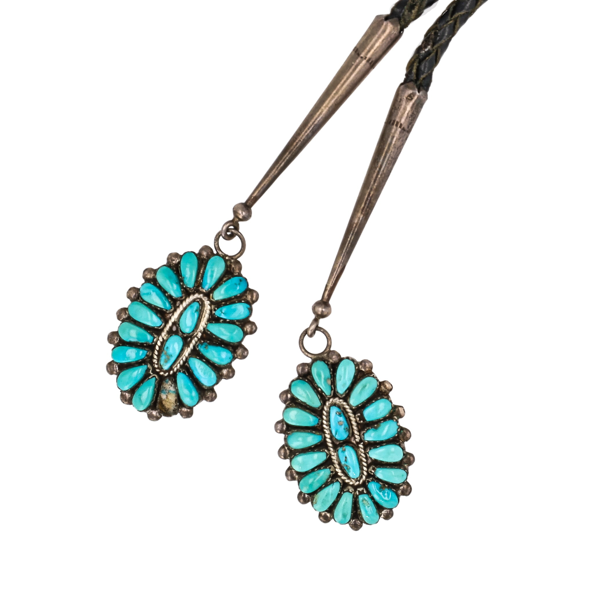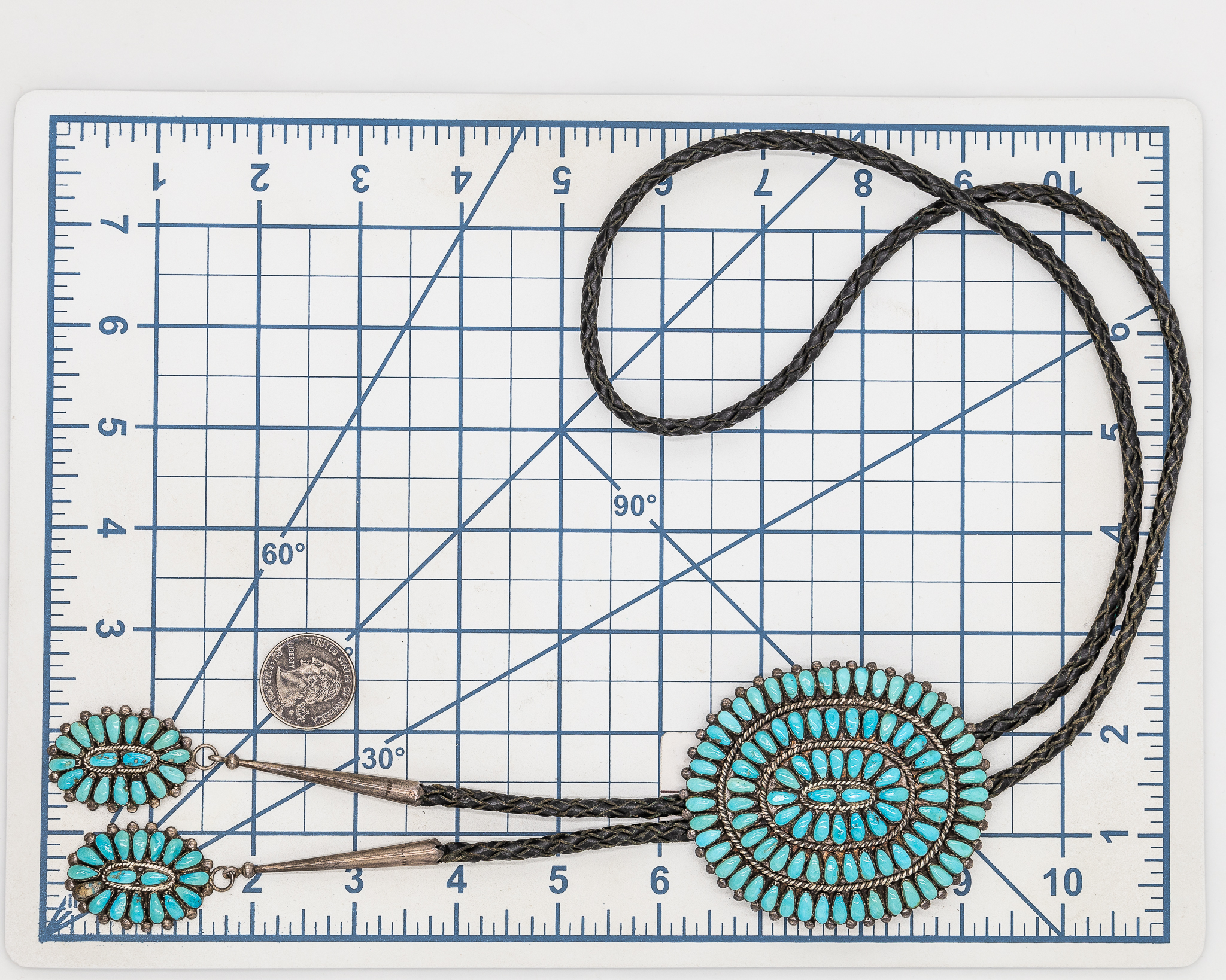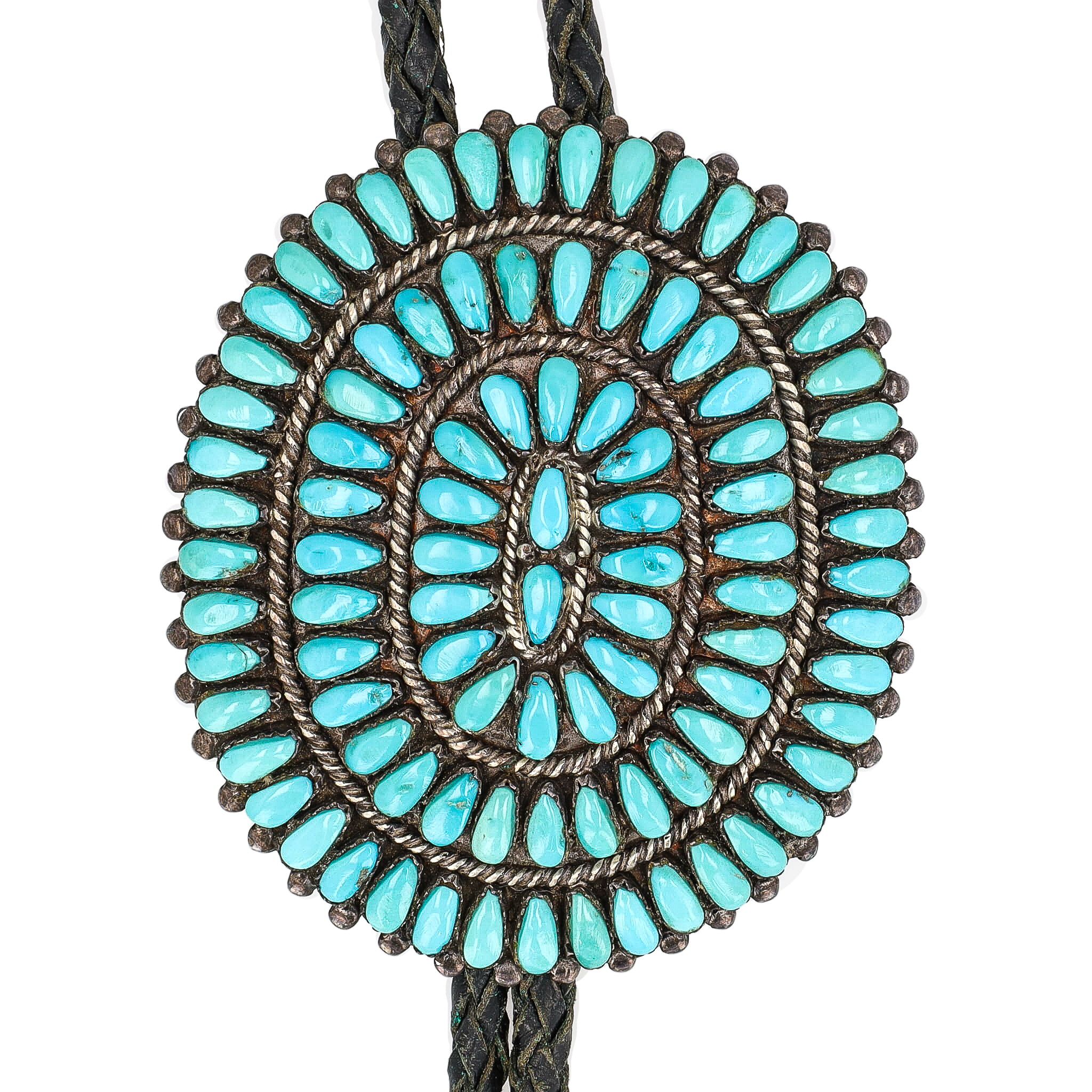 Lolita Wyaco Zuni Petit Point Huge Turquoise Sterling Bolo Tie With Turquoise Nibs As Is 85.5g-Broken Stone In Nib