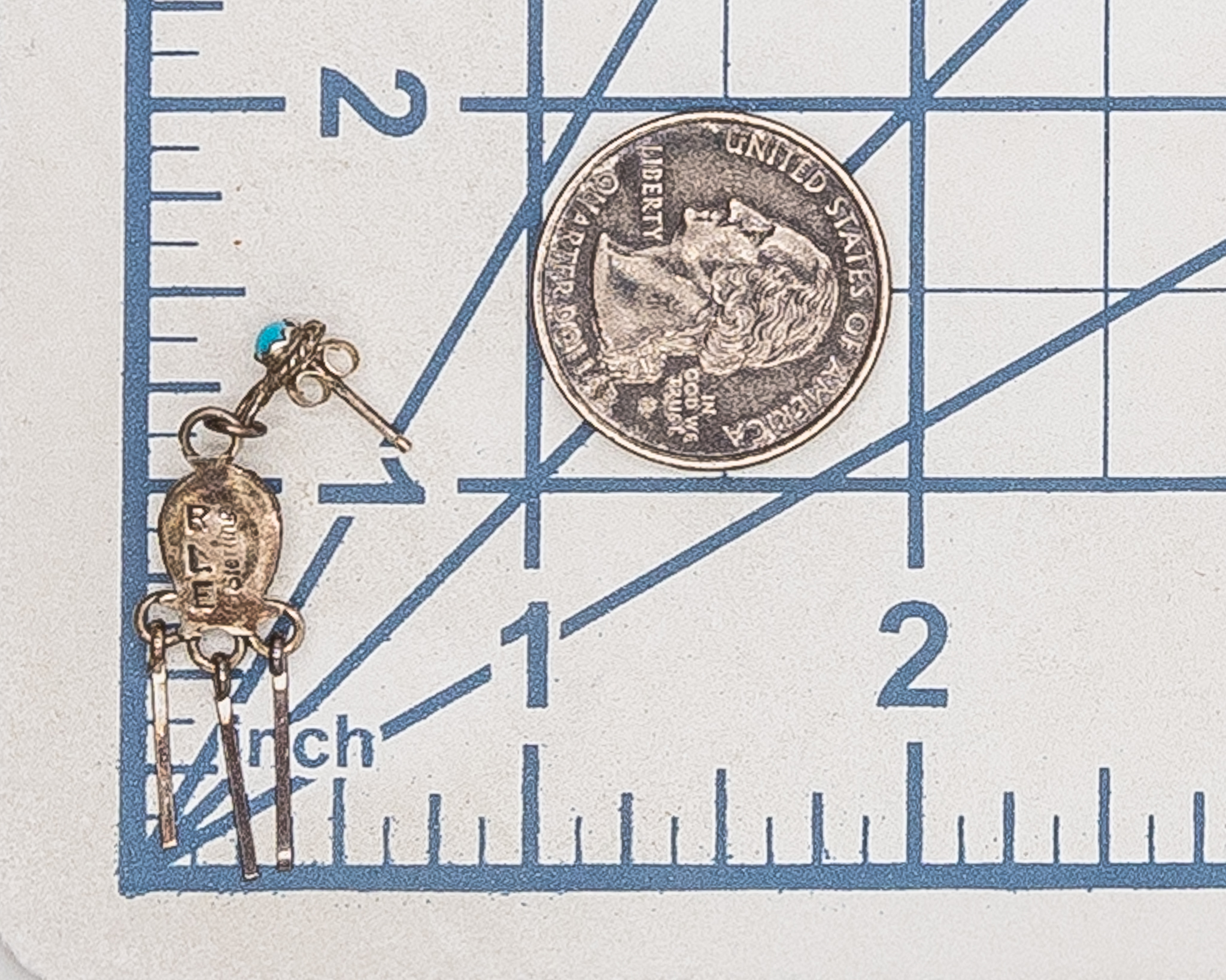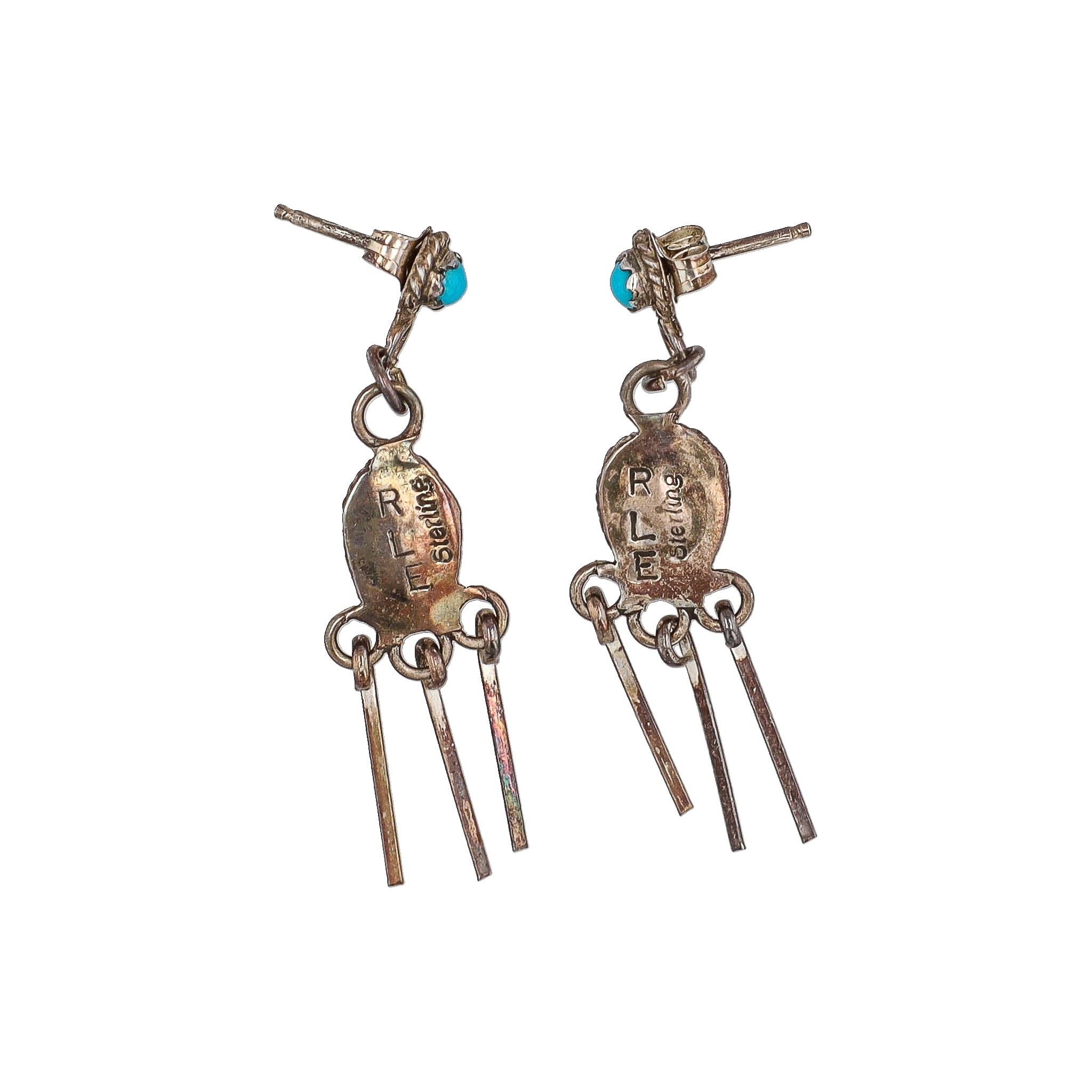 Signed RLE Navajo Turquoise Sterling Fringe Drop Dangle Earrings 3.5g