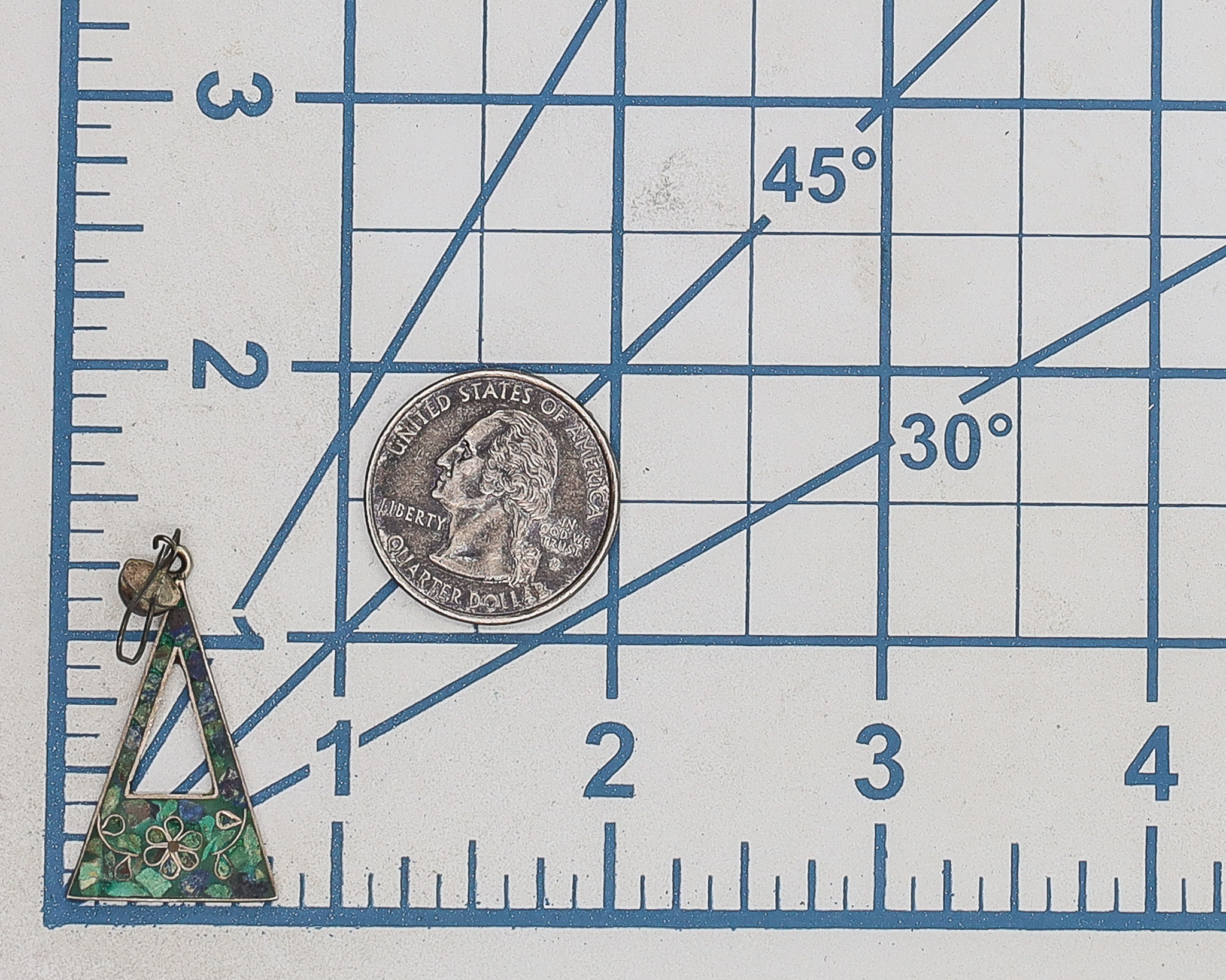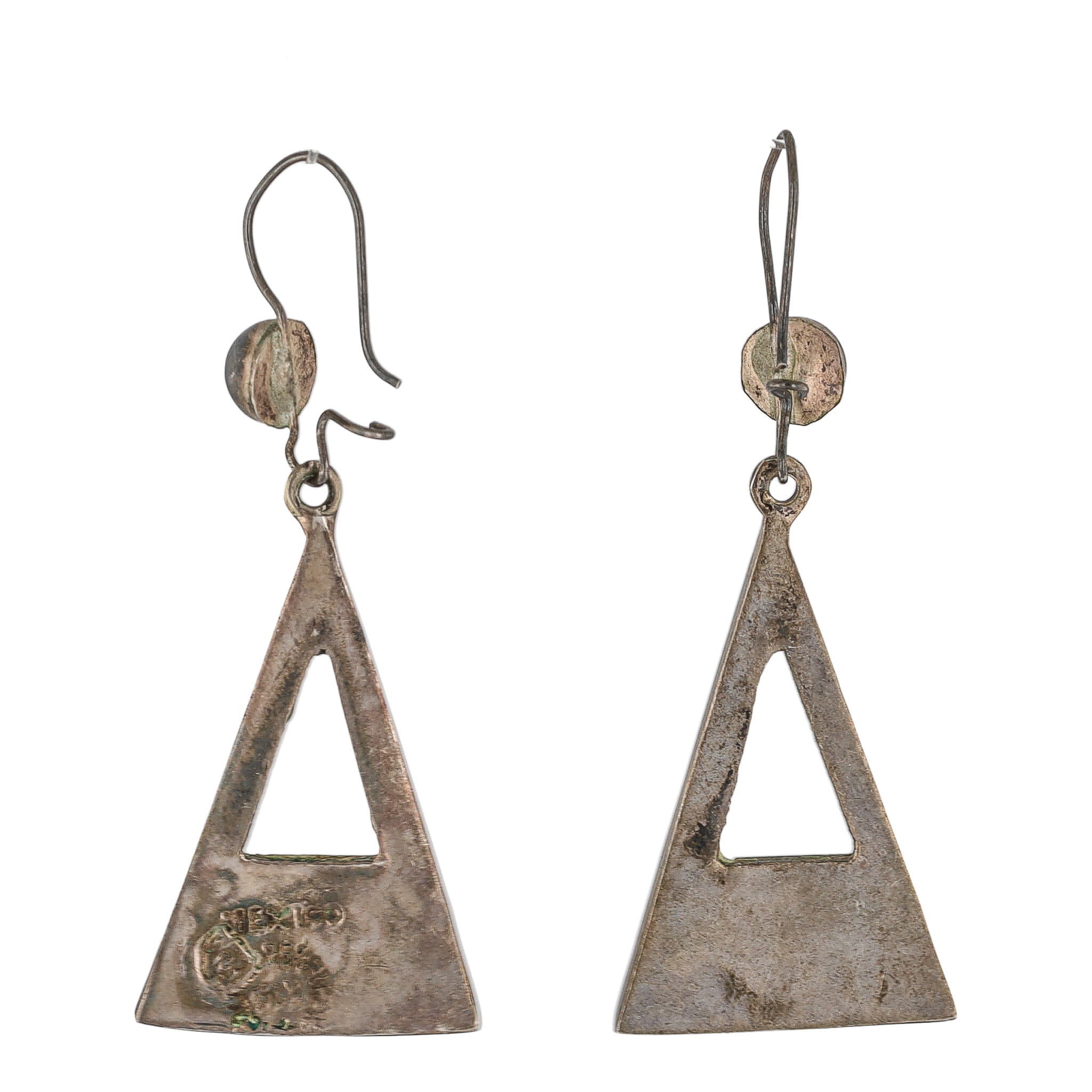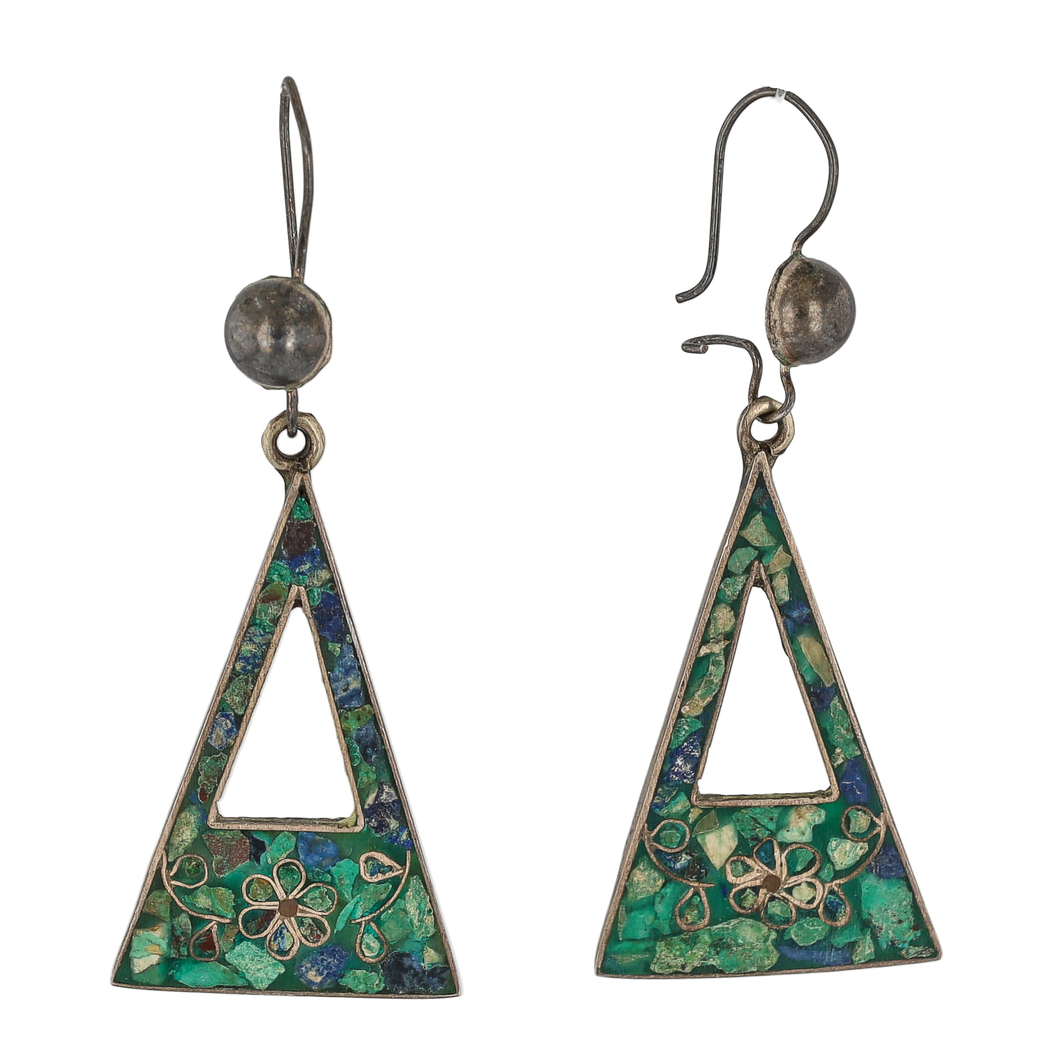 Signed Taxco Mexico Eagle 2 Crushed Turquoise Sterling Floral Inlay Earrings 4g-Illegible Signature