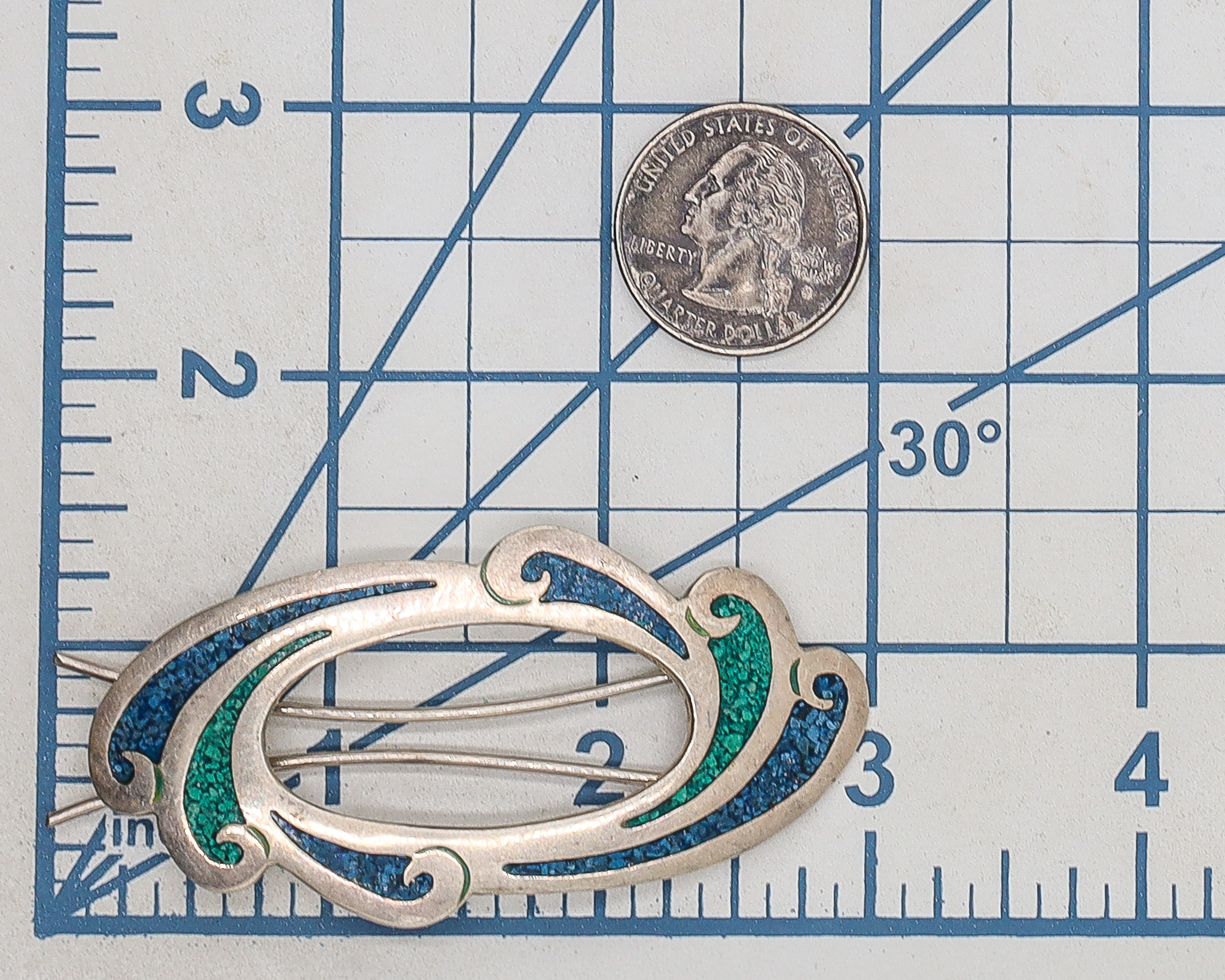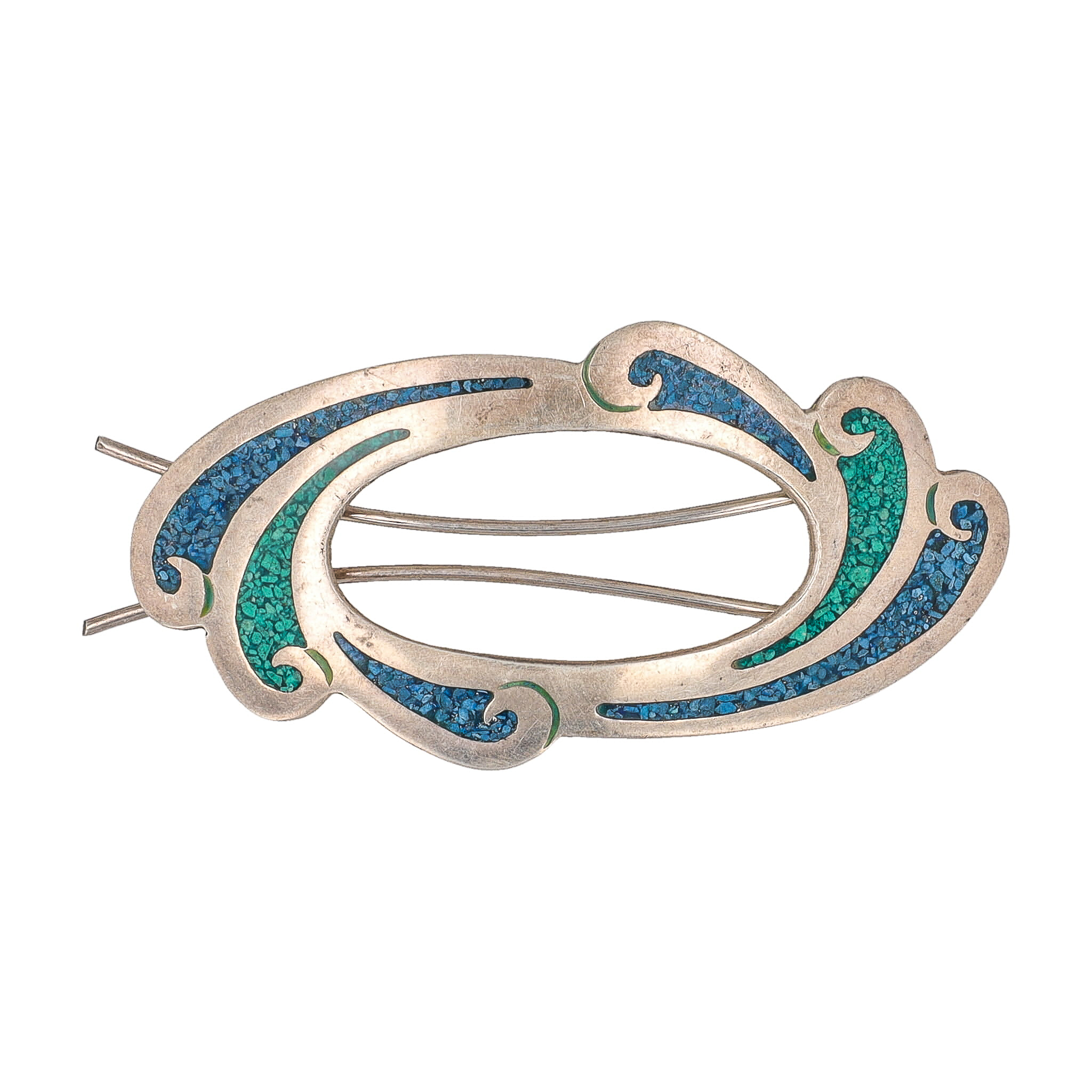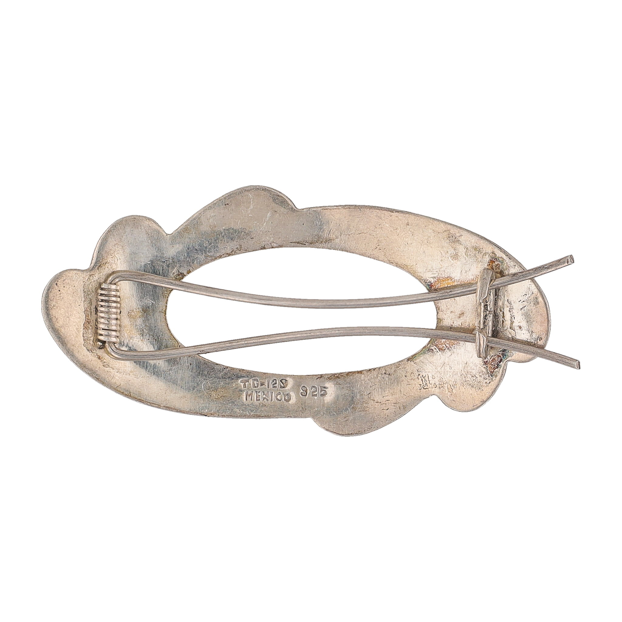 Signed TG-129 Taxco Mexico Crushed Turquoise Sterling Brooch 19g