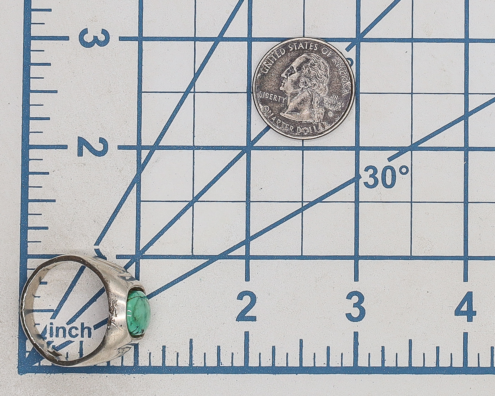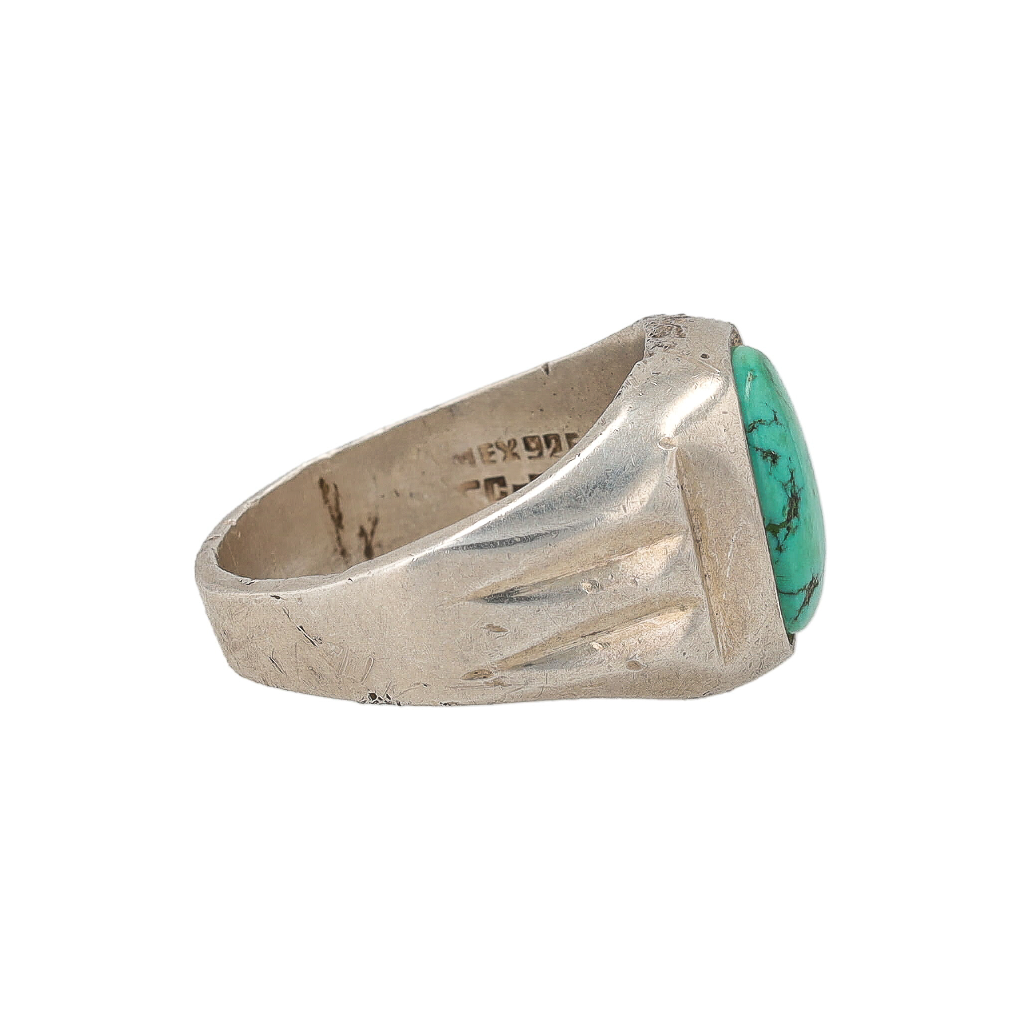Signed TC-315 Taxco Mexico Turquoise Sterling Ring Sz. 11.5, 19g