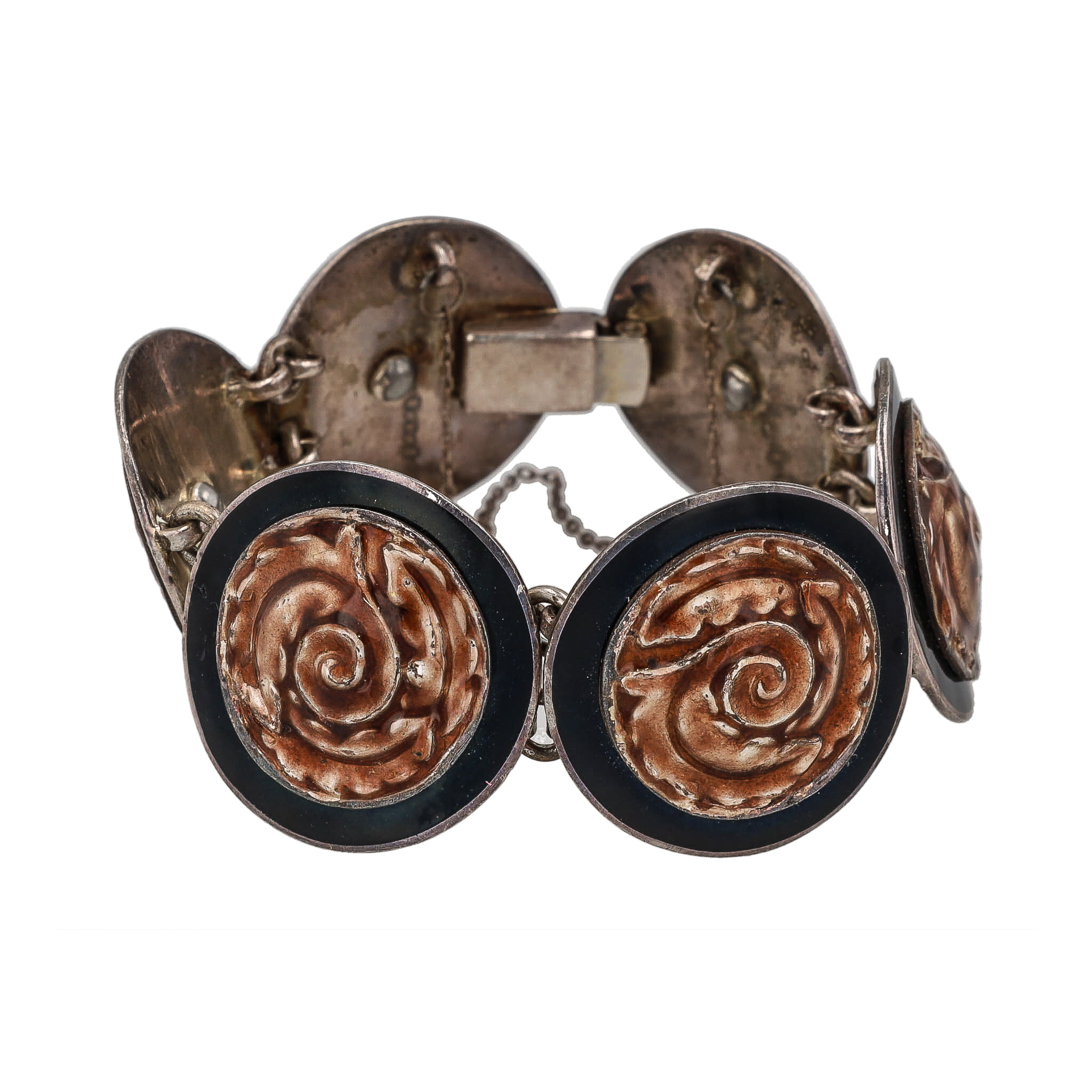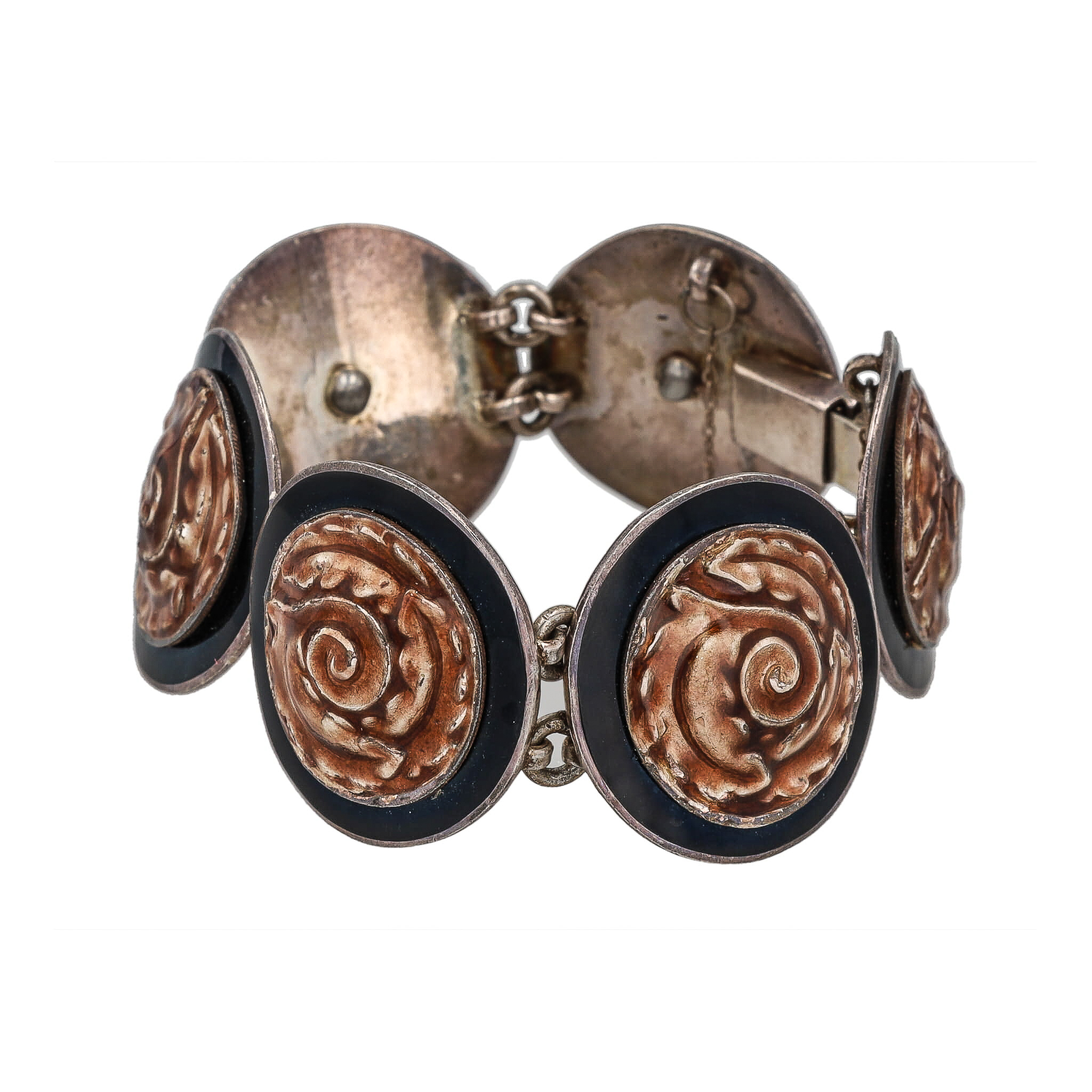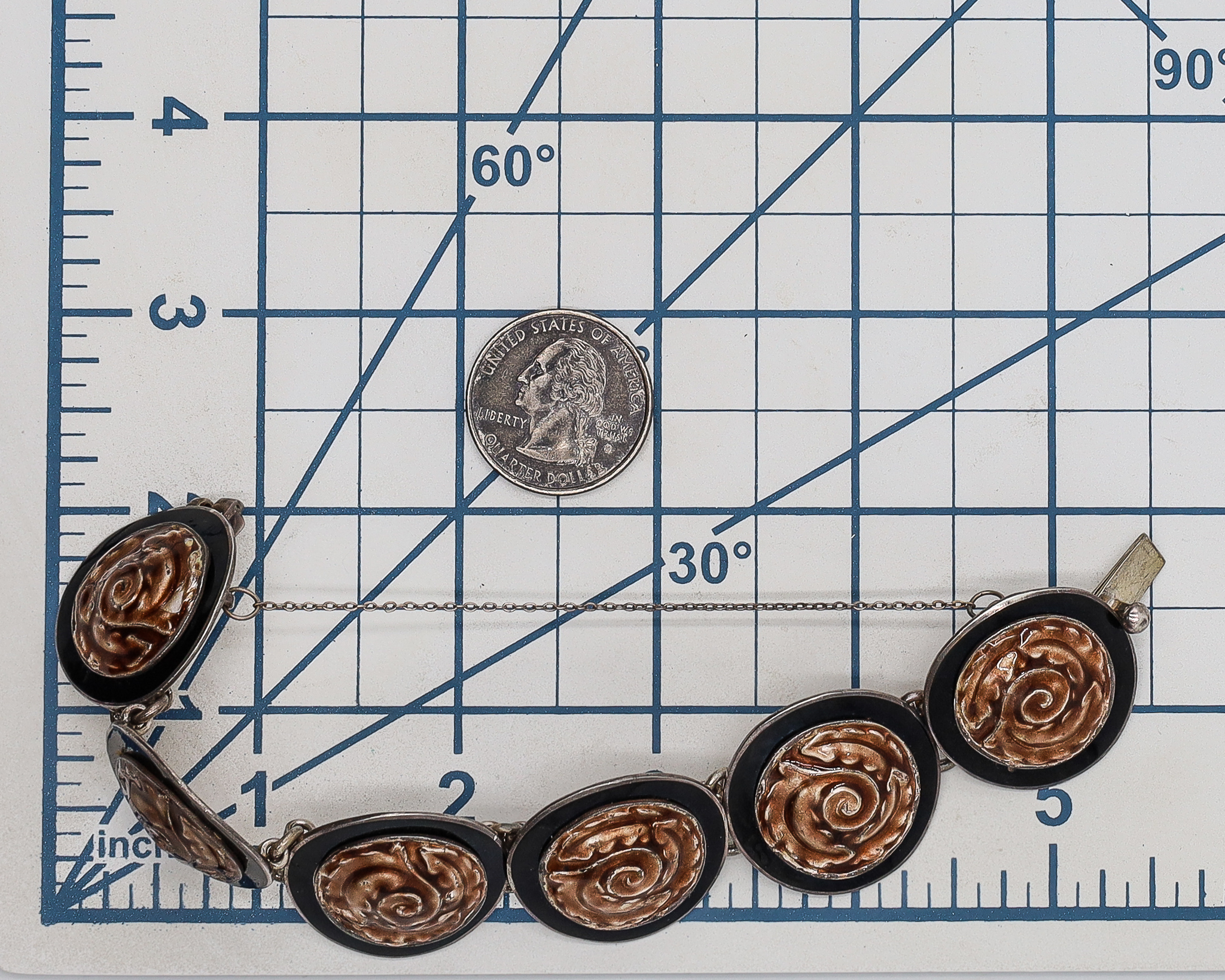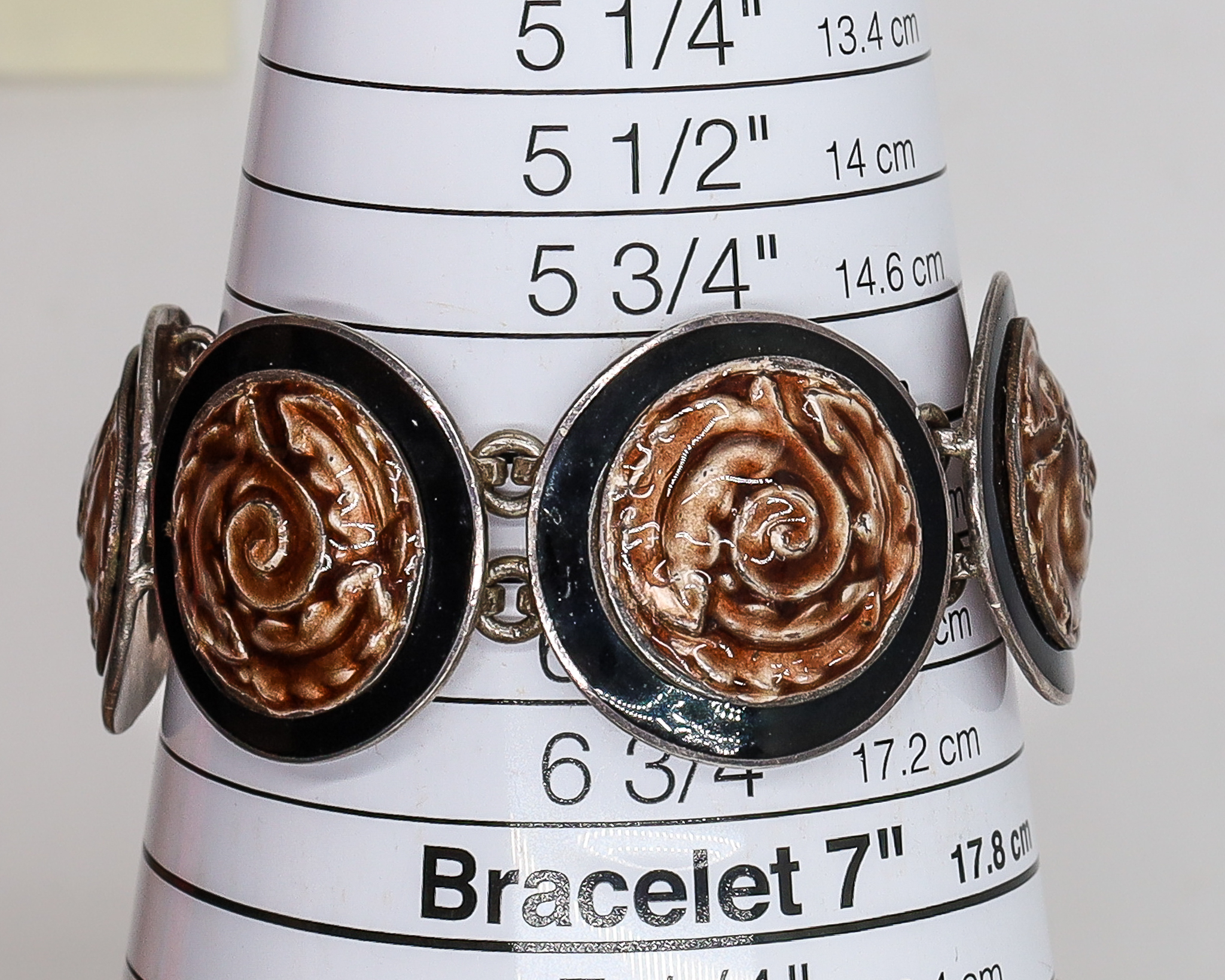 Margot De Taxco Mexico Eagle 16 Awesome Enamel Sterling Roman Revival Shield Bracelet 68g