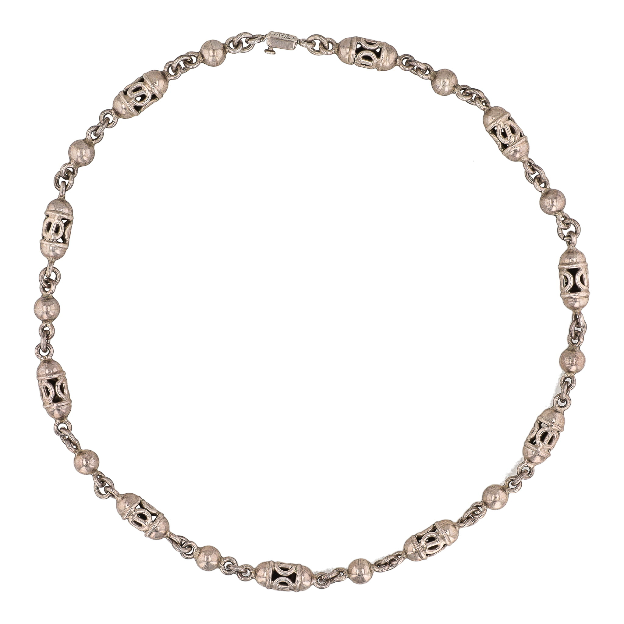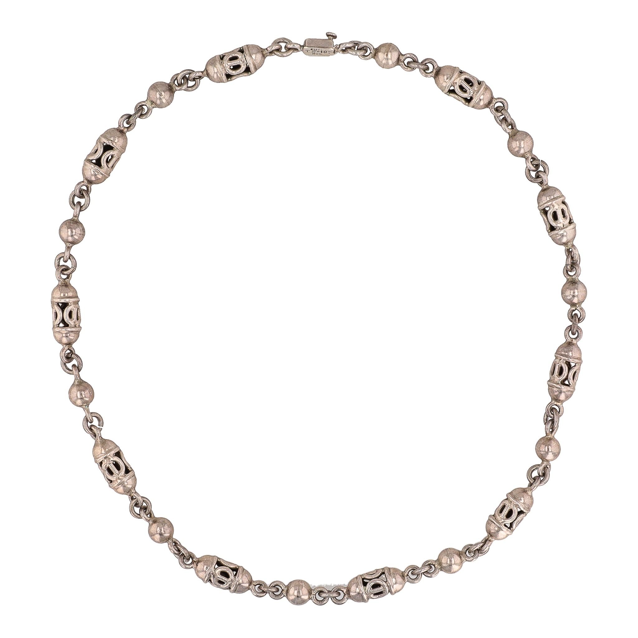 Signed TS-102 Taxco Mexico Sterling Orb Barrel Necklace 76g