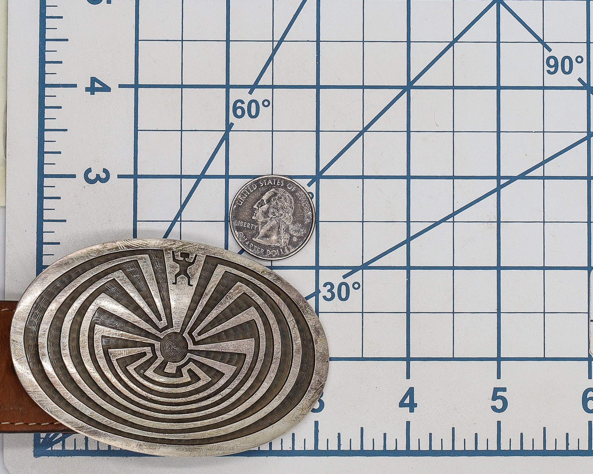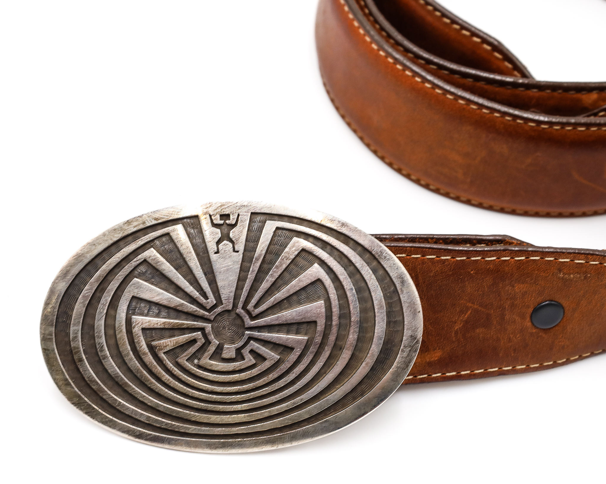 Clarence Lomayestewa Hopi Sterling Man In The Maze Belt Buckle 52.5g.