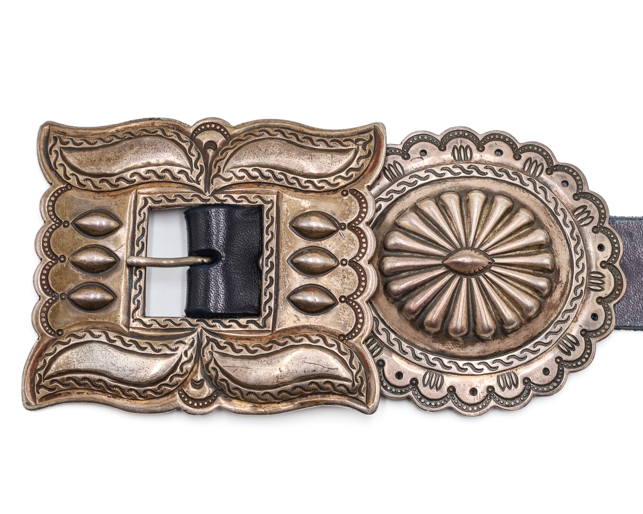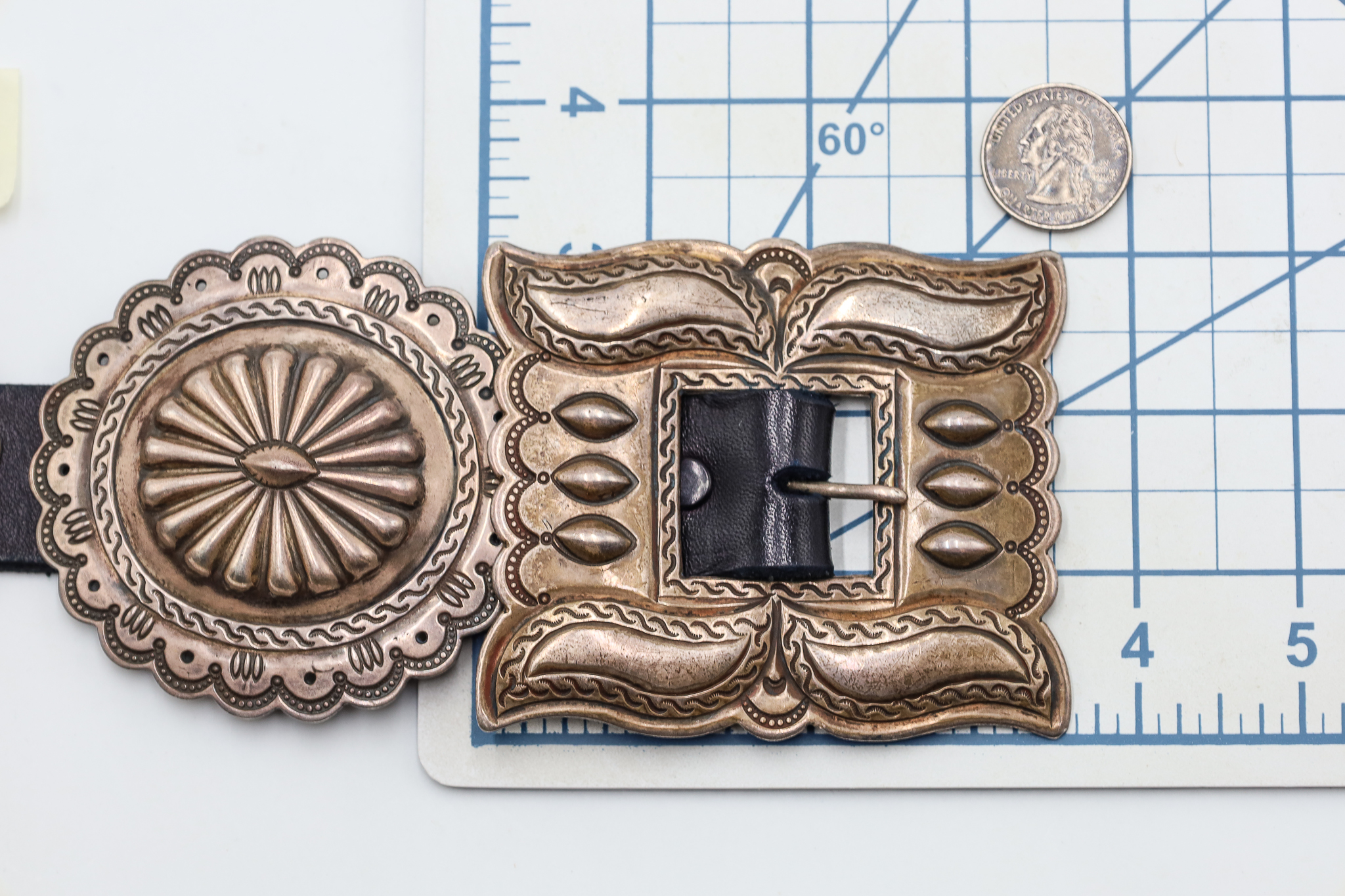 Vintage Navajo CA Pg 1925 9 Piece Concho Belt Buckle Approximately 504g