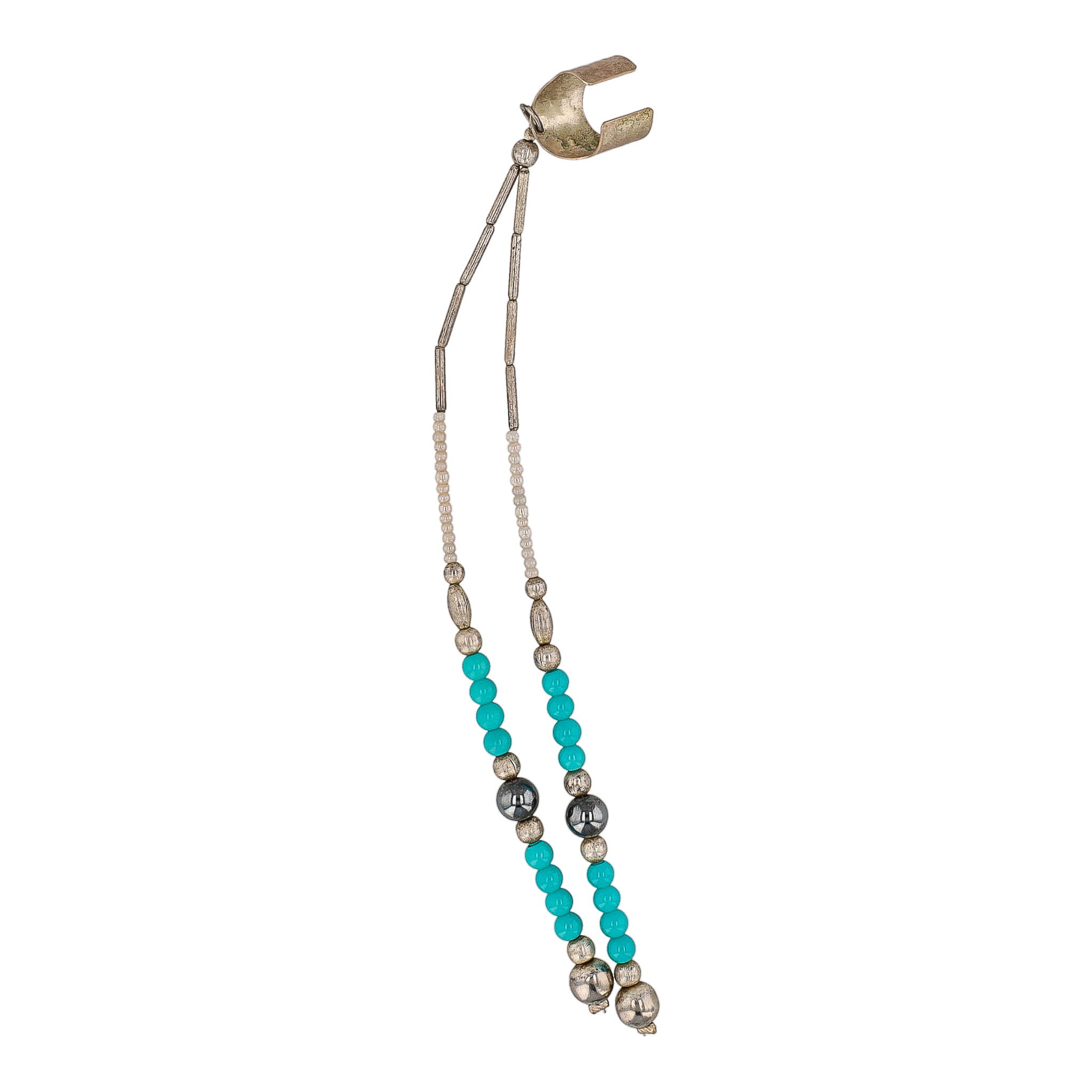 Vintage Navajo Hematite Turquoise Sterling Beaded Dangle Ear Cuff 8g