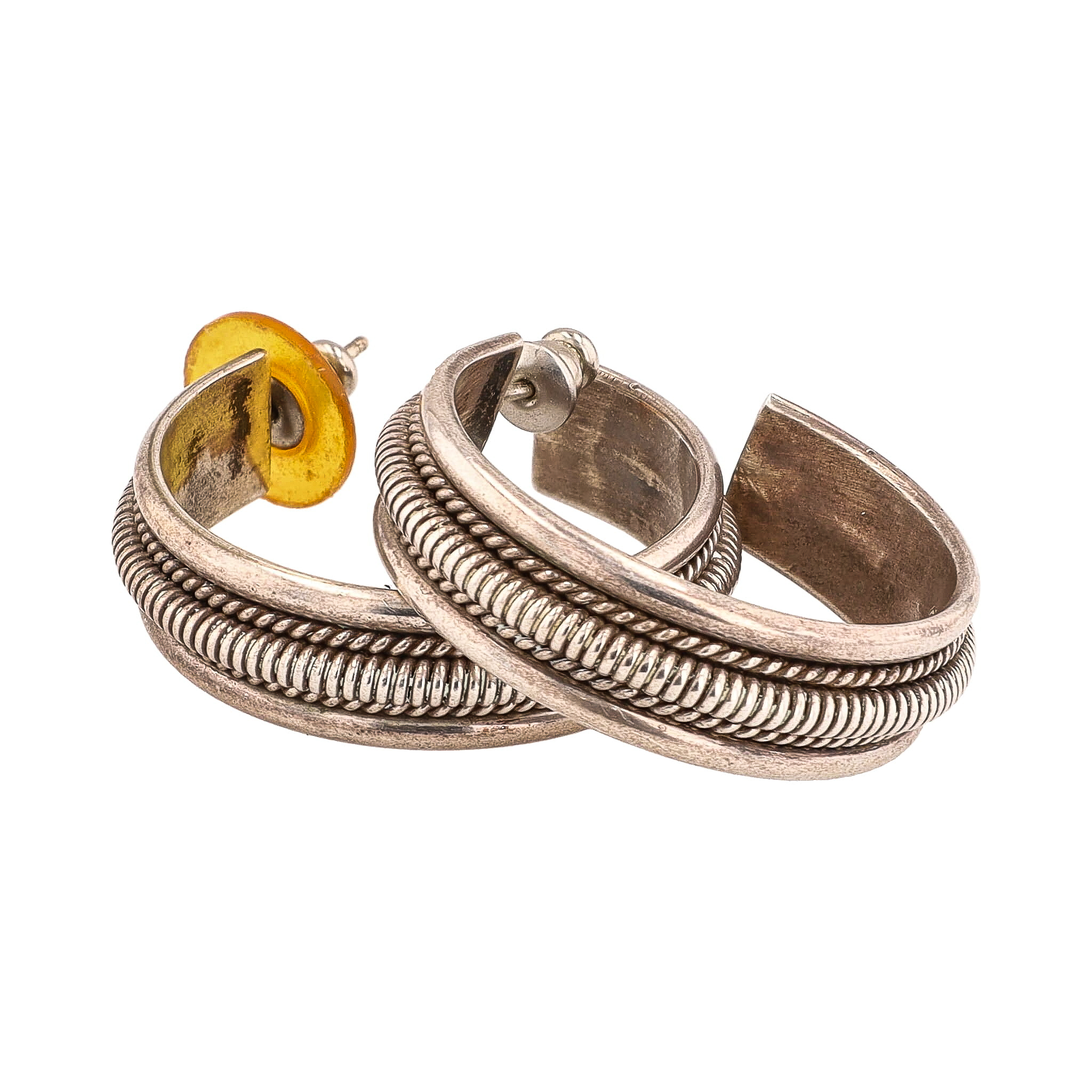 Tahe Navajo Sterling Cord Hoop Earrings 21g