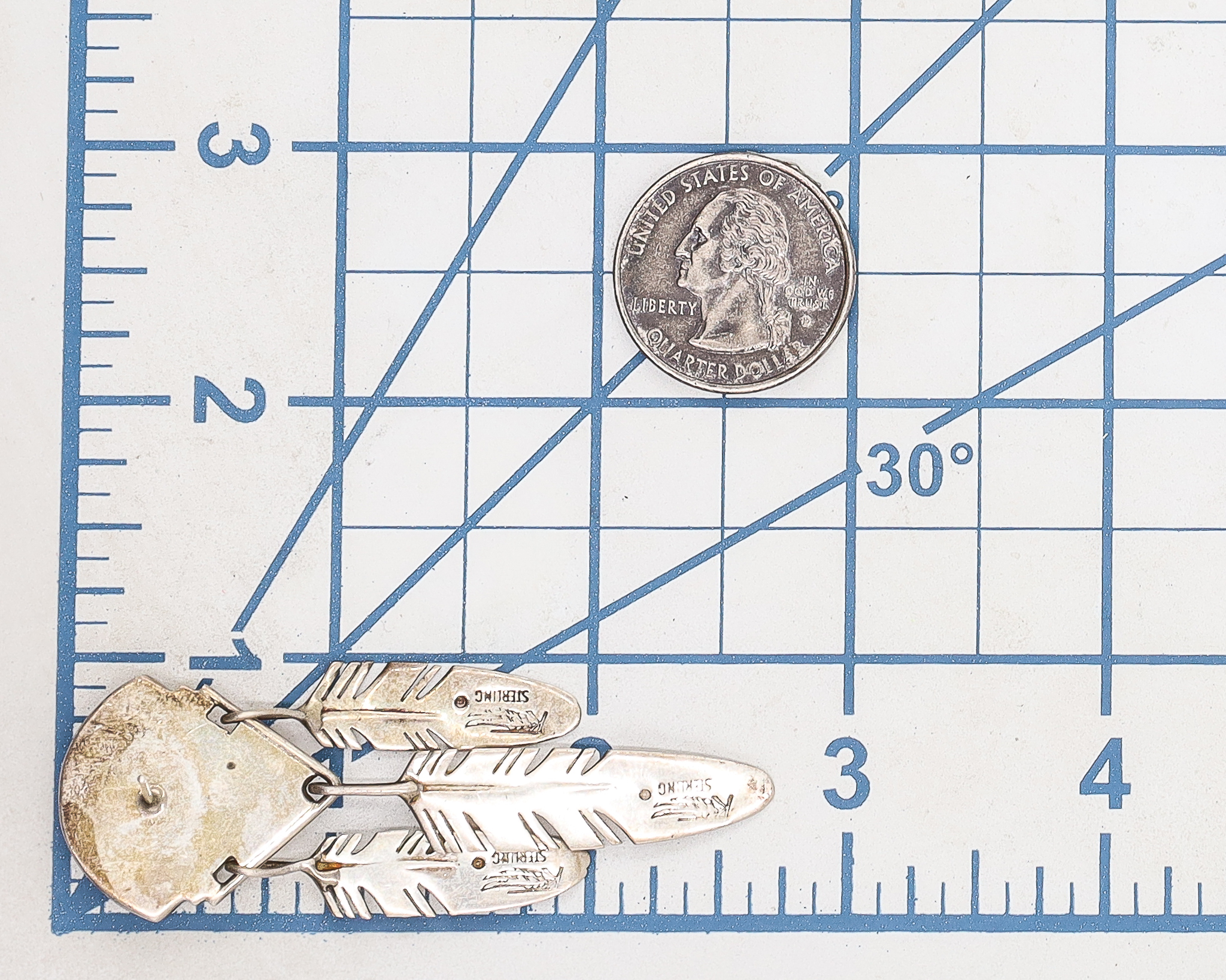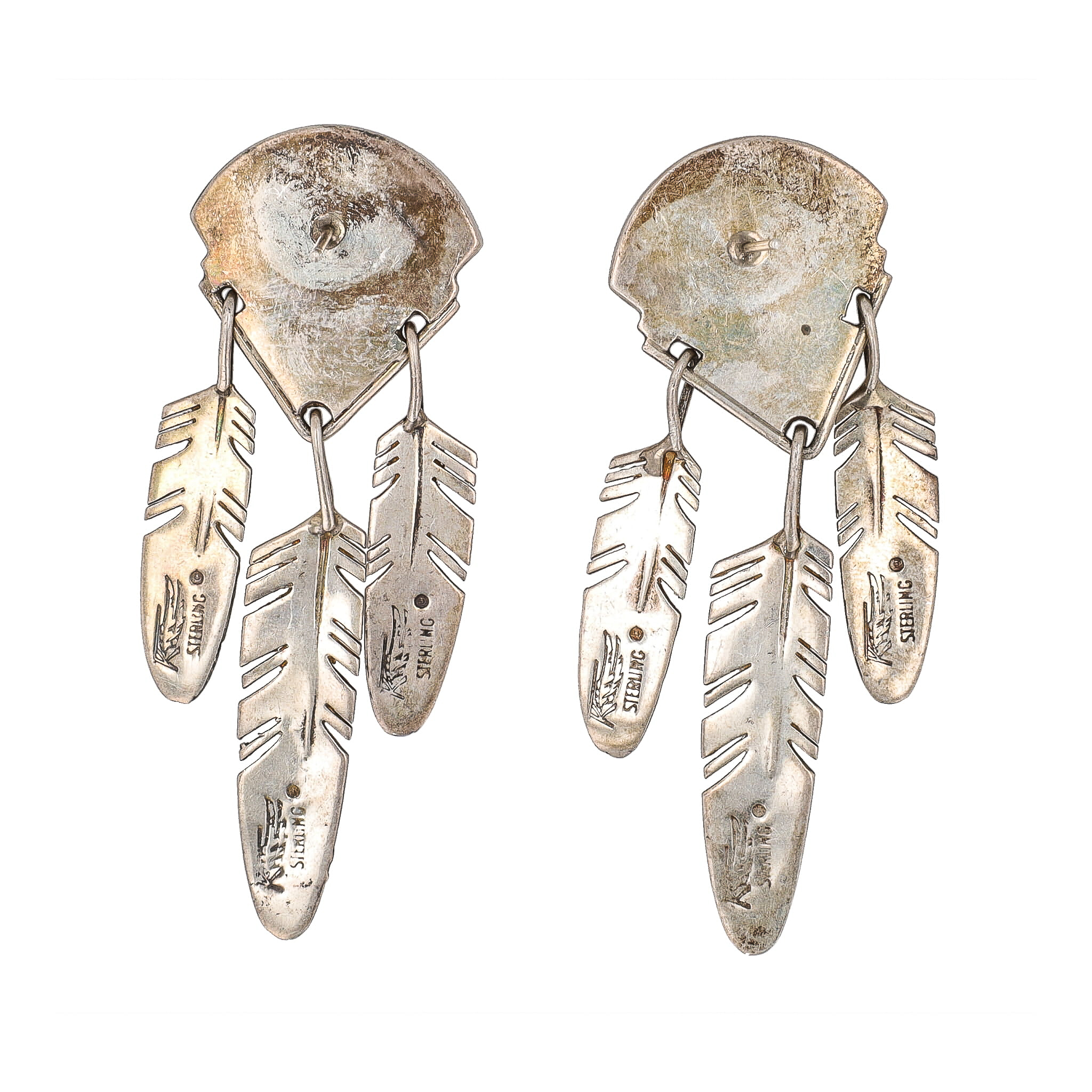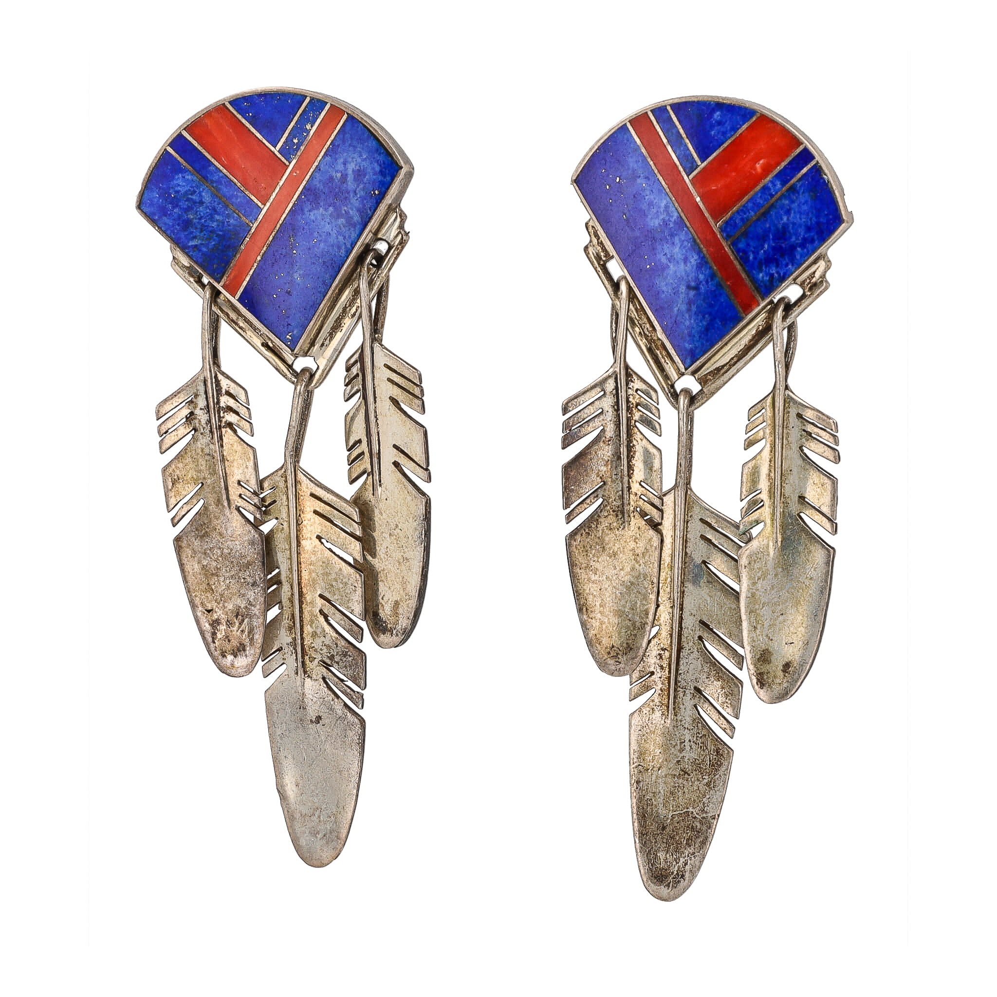 Roy Tracey Knifewing Navajo Coral Sodalite Sterling Inlay Feather Dangle Earrings 25g