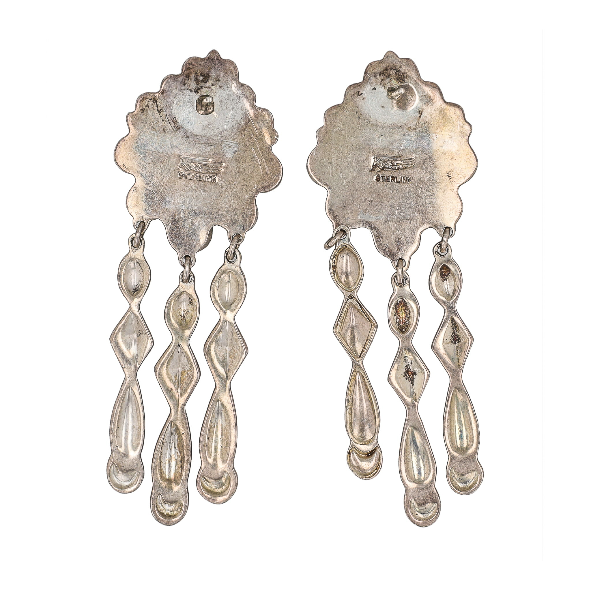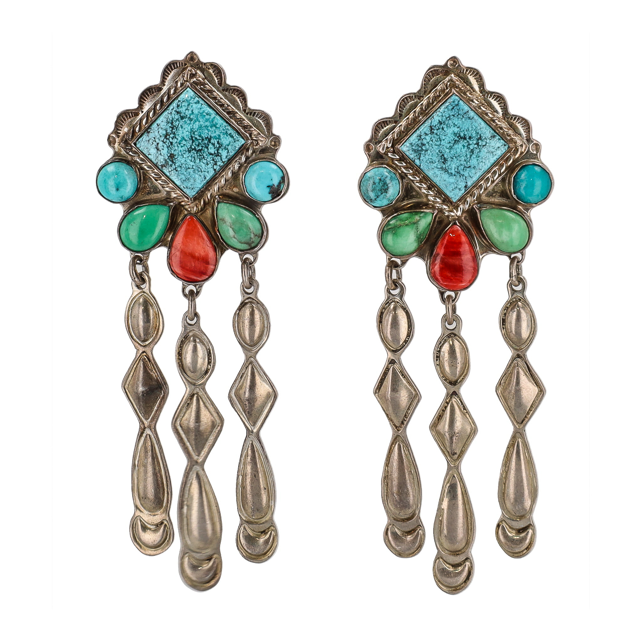 Roy Tracey Knifewing Navajo Turquoise Spiny Oyster Sterling Chandelier Earrings 25.5g