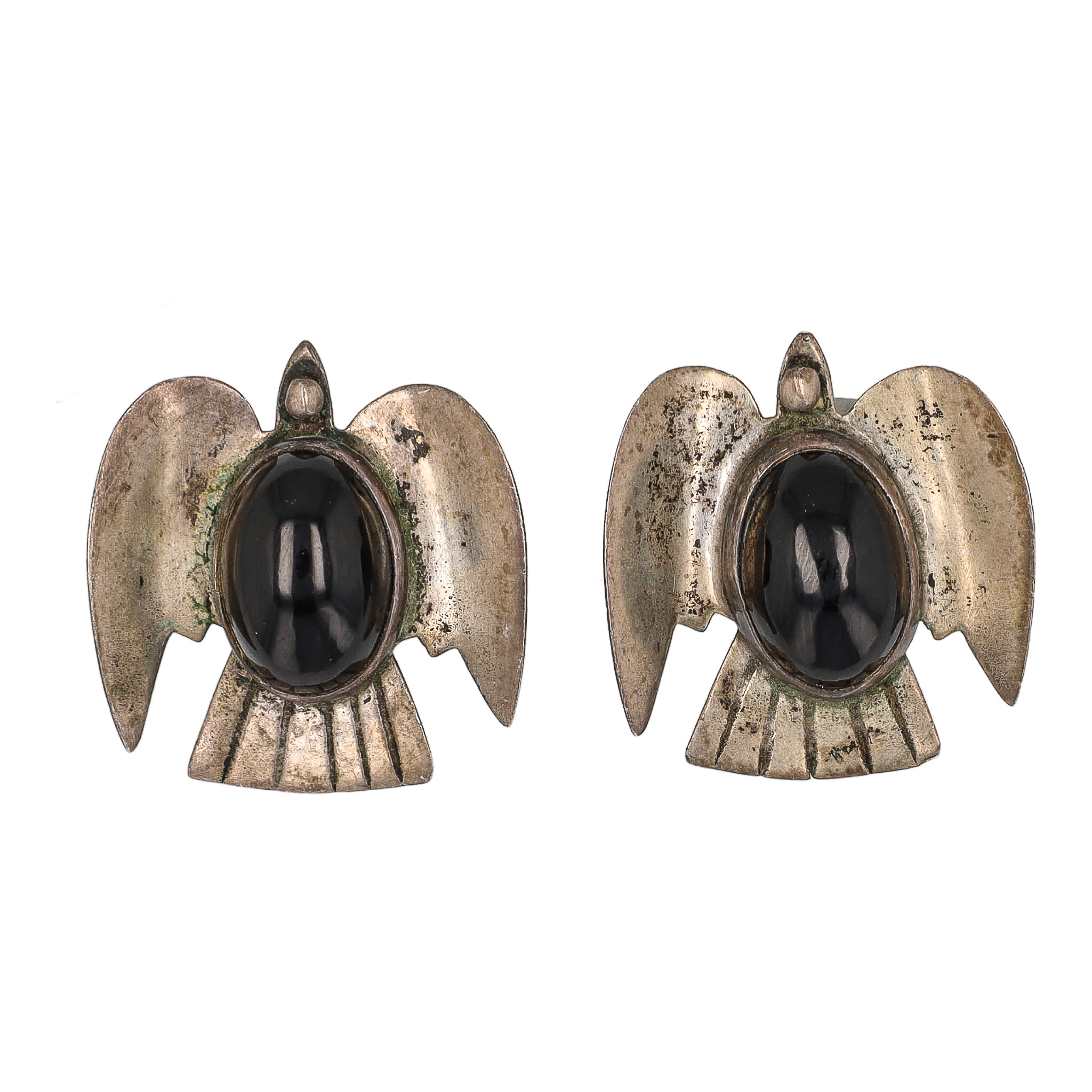Vintage Mexico Onyx Sterling Bird Earrings 7g