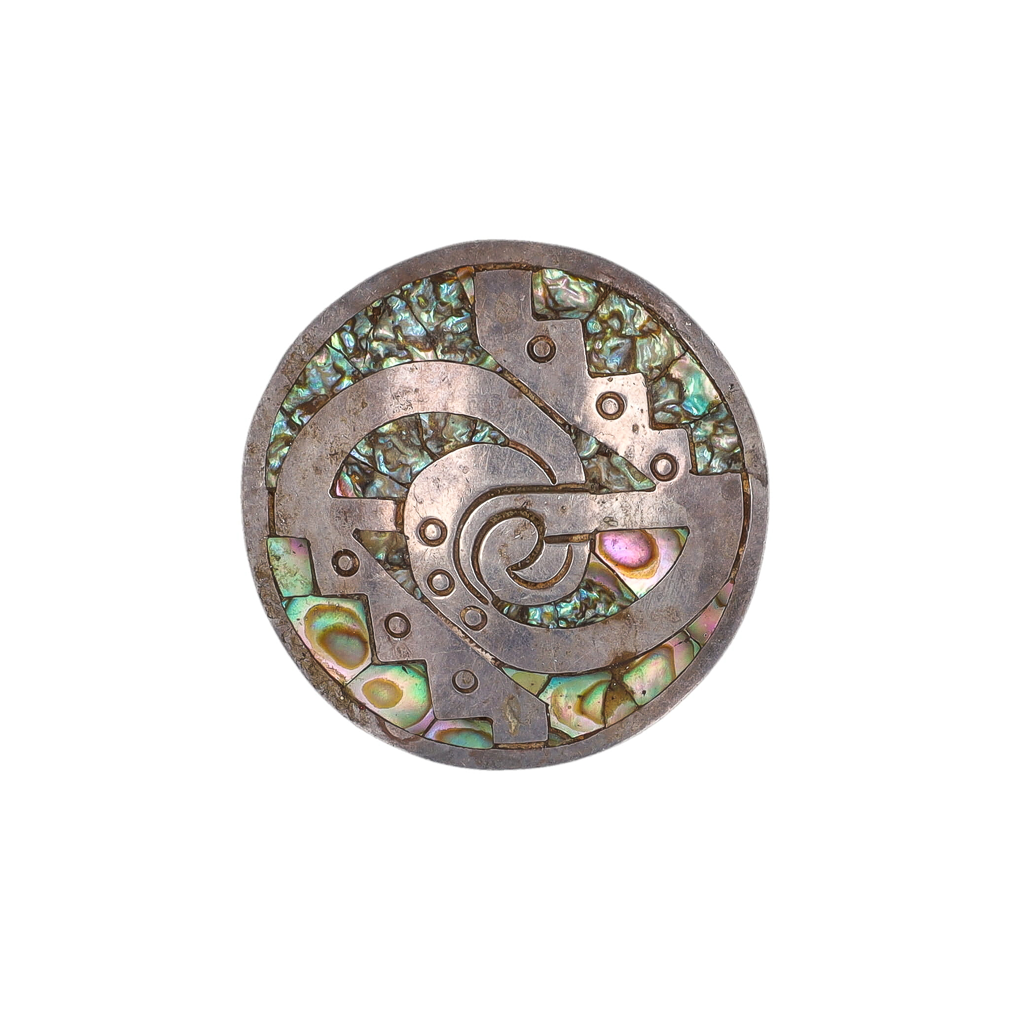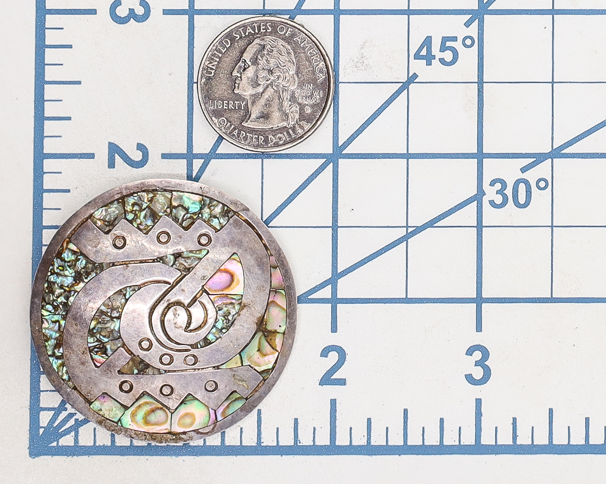 Vintage Mexico RJR Crushed Abalone Sterling Brooch Pendant 19g