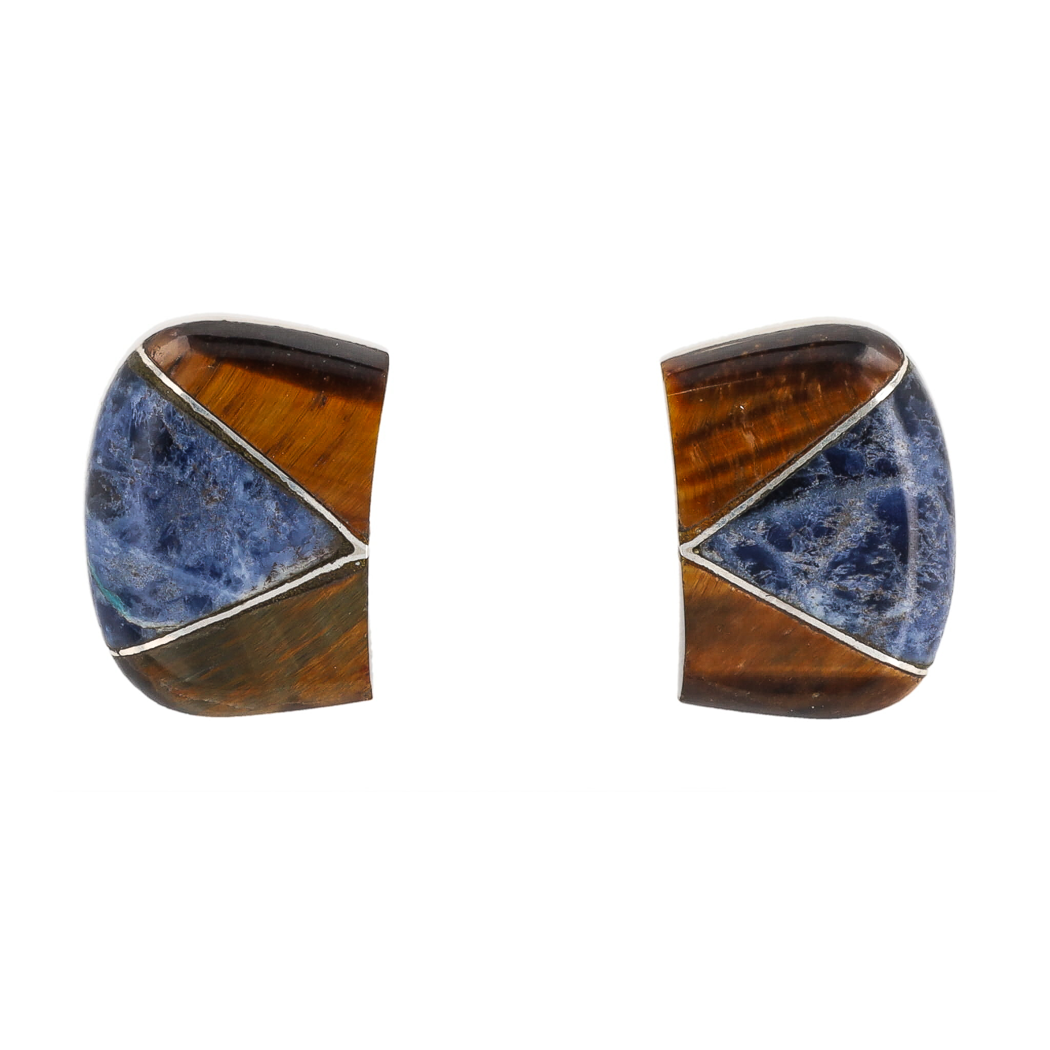 Signed TS-105 Mexico Taxco Sodalite Tigers Eye Sterling Inlay Earrings 9g