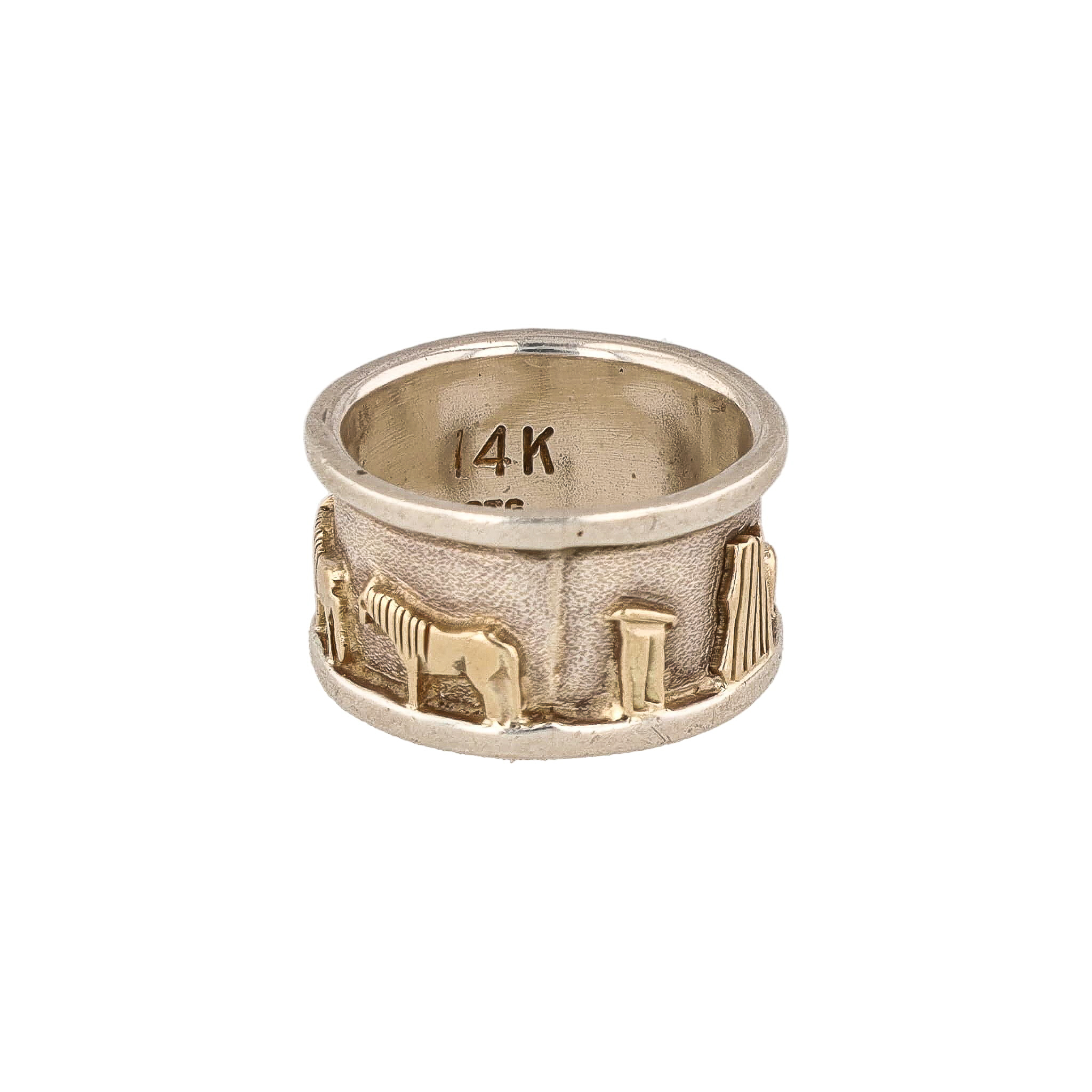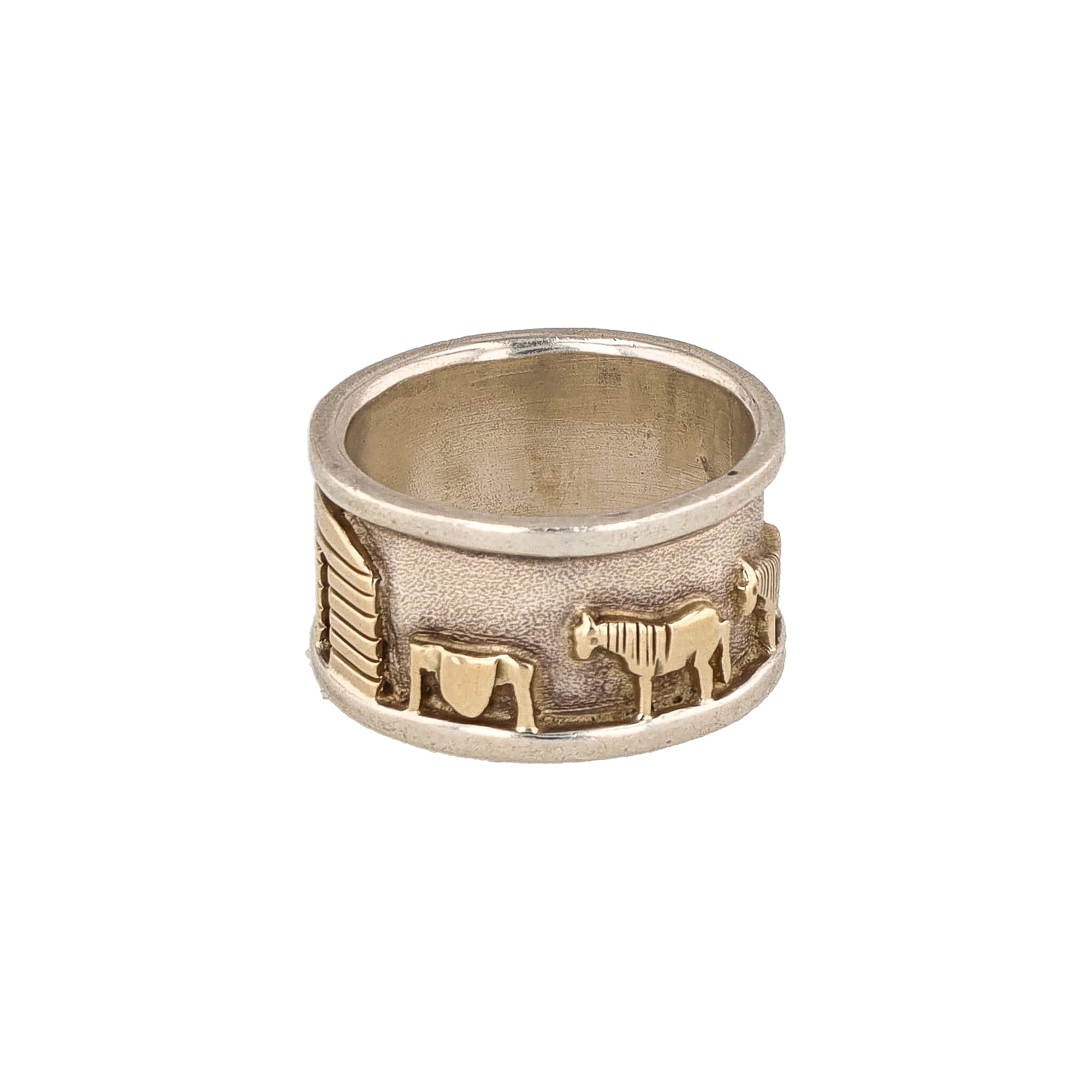 Native American 14K Gold Sterling Southwestern Ranch Storyteller Ring Sz. 3, 5g