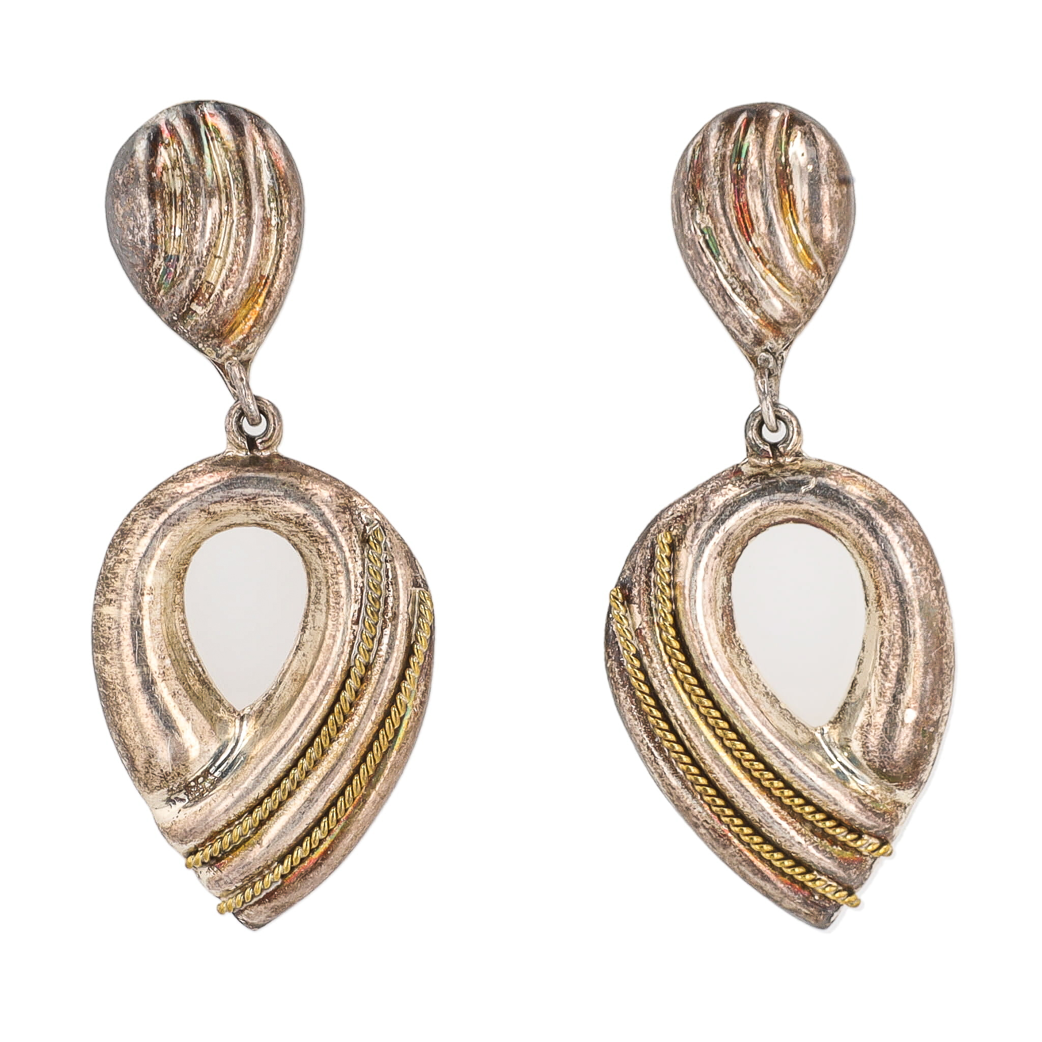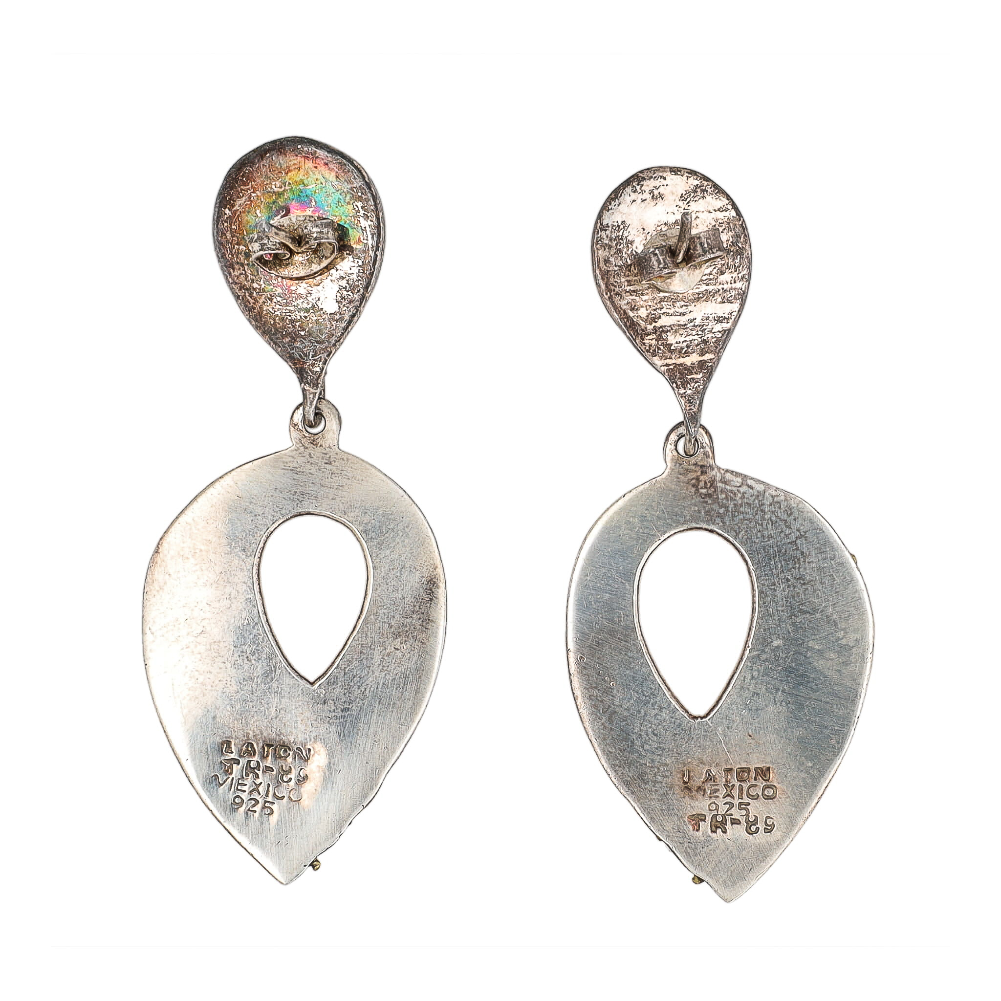Laton TR-89 Taxco Mexico Sterling Two Tone Dangle Earrings 16.5g