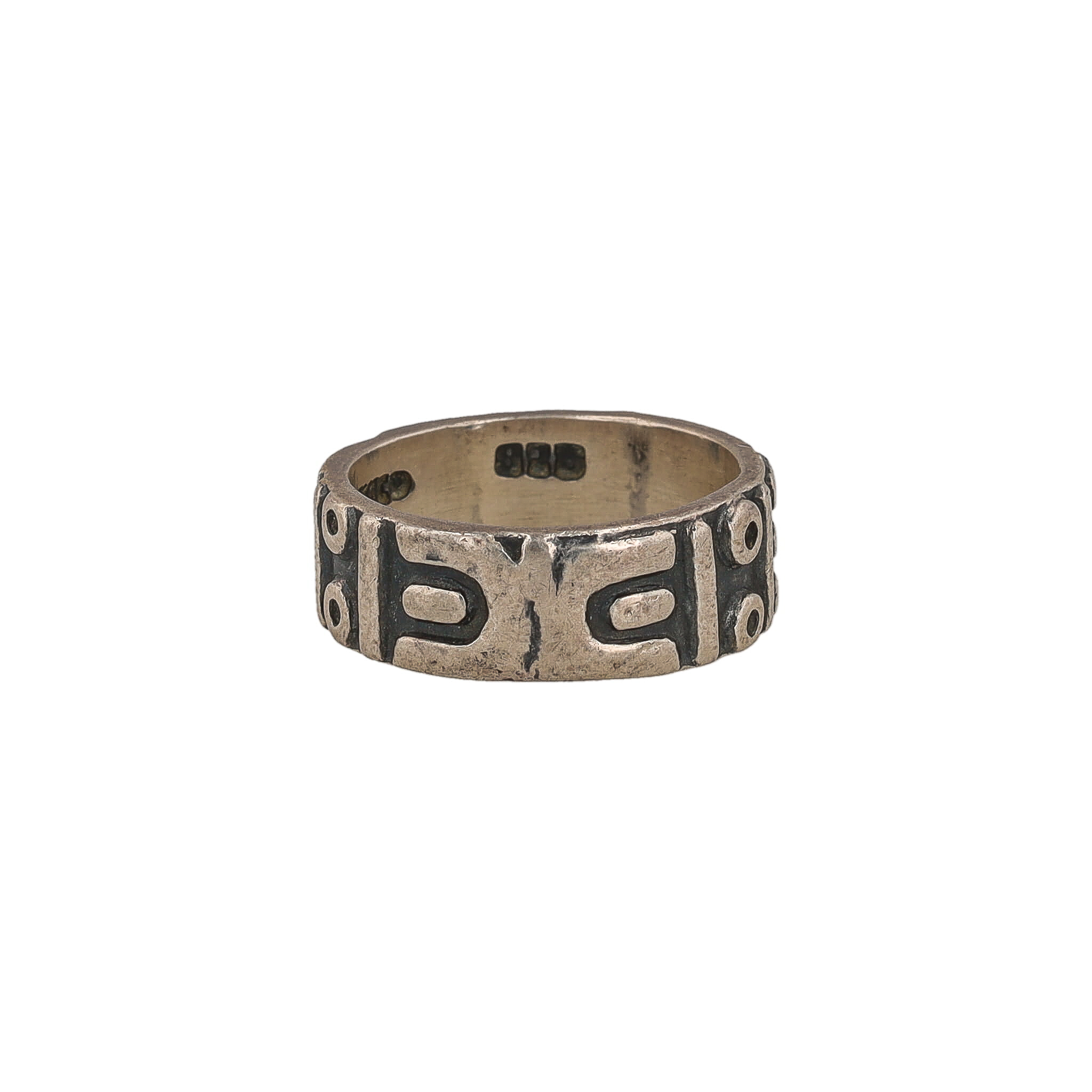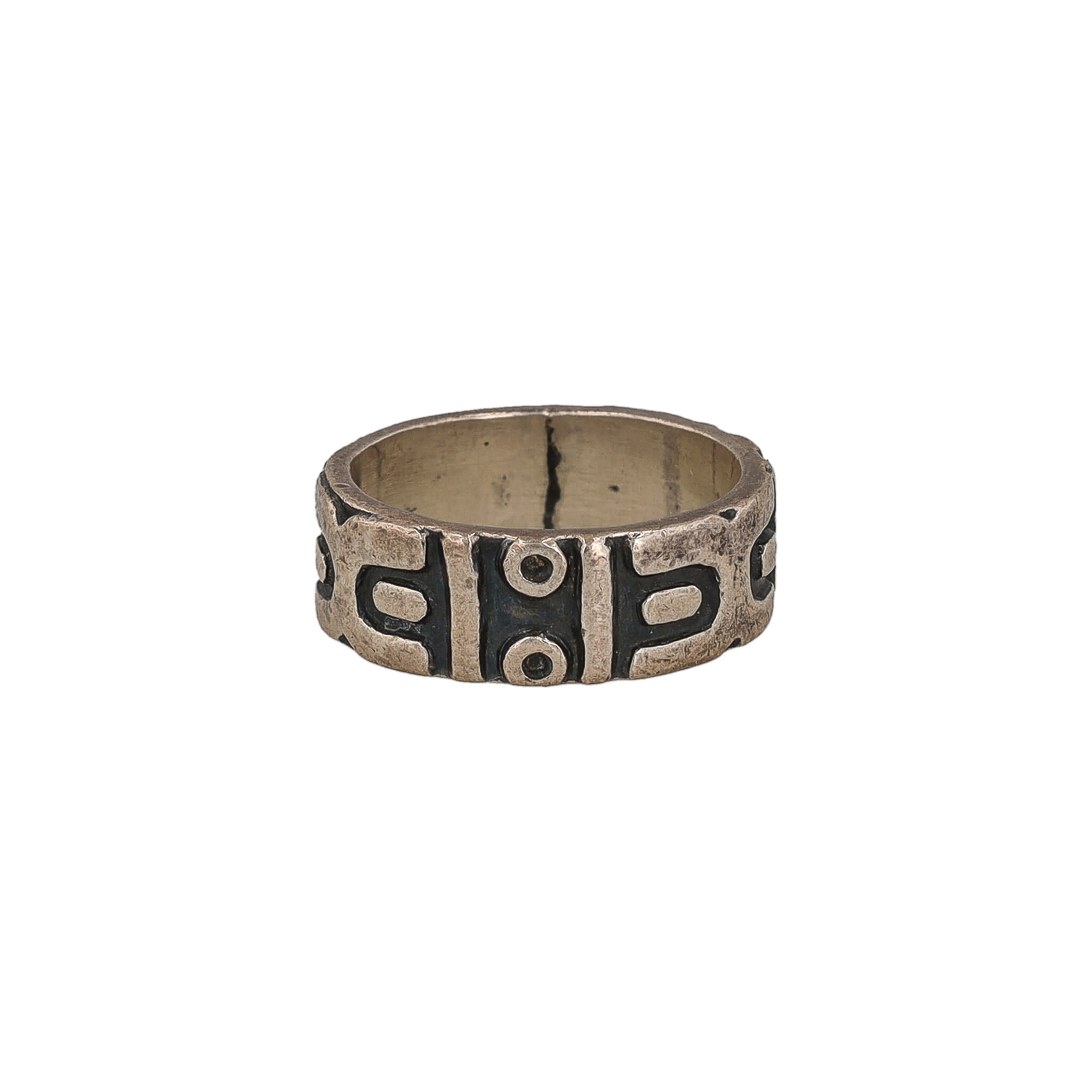 Vintage Mexico Sterling Aztec Mayan Pattern Ring Sz. 6.75, 6.5g