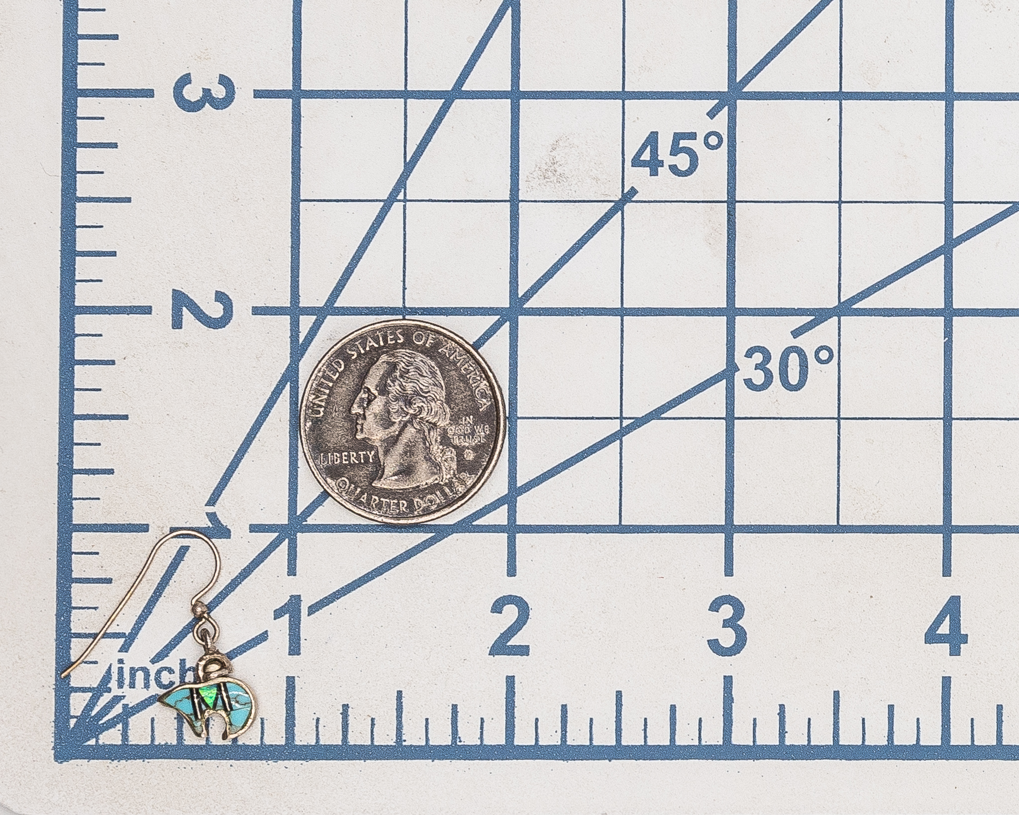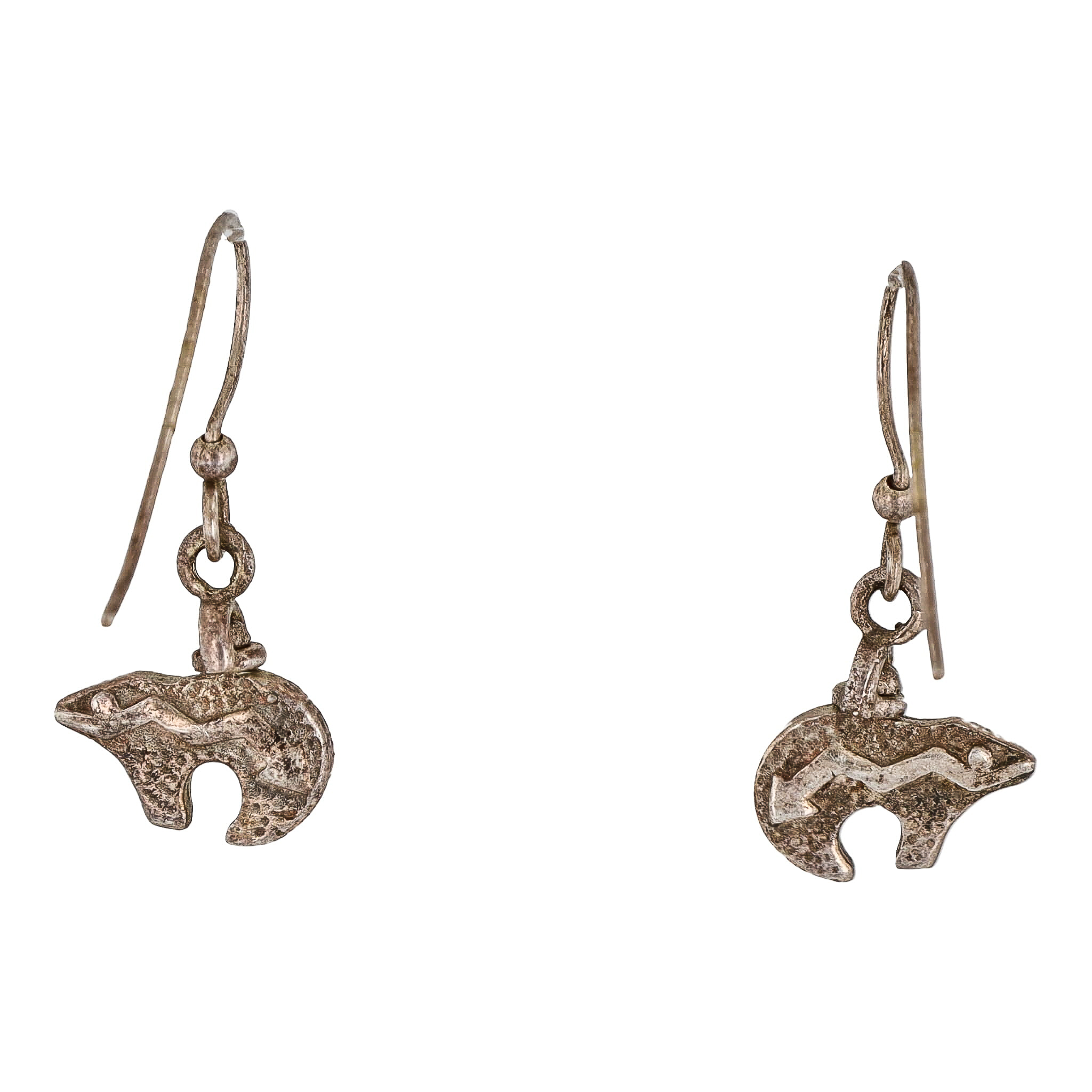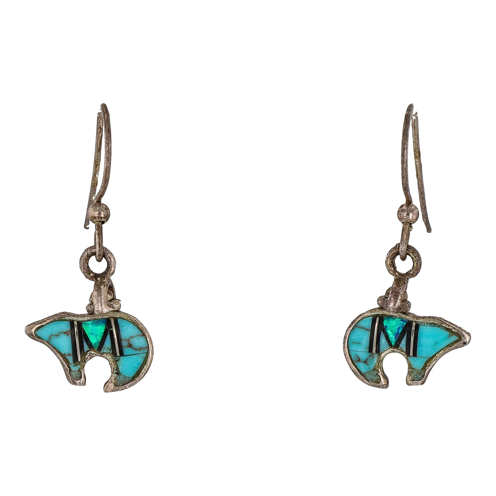 Vintage Zuni Reversable Sterling Turquoise Opal Heartline Bear Earrings 2g