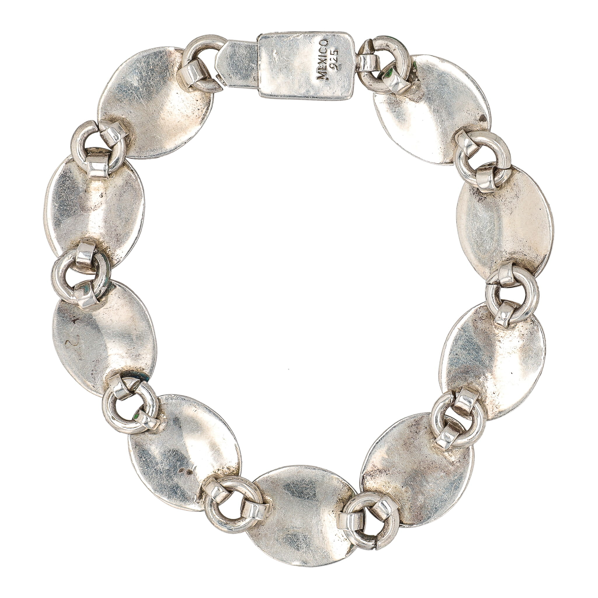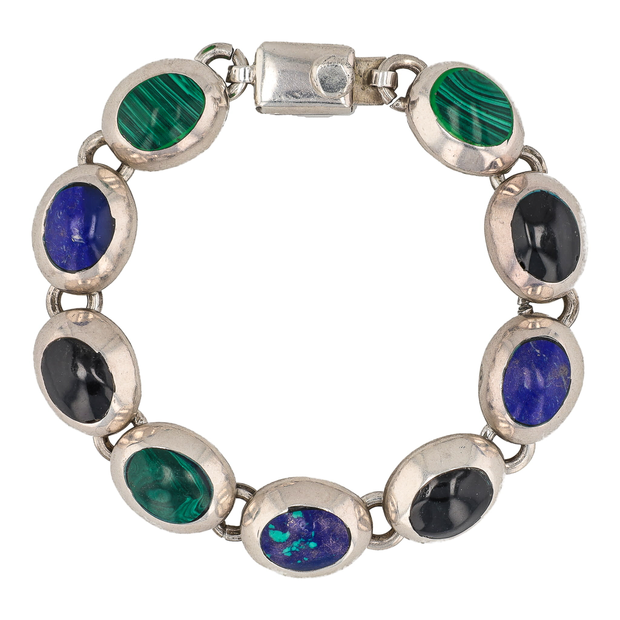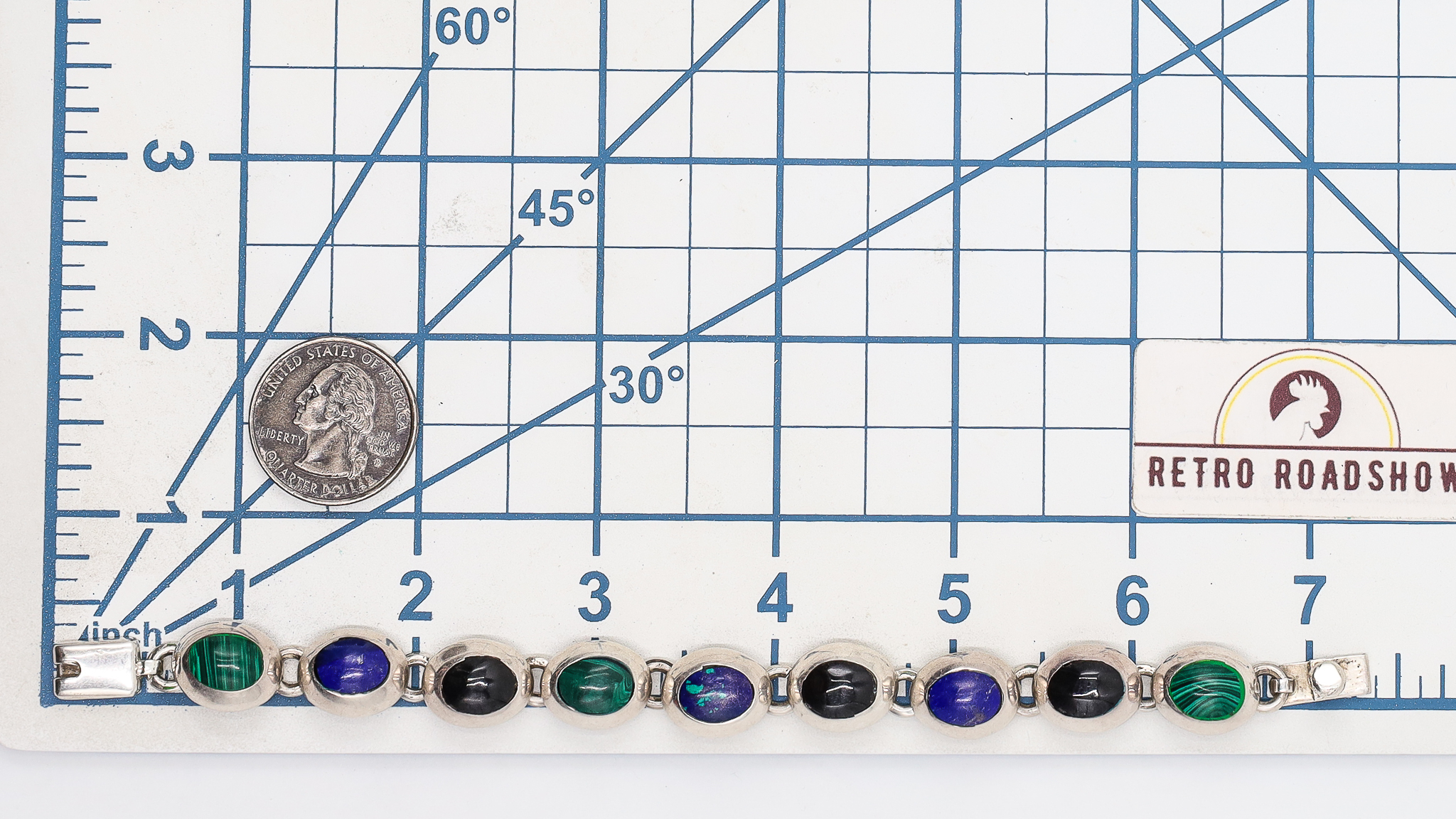 Vintage Mexico Multi Stone Sterling Bracelet 30.5g-Malachite, Azurite, Onyx