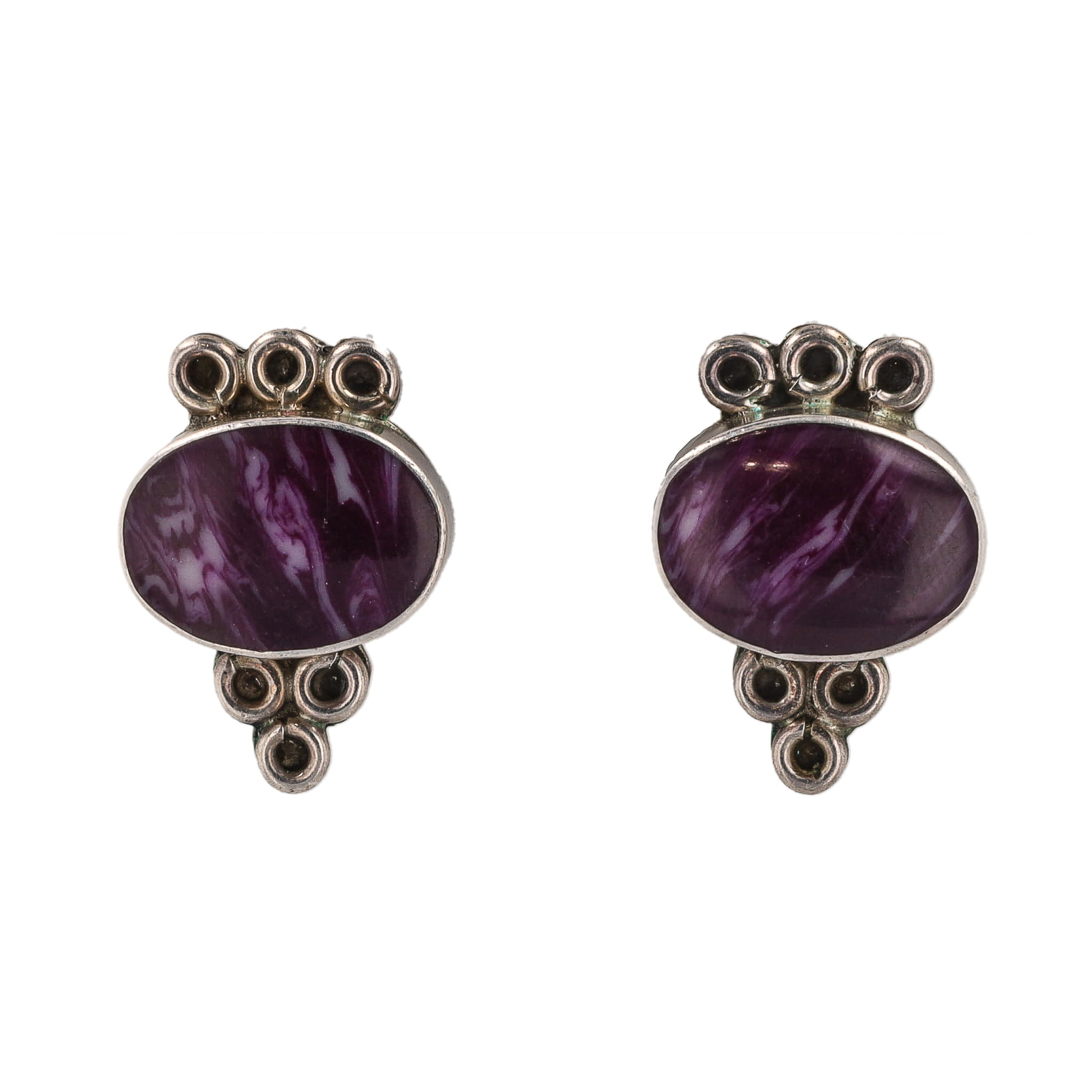 Signed TC-140 Taxco Mexico Charoite Sterling Earring 10.5g
