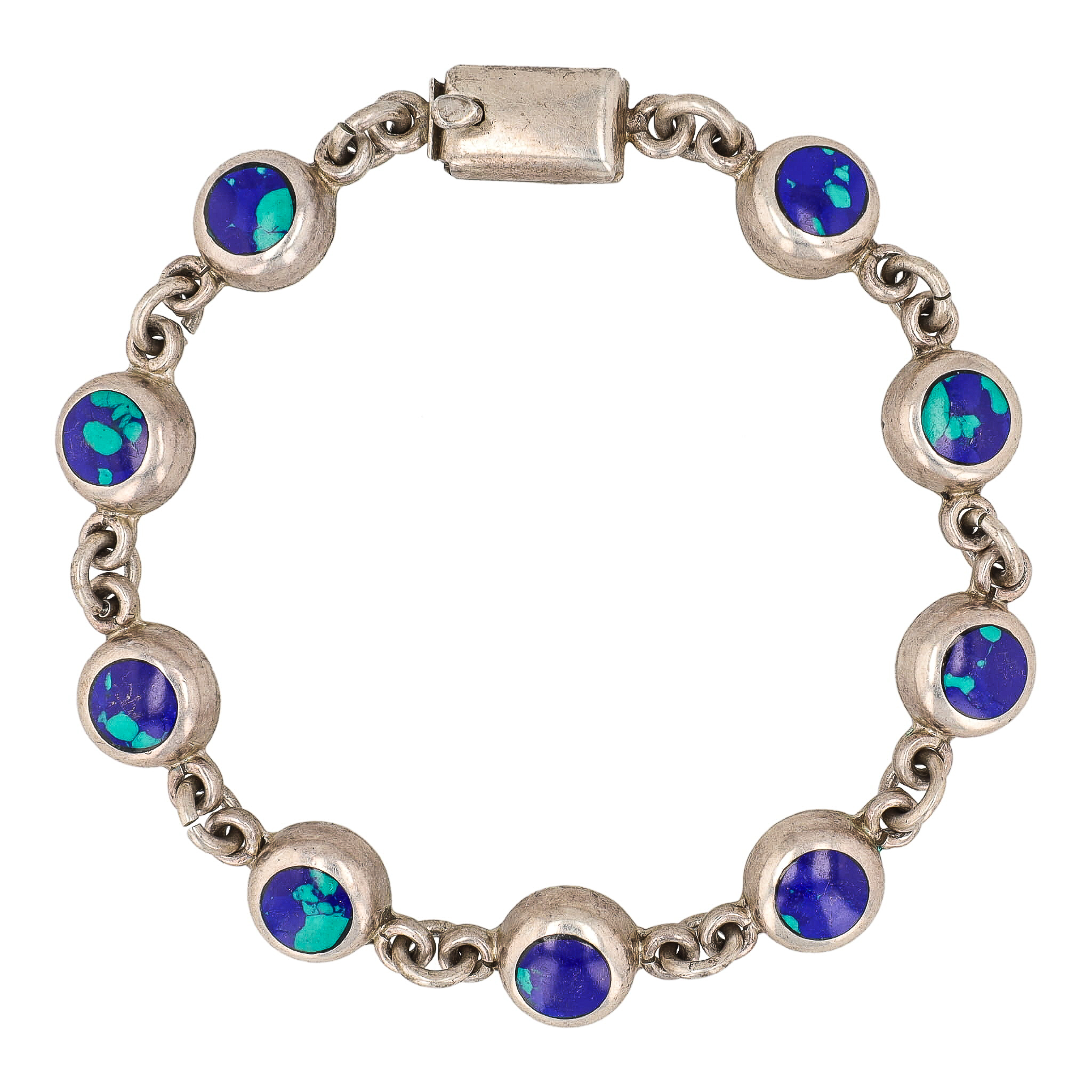 Vintage Mexico Azurite Sterling Bracelet 31g