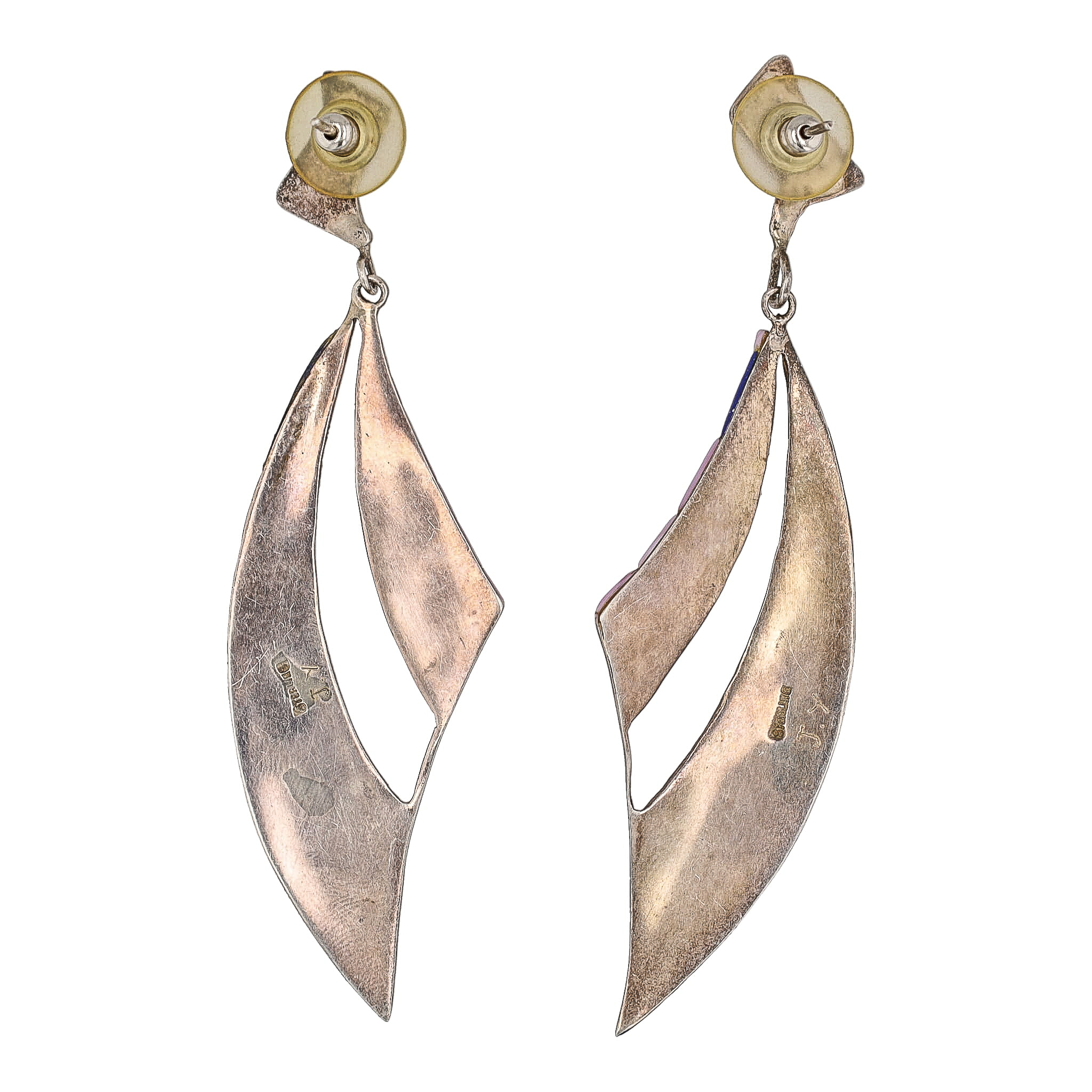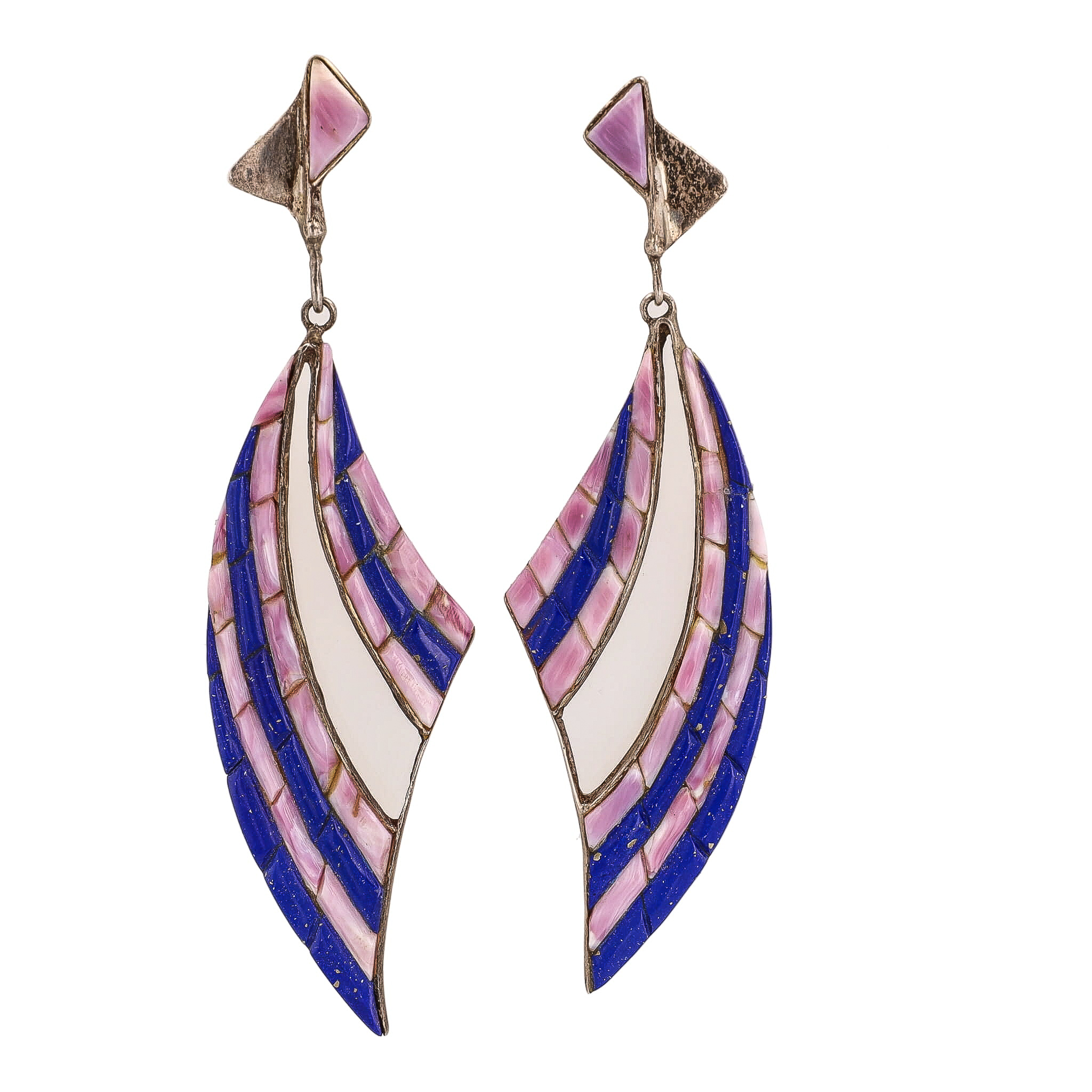 Signed JY Navajo Lapis Purple Spiny Oyster Cobblestone Dangle Earrings 17g
