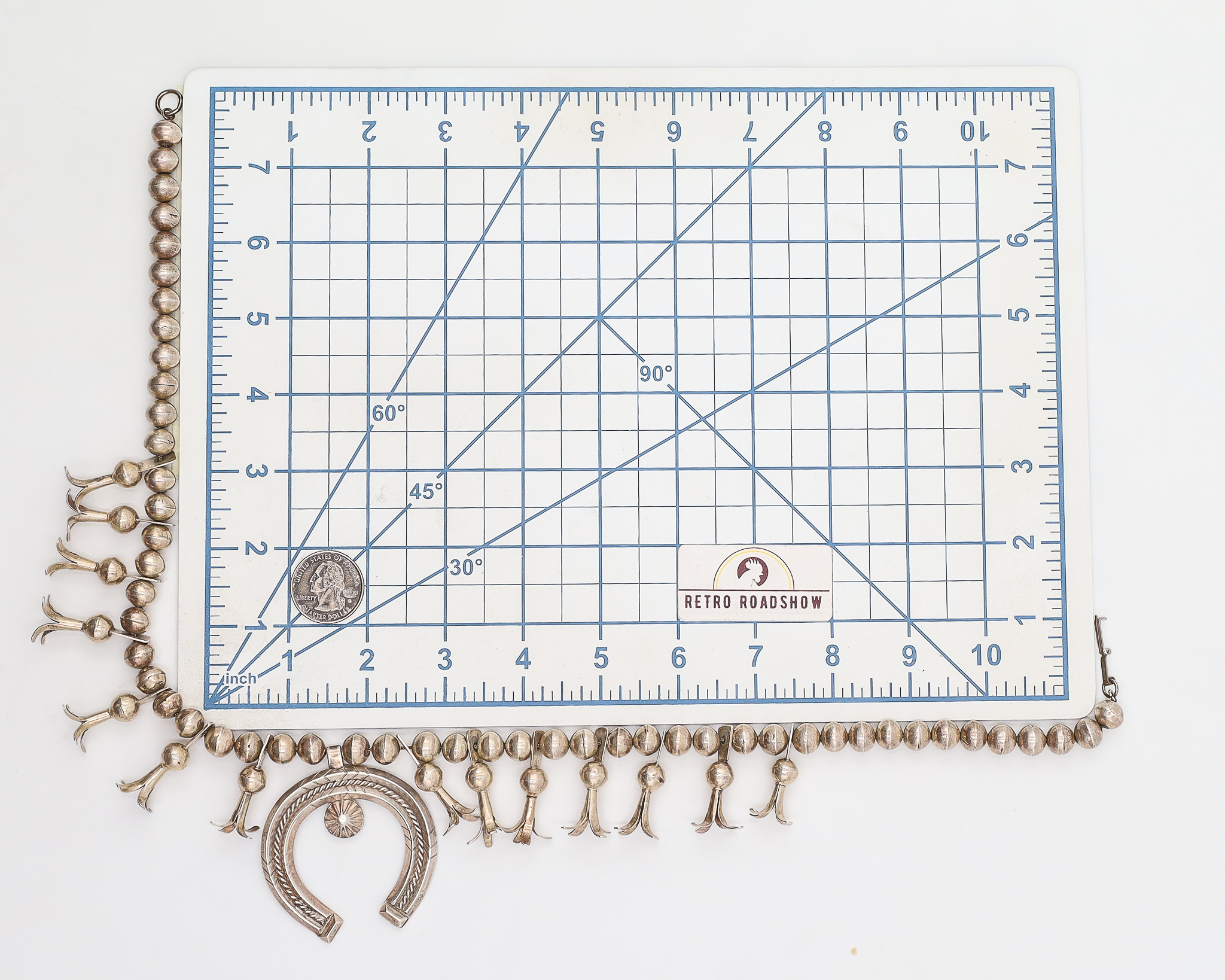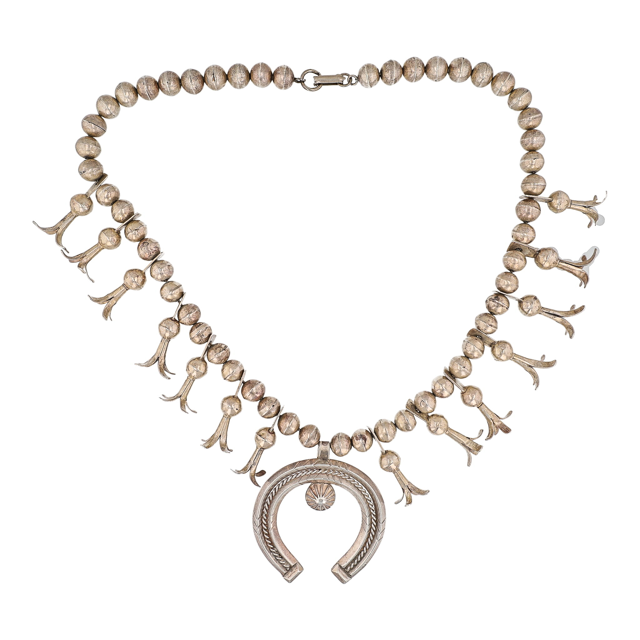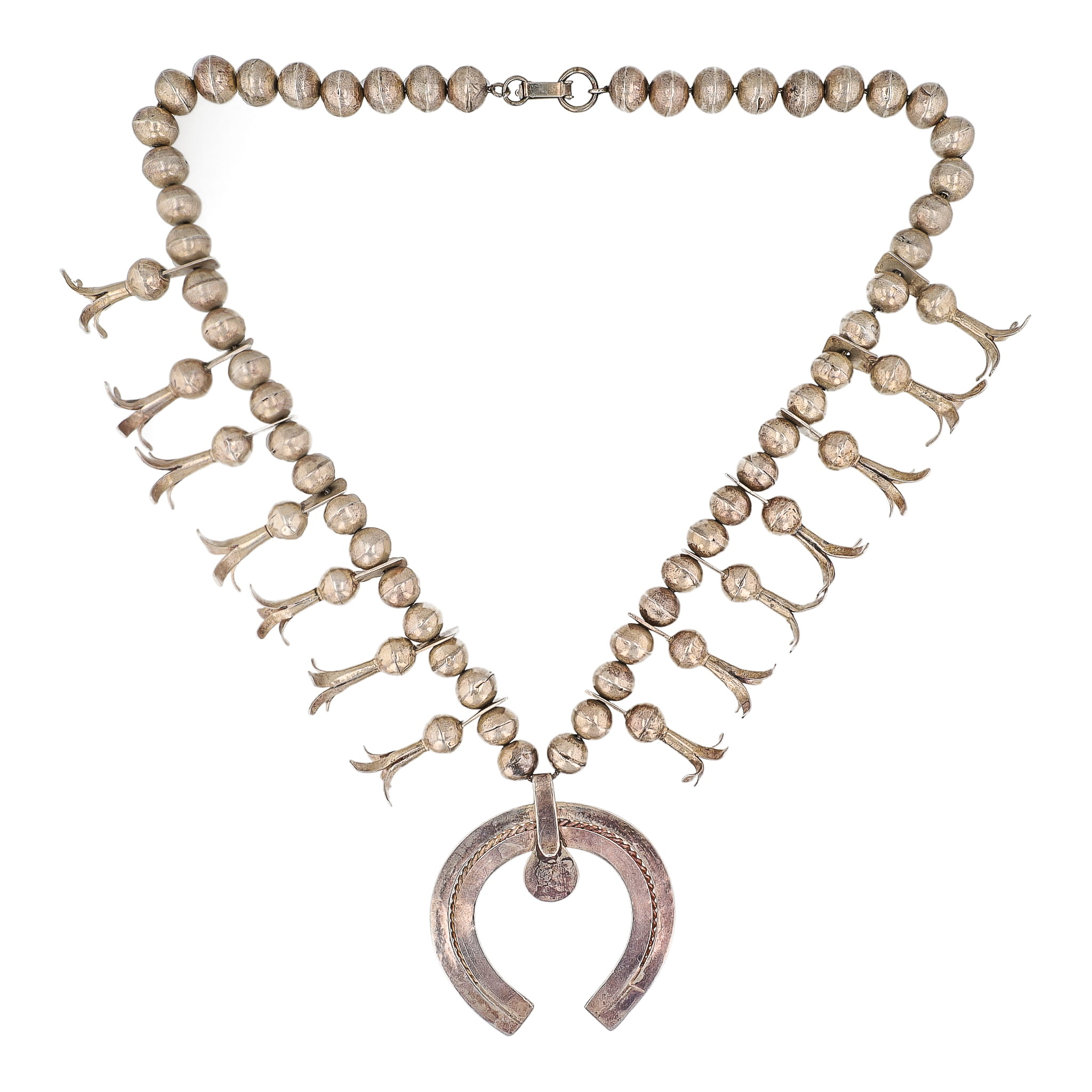 Vintage Navajo Sterling Beaded Naja Squash Blossom Necklace 109g