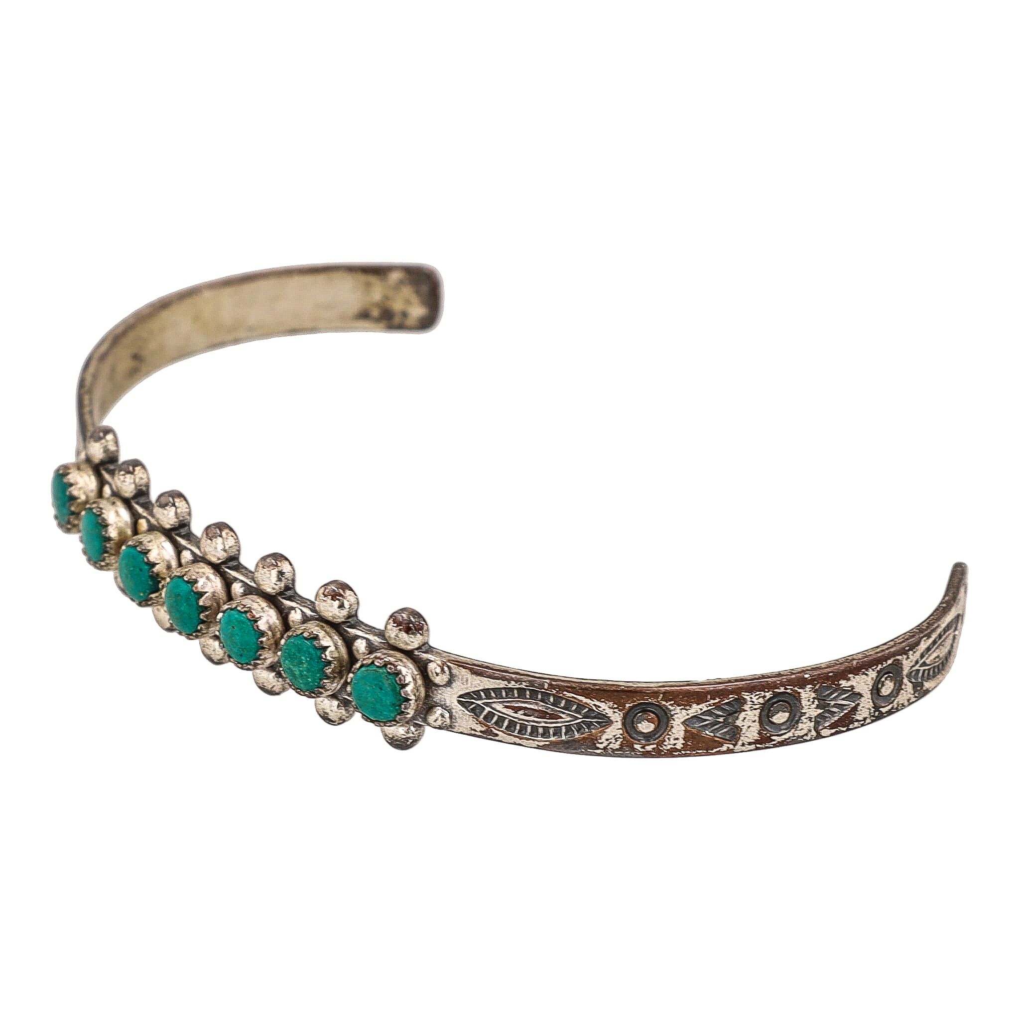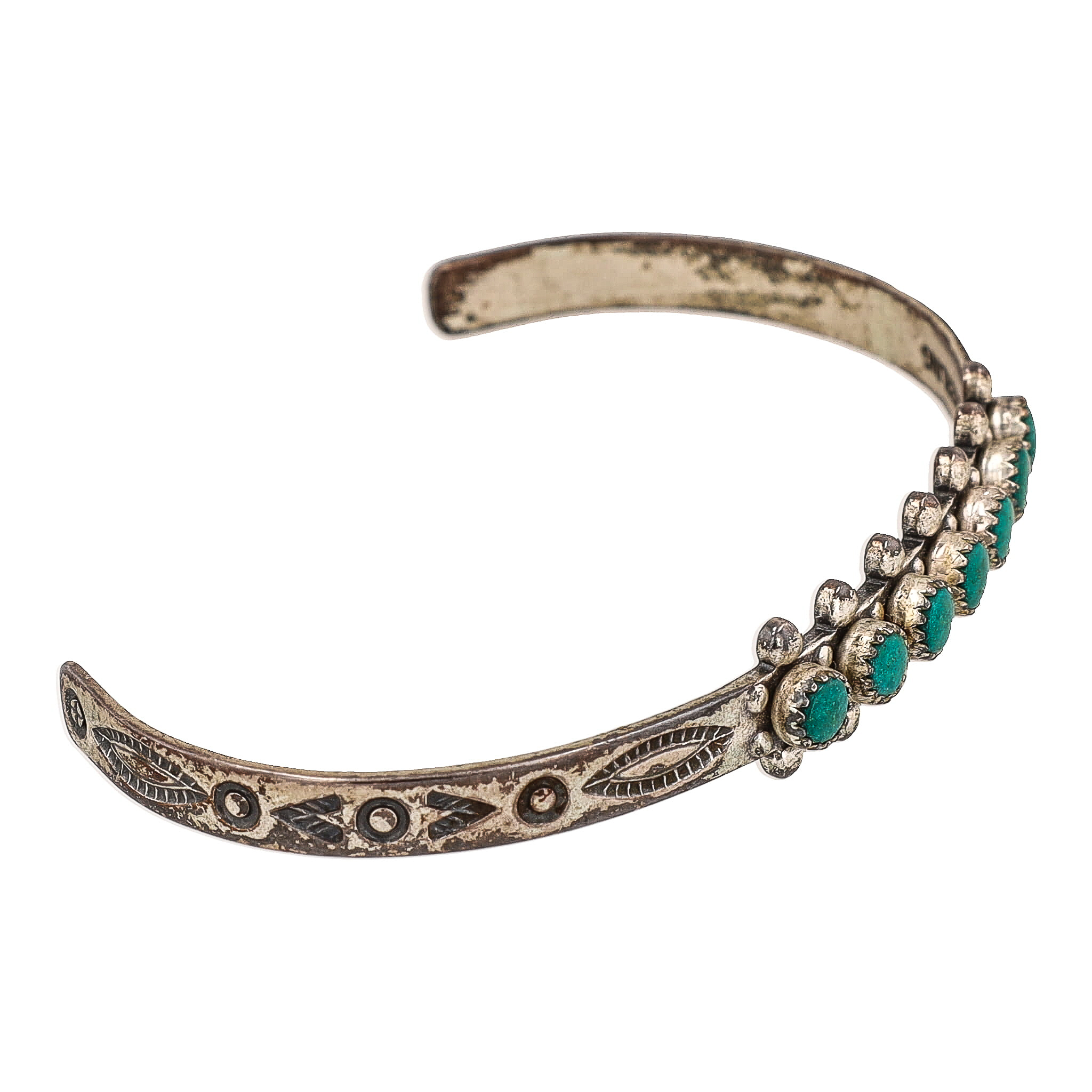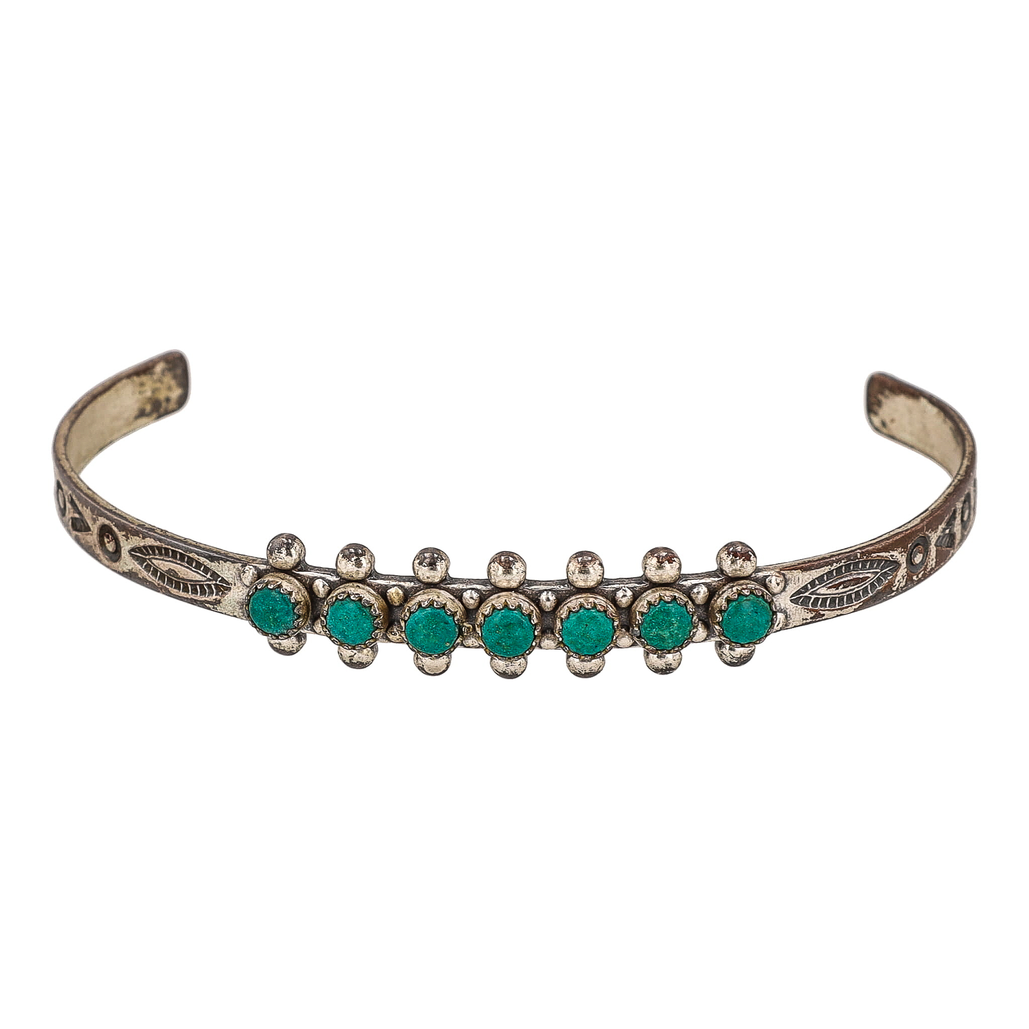 Vintage Zuni Green Turquoise Sterling Cuff Bracelet 5g
