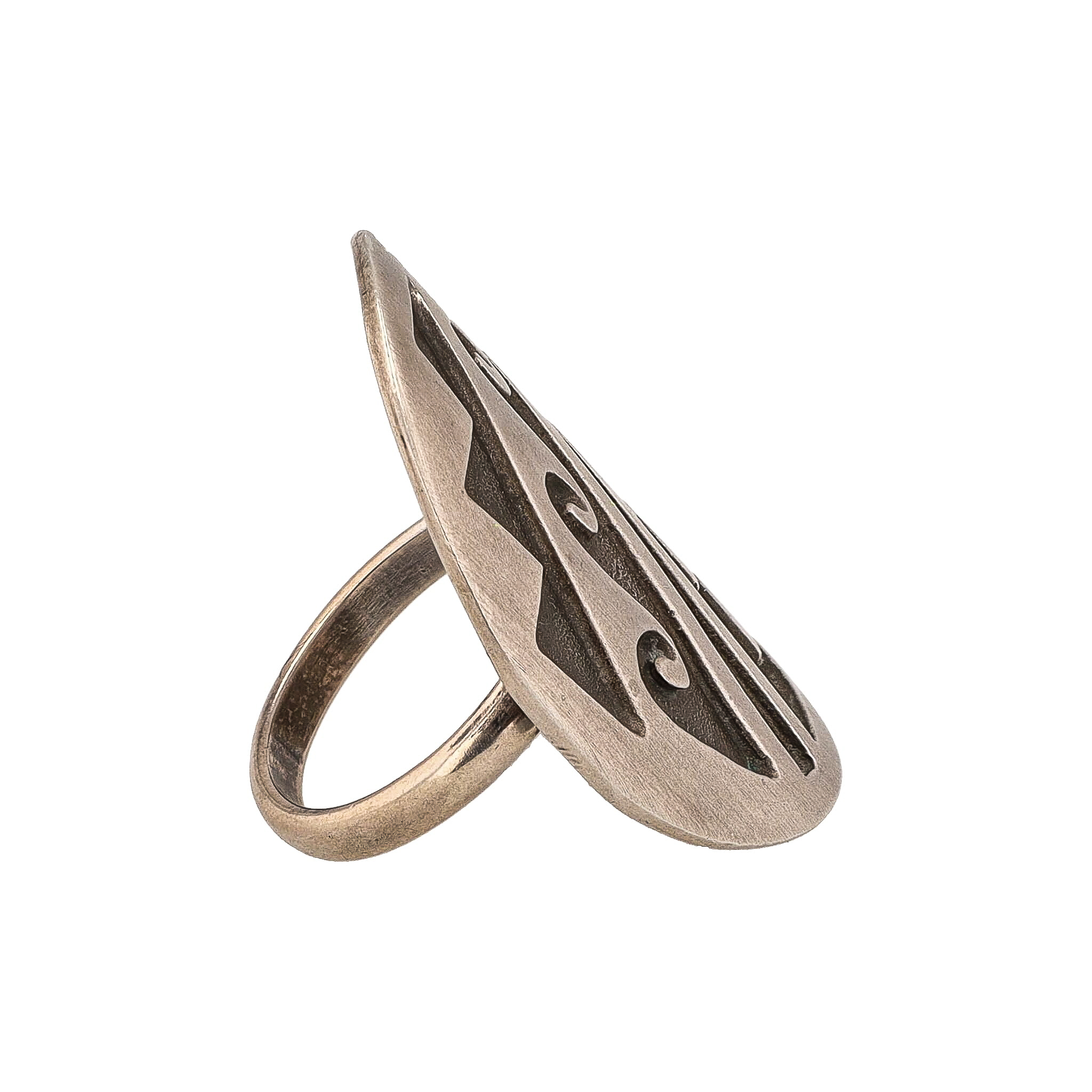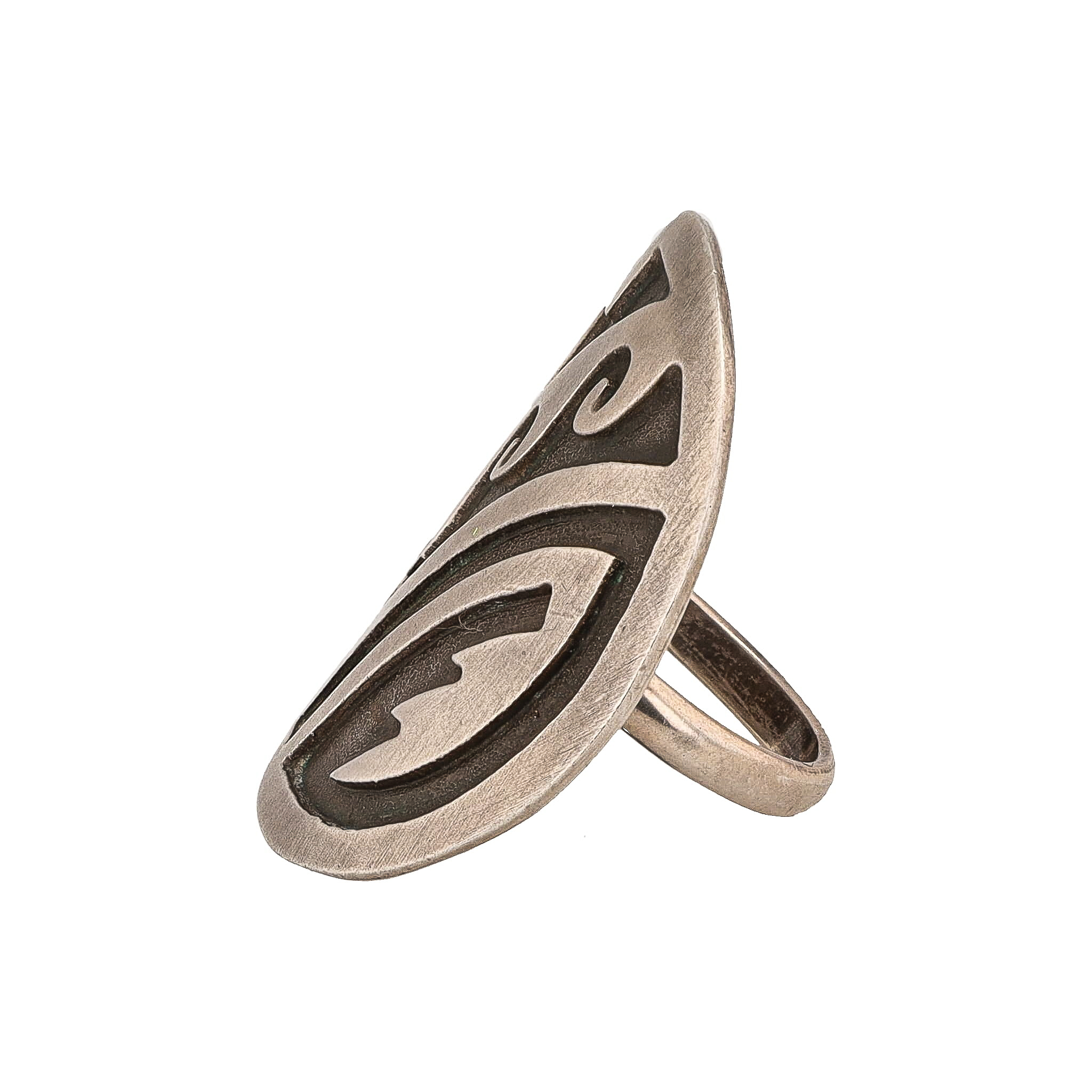 Vintage Hopi Sterling Overlay Ring Sz. 6.5, 10.5g