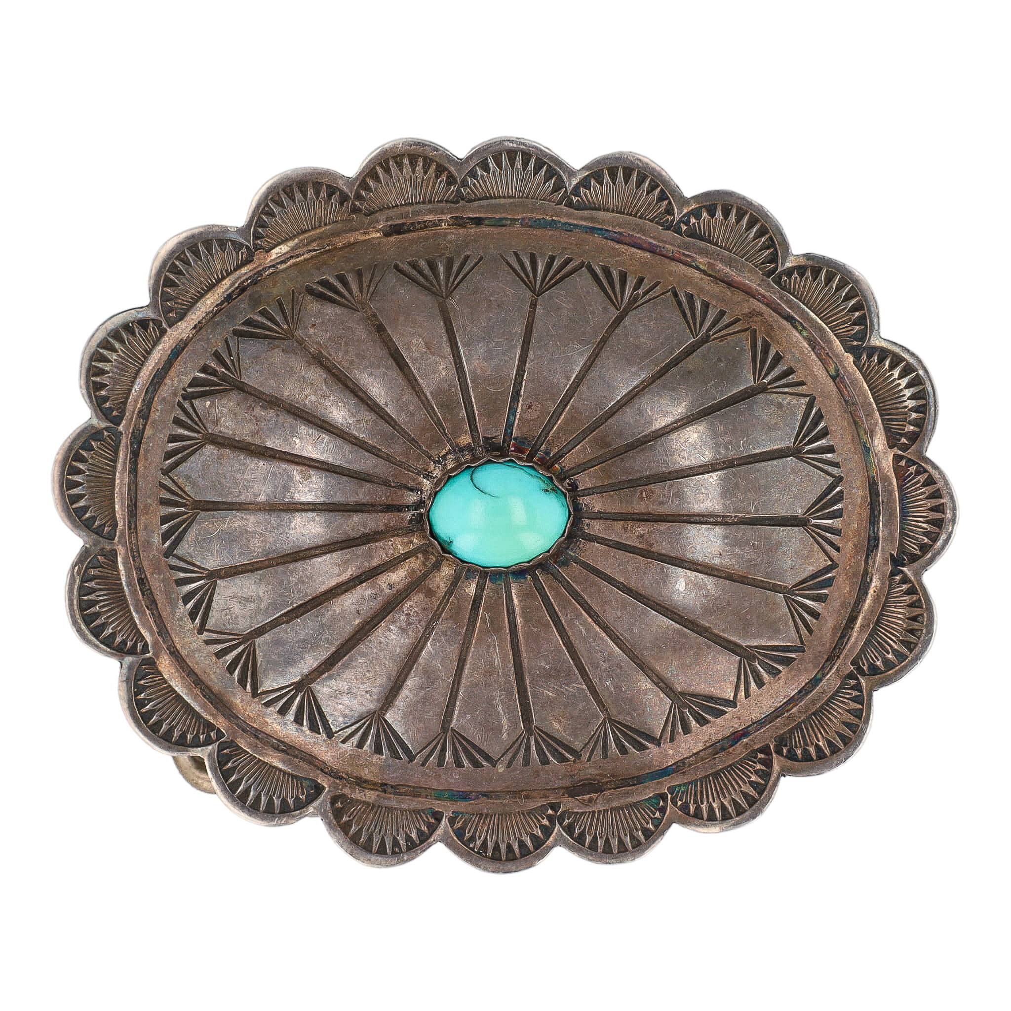 Vintage Navajo Turquoise Sterling Concho Belt Buckle 15.5g