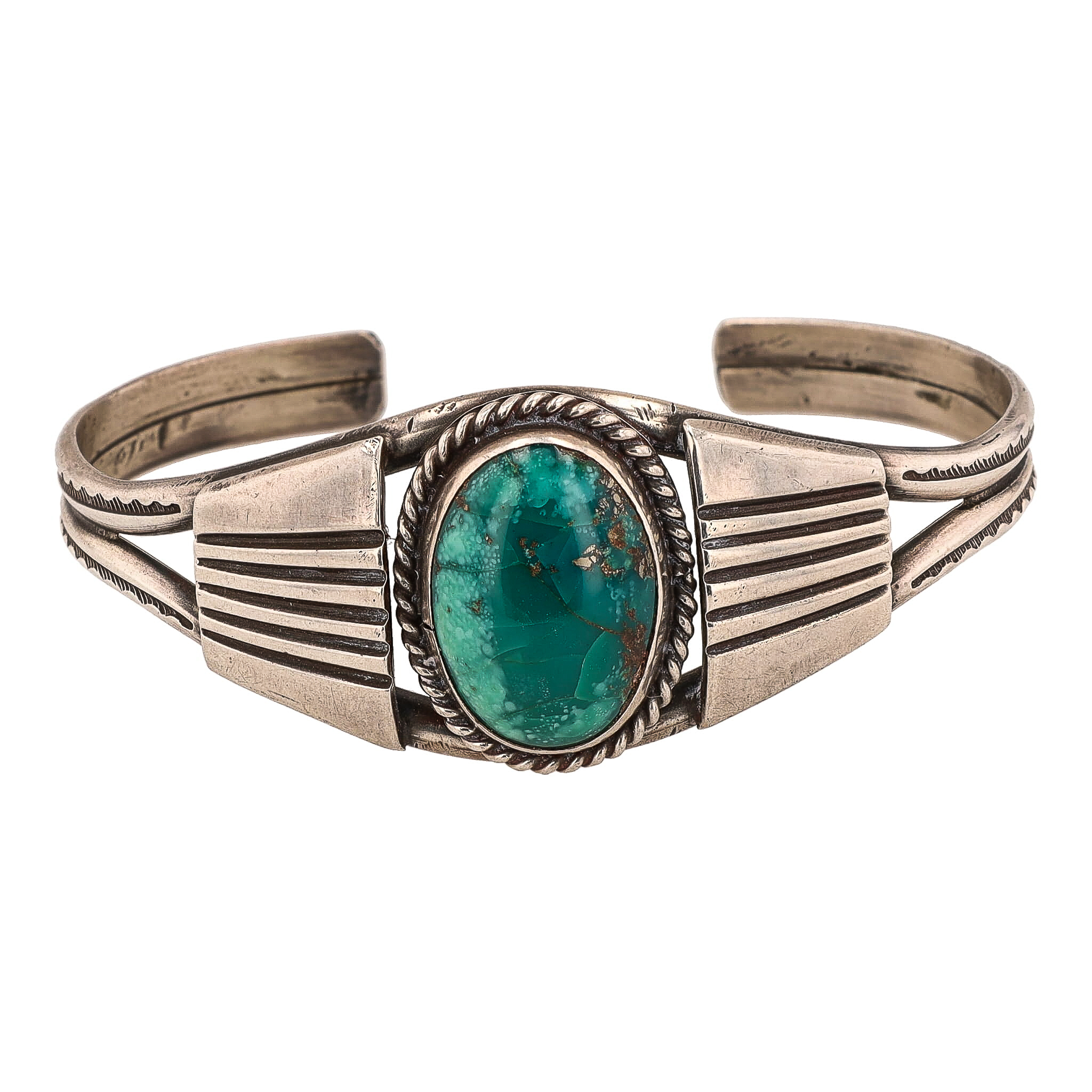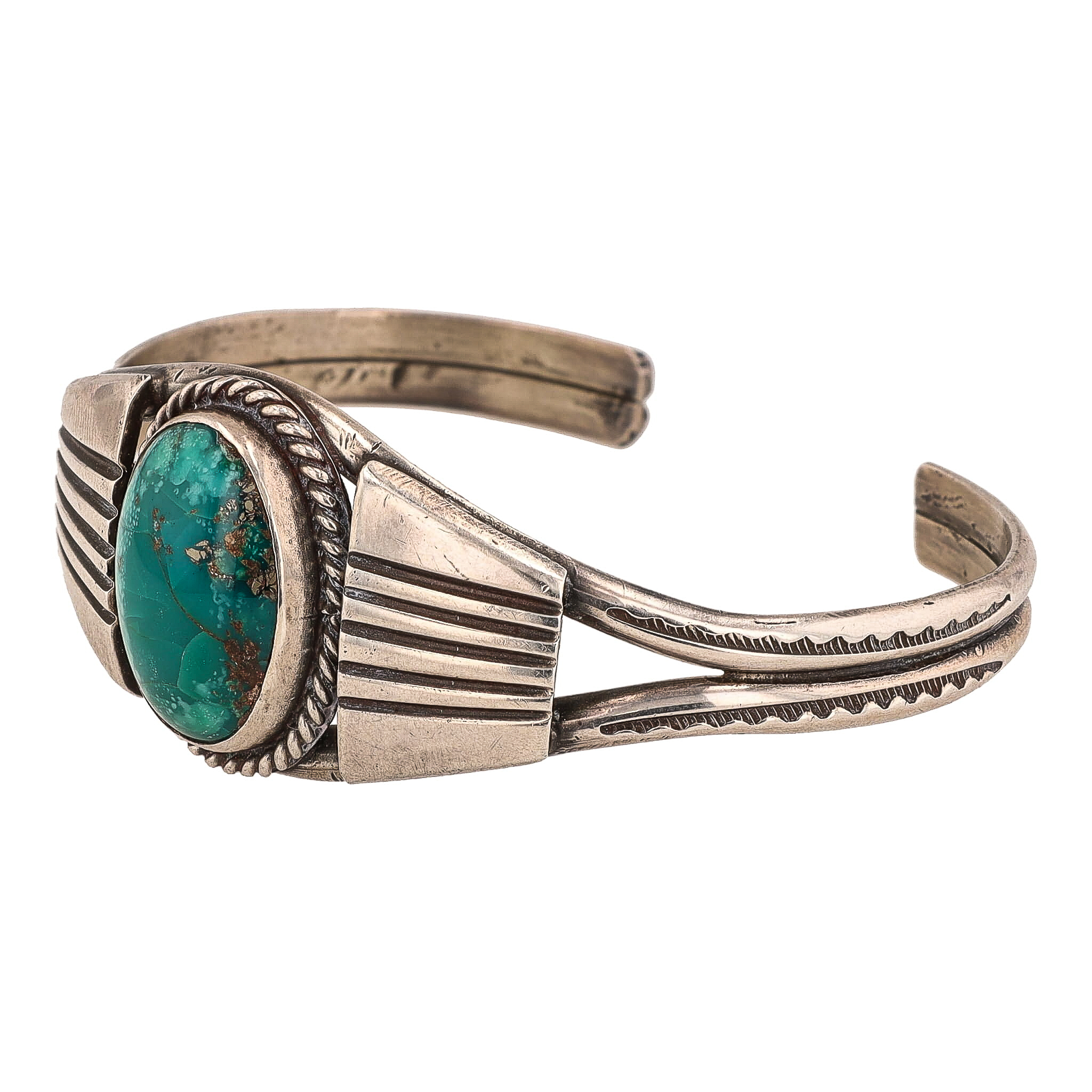 Vintage Navajo Turquoise Sterling Mid Century Cuff Bracelet 20g