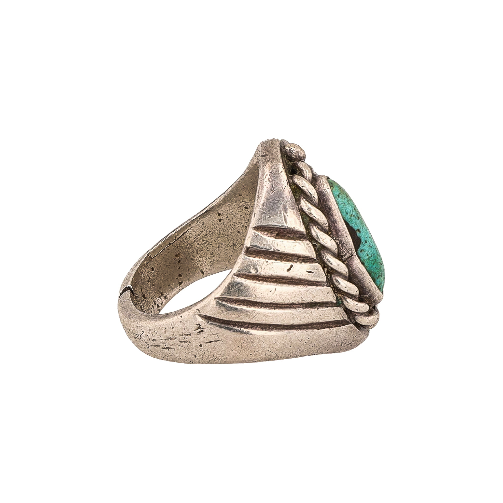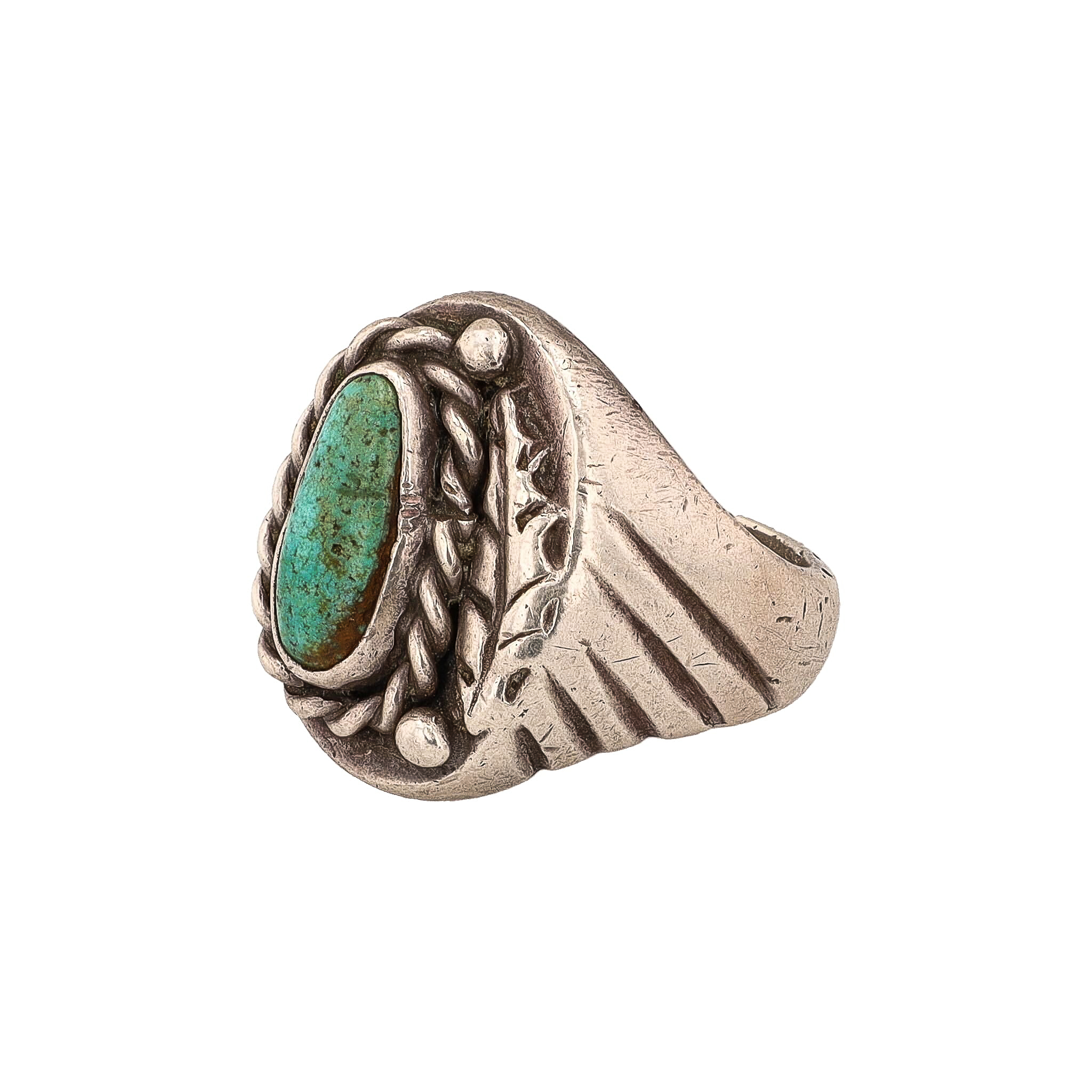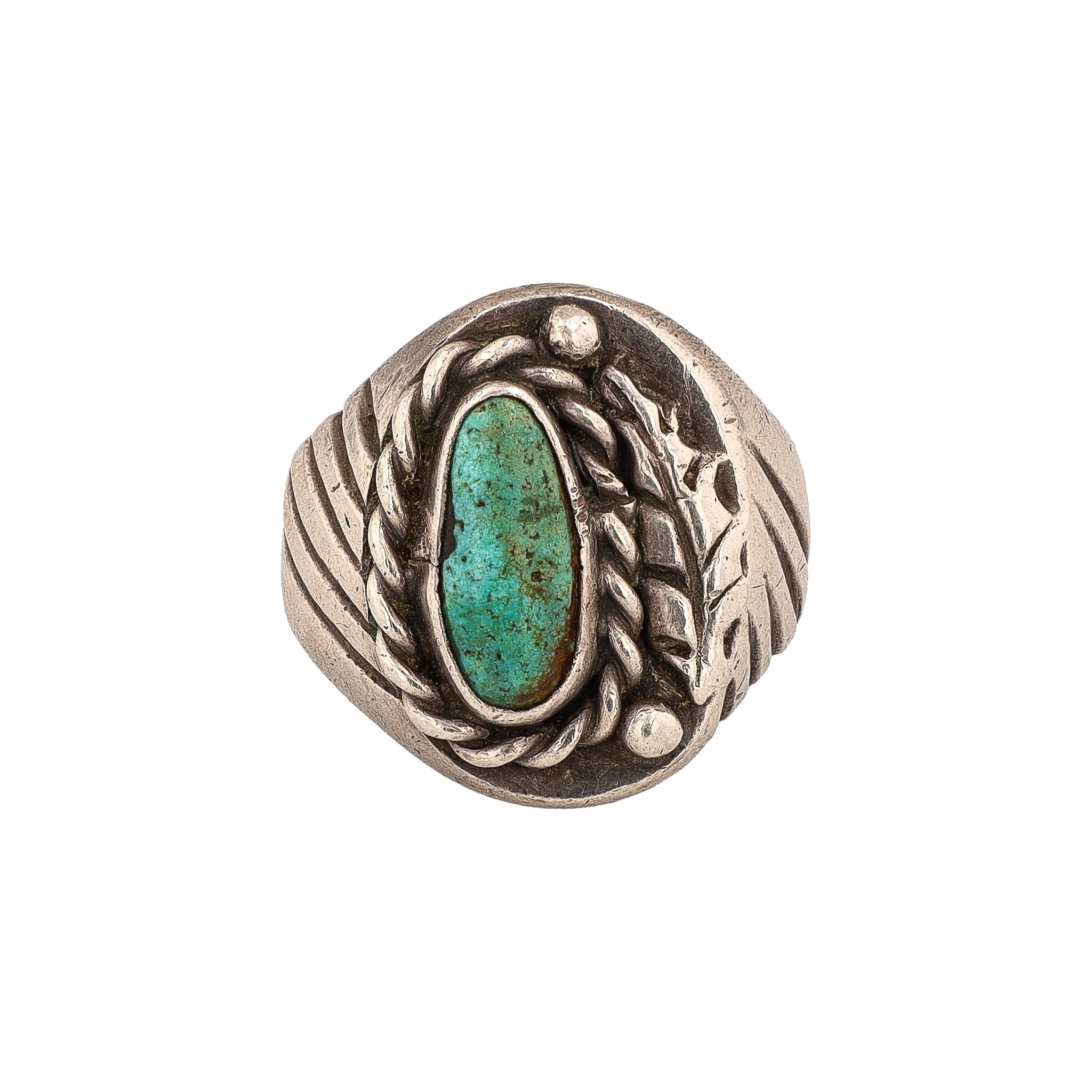 Vintage Navajo Turquoise Sterling Leaf Twist Ring Sz. 7.75 As Is 17g-Crack in Band