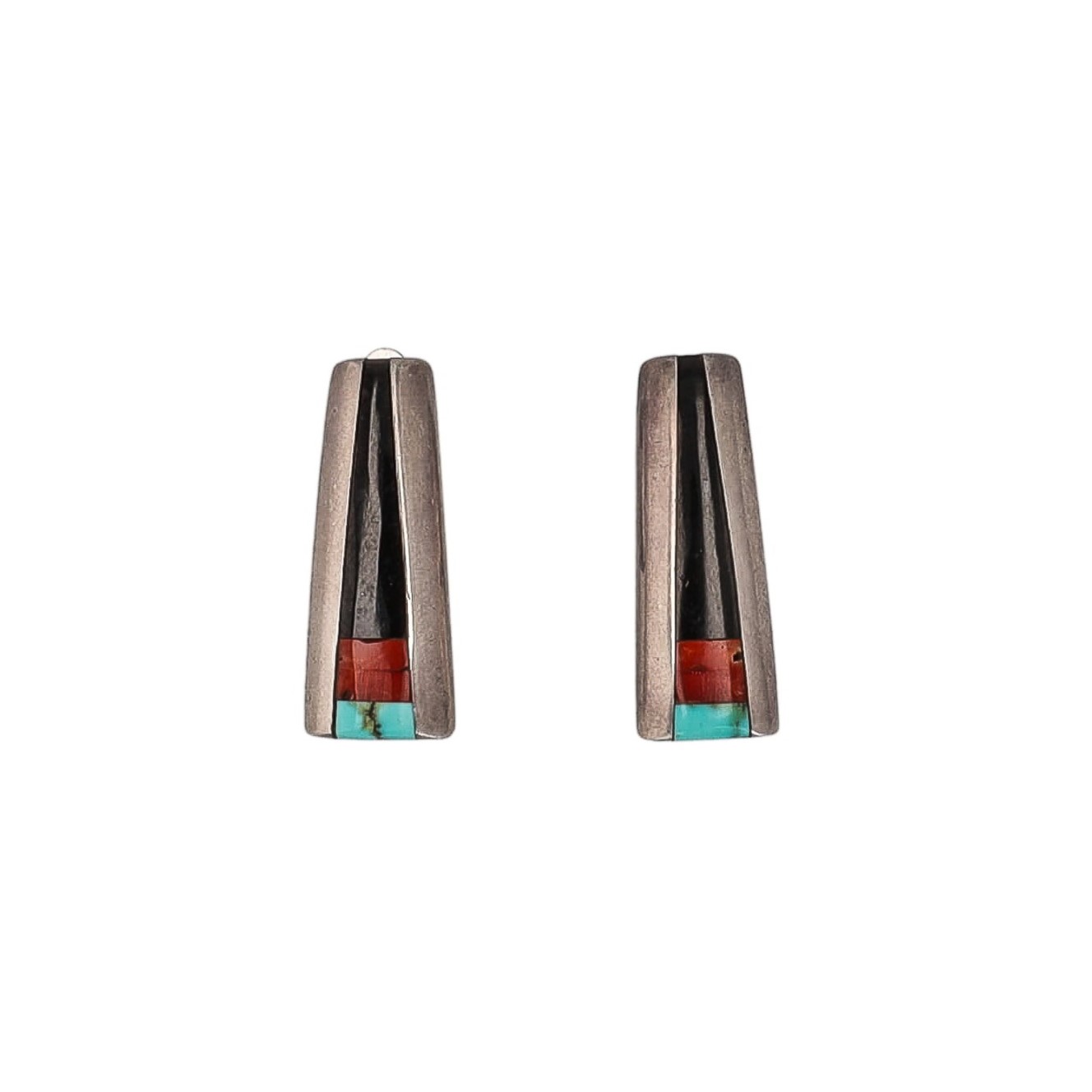 Jimmy Royer Navajo Onyx Coral Turquoise Sterling Inlay Earrings 11g