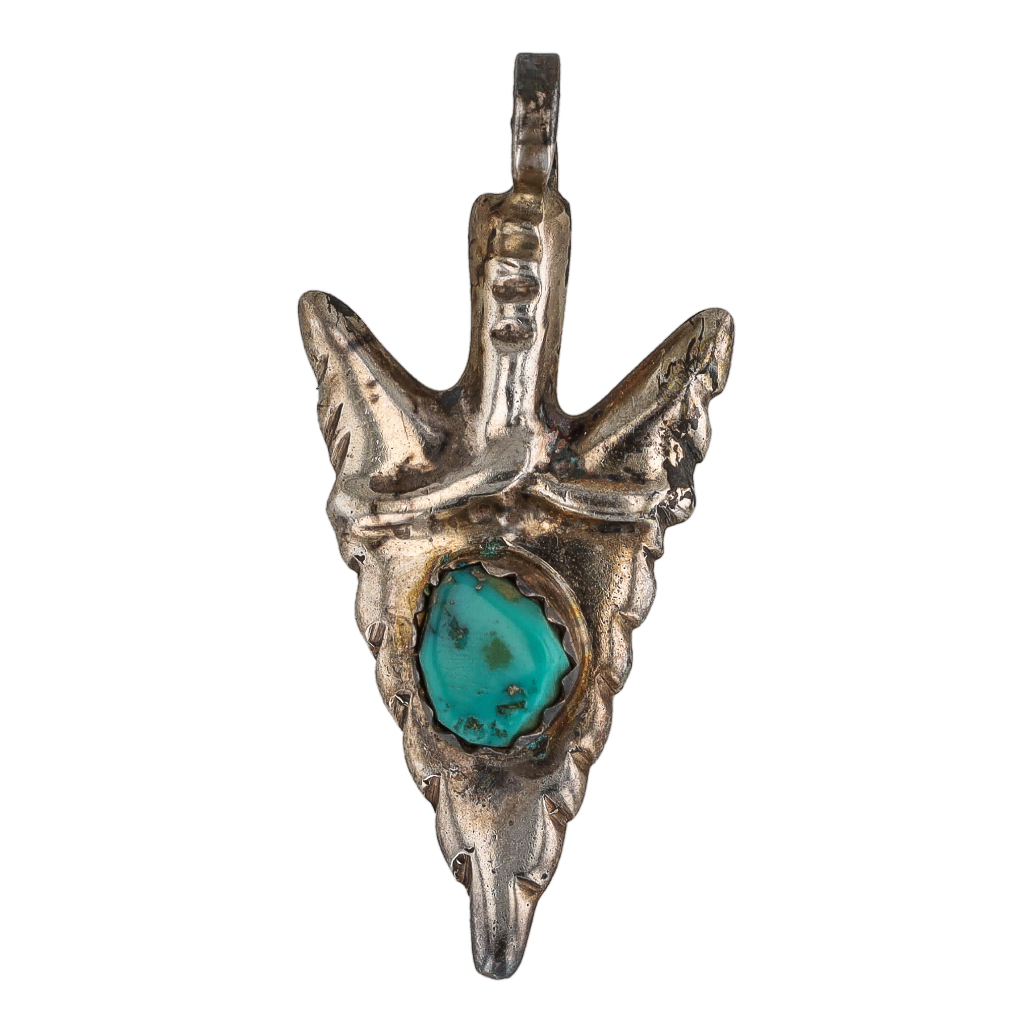 Vintage Navajo Turquoise Sandcast Sterling Arrowhead Pendant 3g