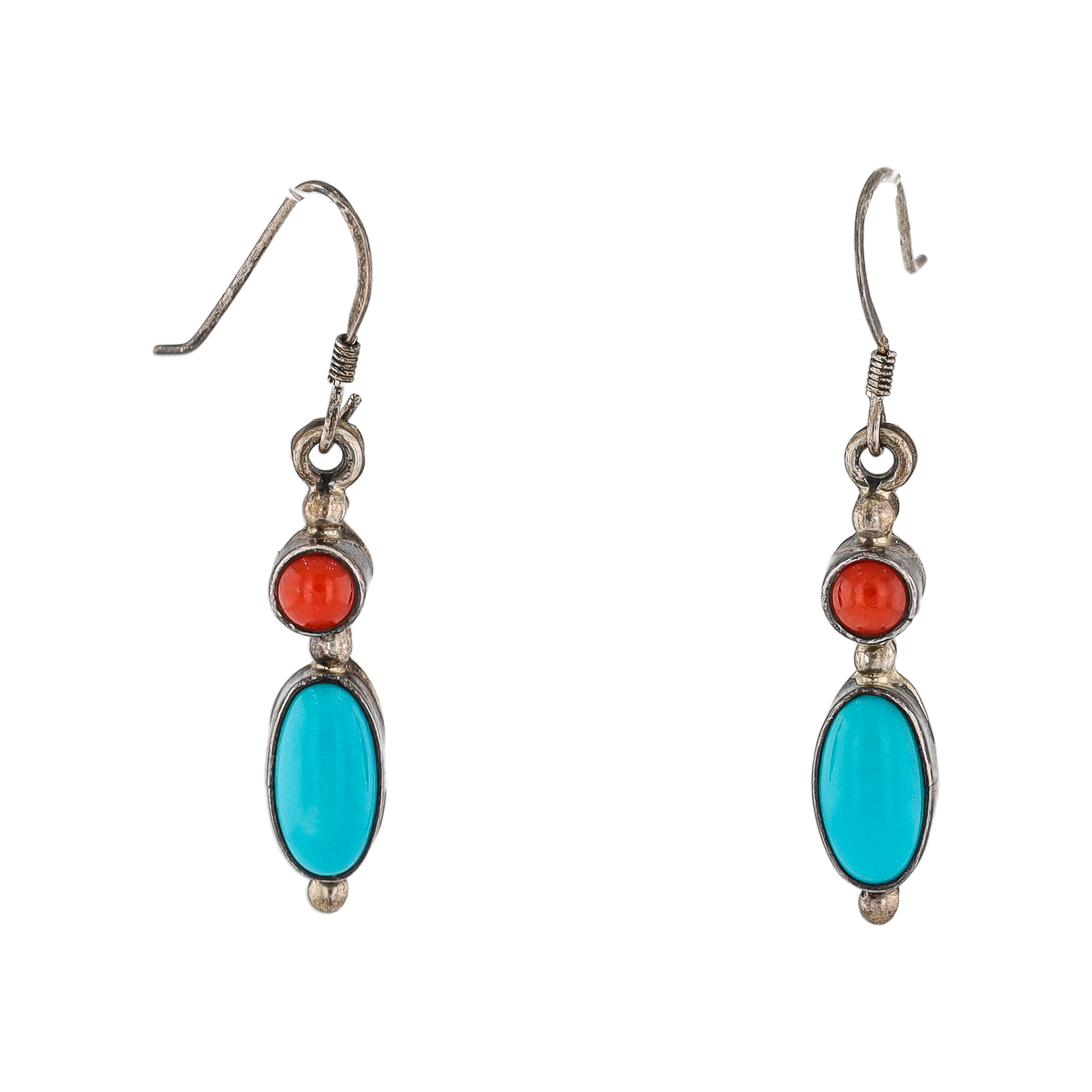 Richard Begay Navajo Coral Turquoise Sterling Dangle Earrings 3g