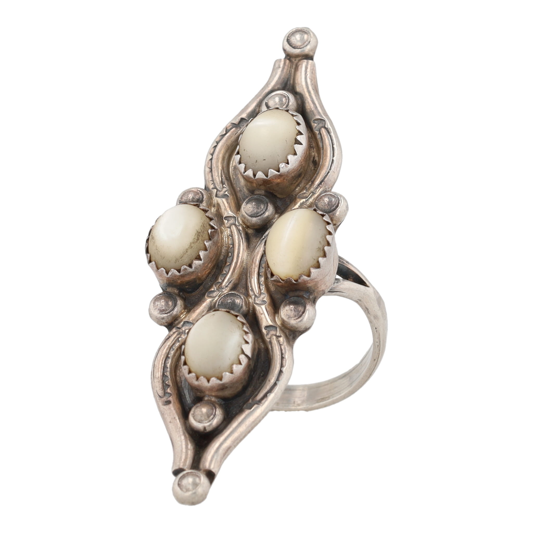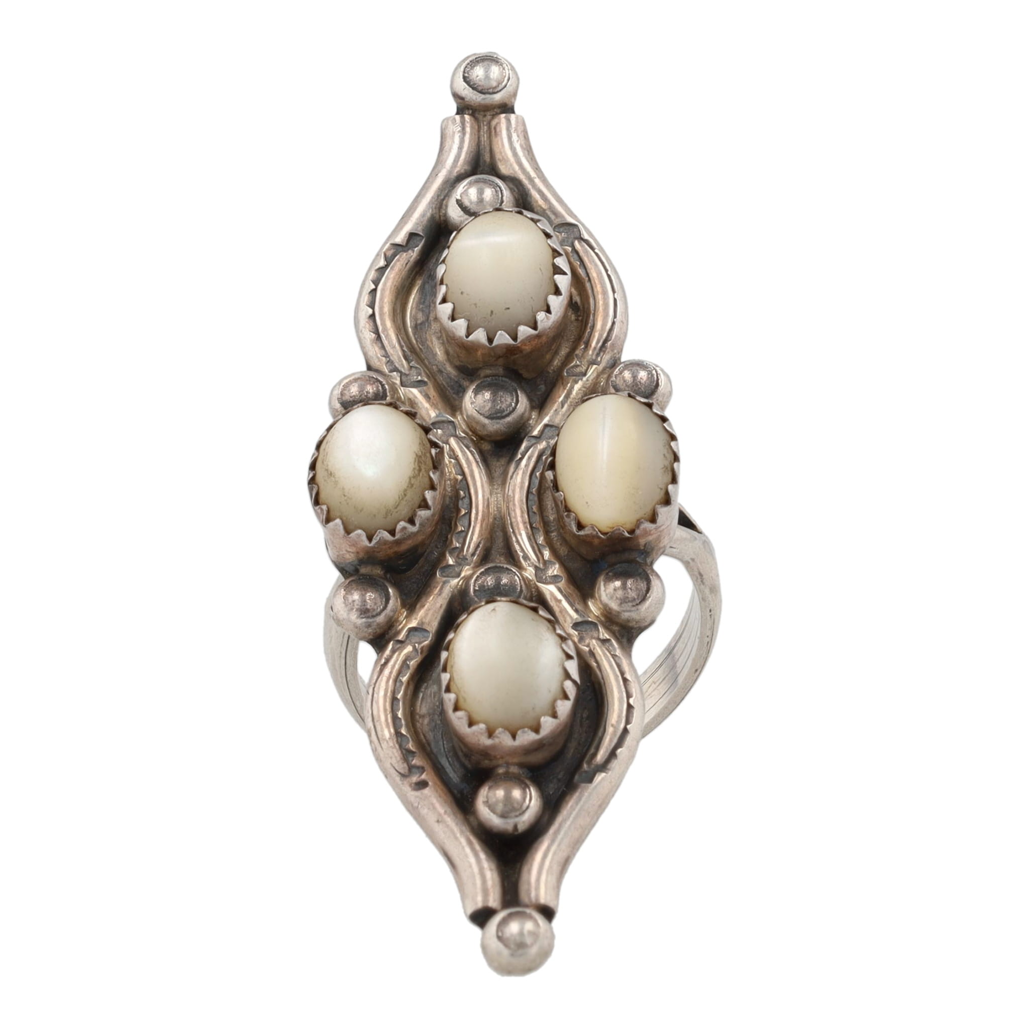 Vintage Navajo Moonstone Sterling Overlay Ring Sz. 8, 11.5g As Is-Band is Broken
