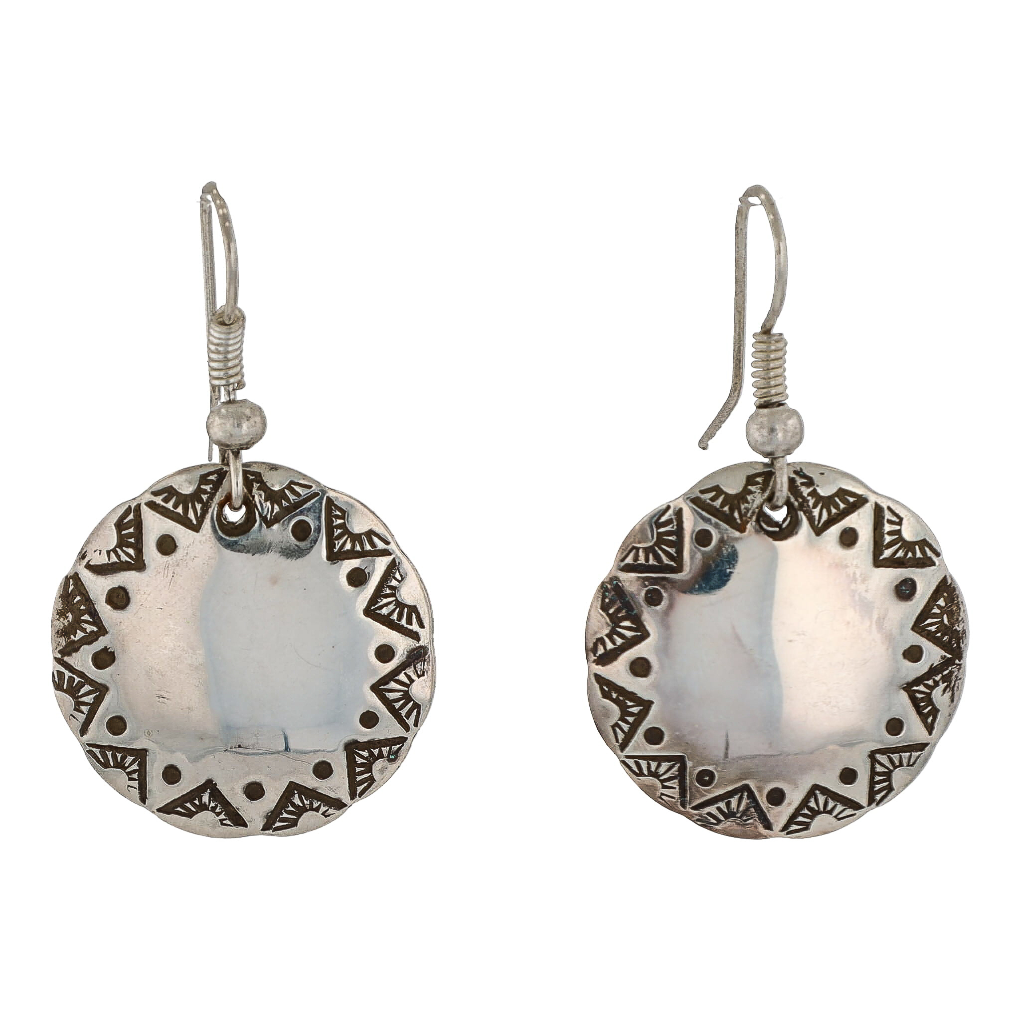 Kathy Lee Thomas Navajo Stamped Sterling Concho Earrings 3g