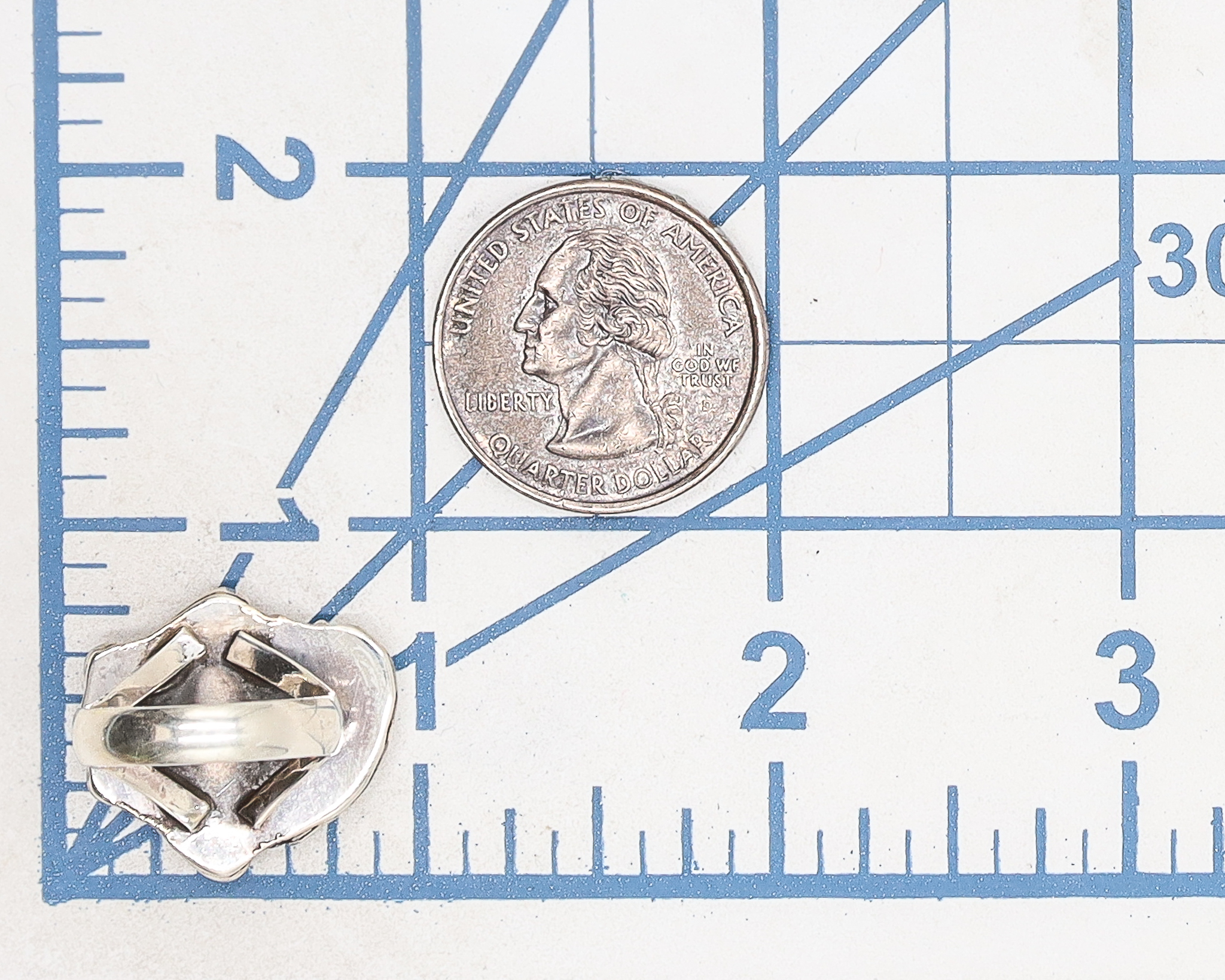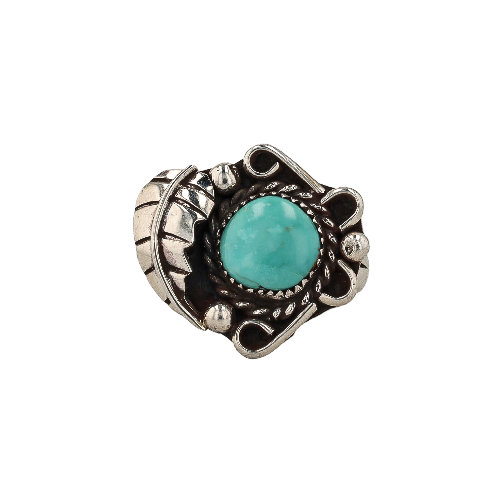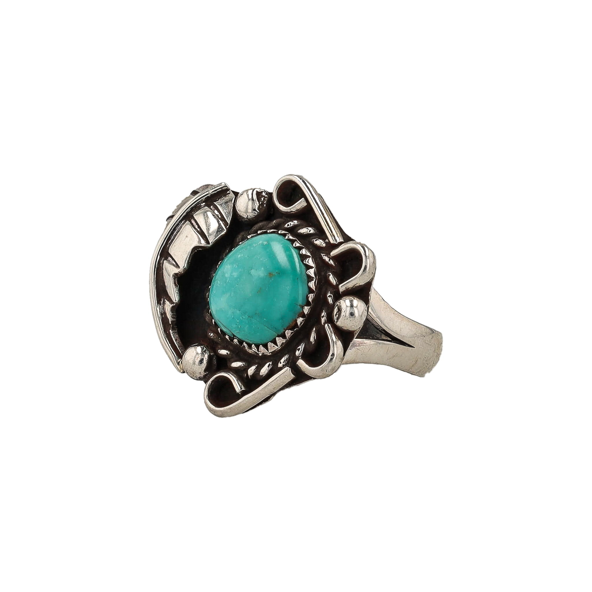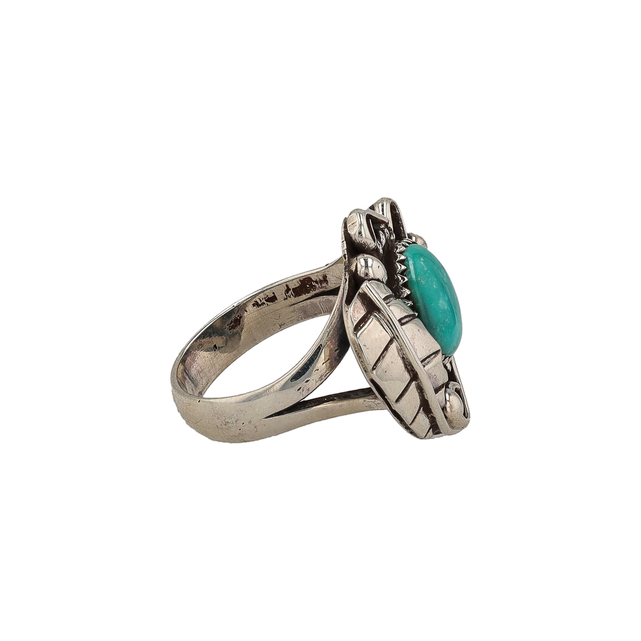 Vintage Navajo Turquoise Sterling Shadow Box Leaf Ring Sz. 6, 6.5g