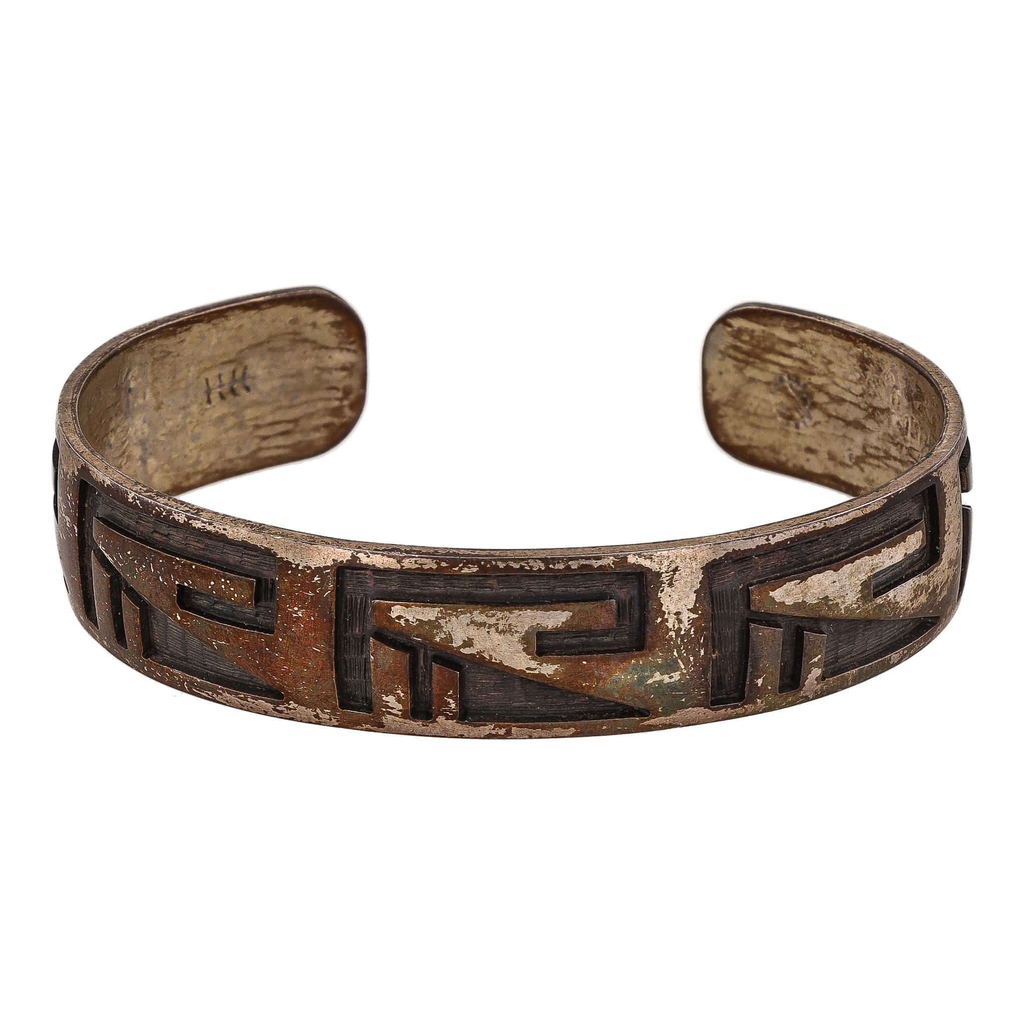 Signed Vintage Hopi Sterling Overlay Cuff Bracelet 25g-May Be Kenneth Kuwanvayouma