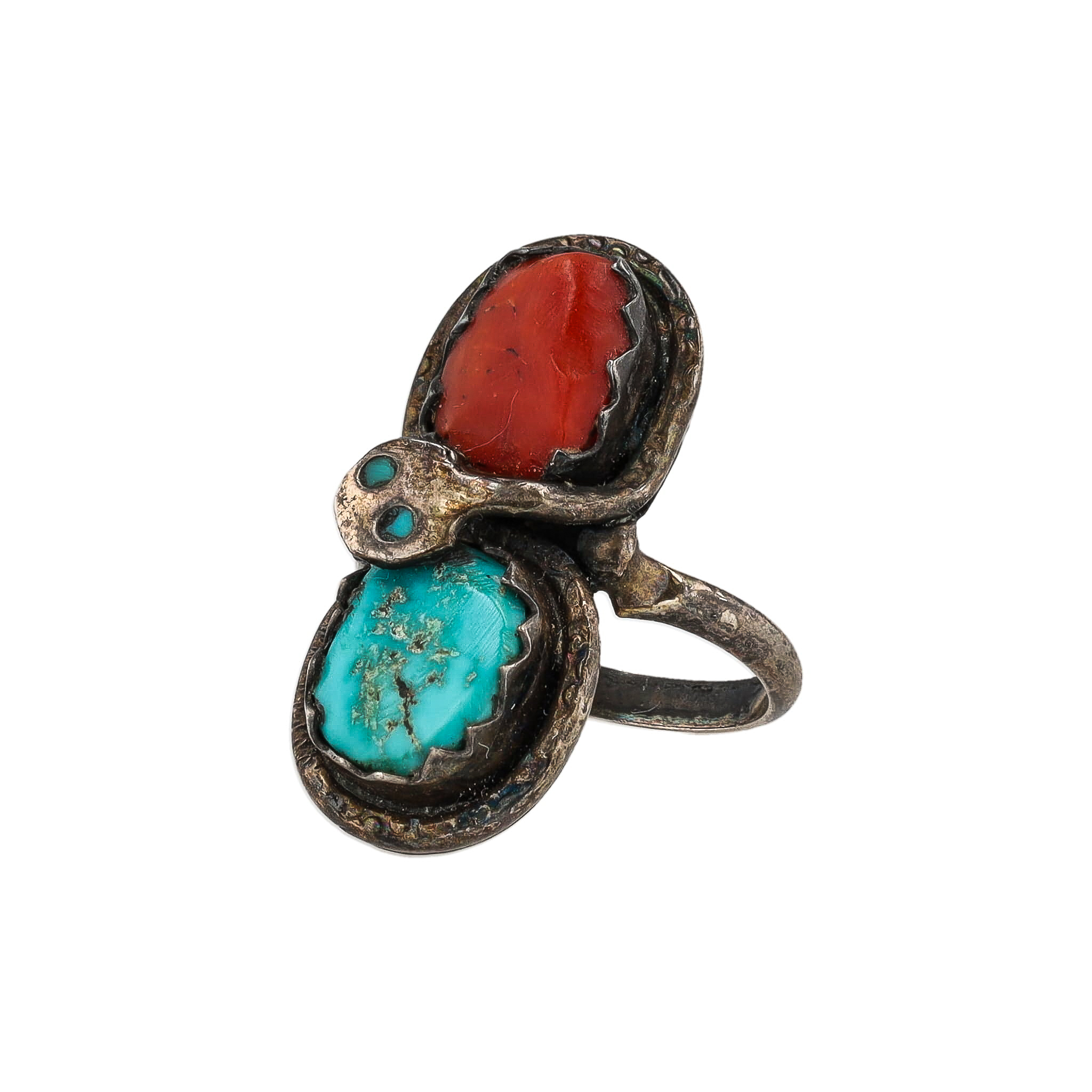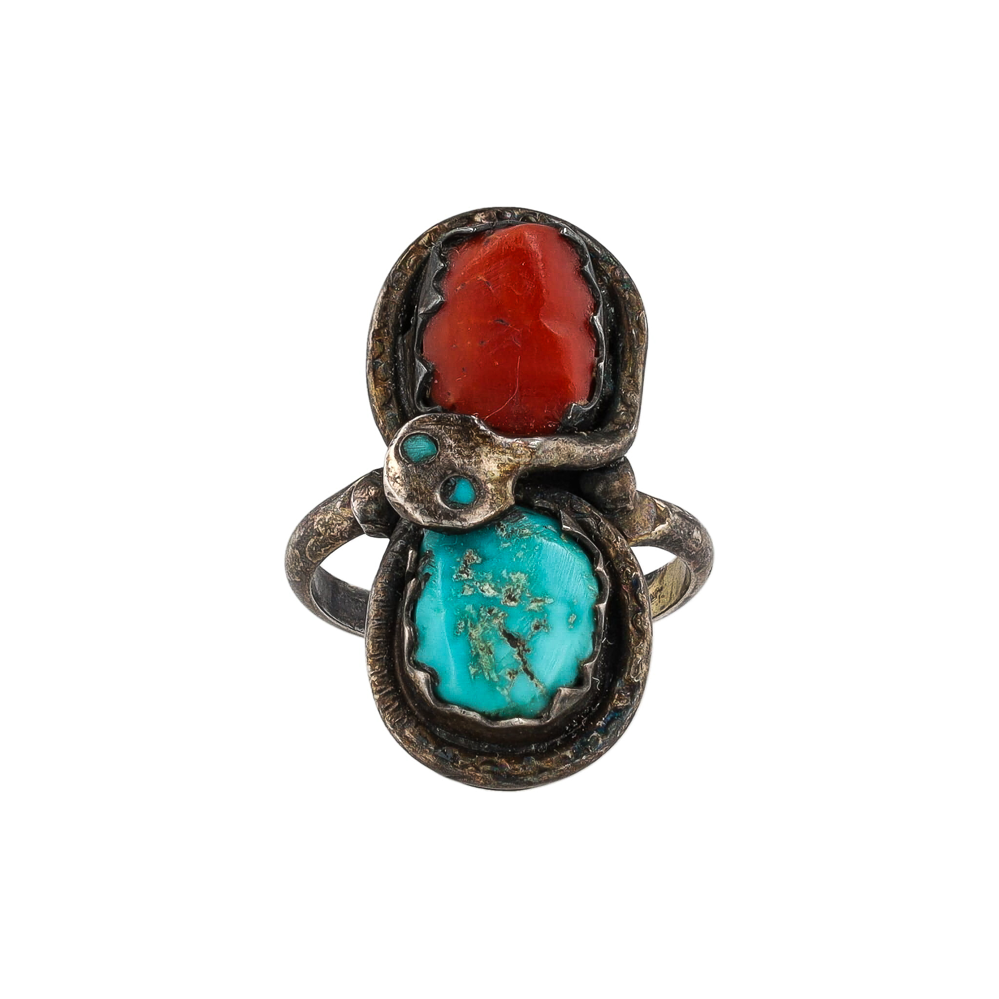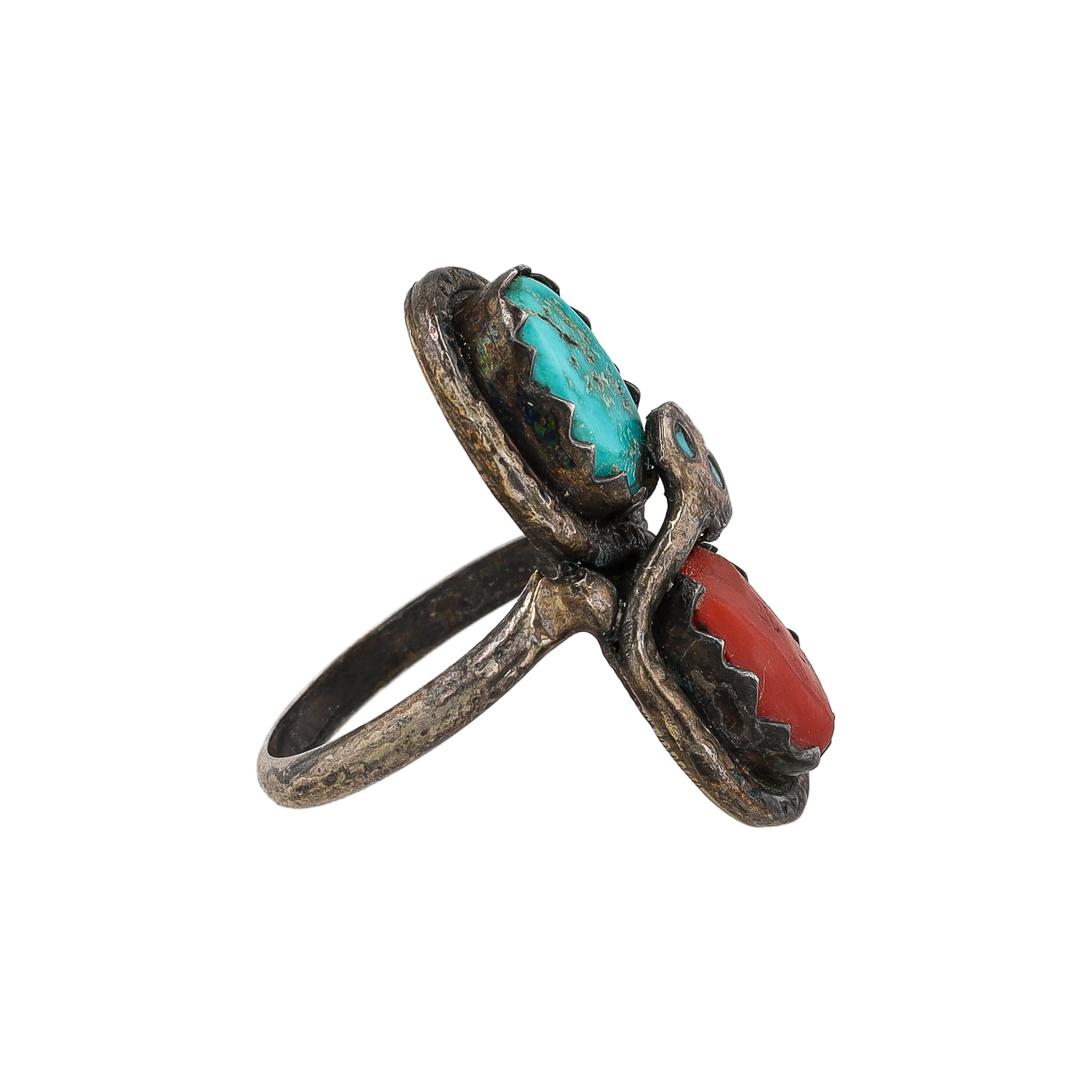 Effie Calavaza Zuni Turquoise Coral Sterling Slithering Snake Ring Sz. 6.25, 7g