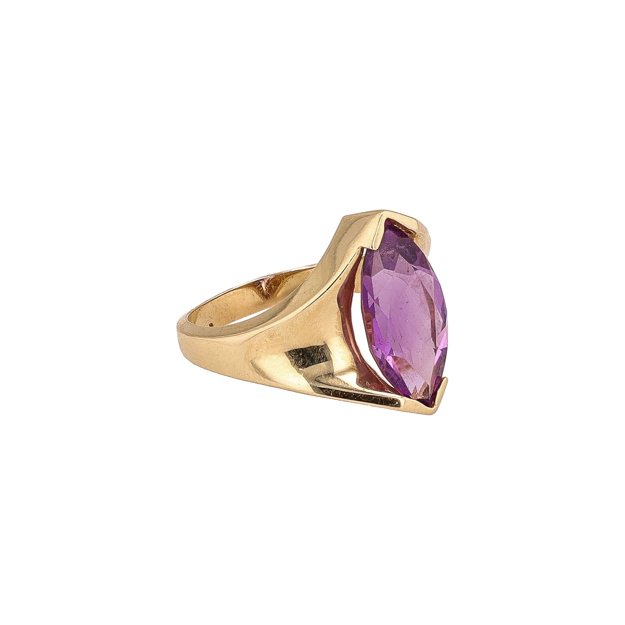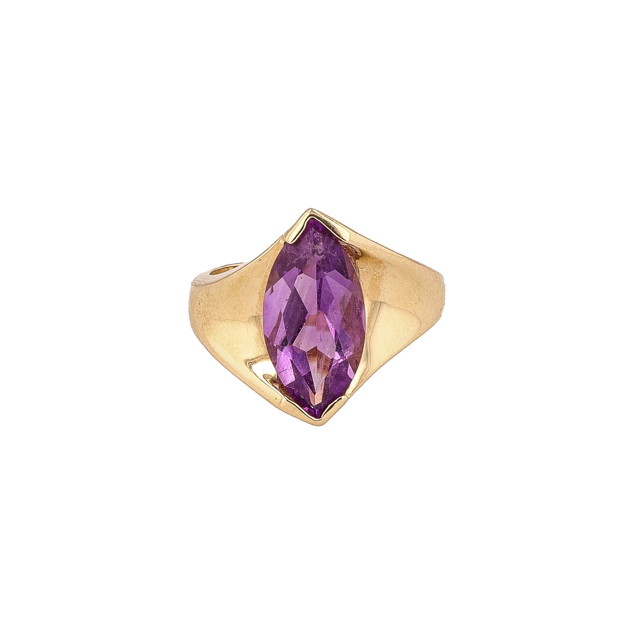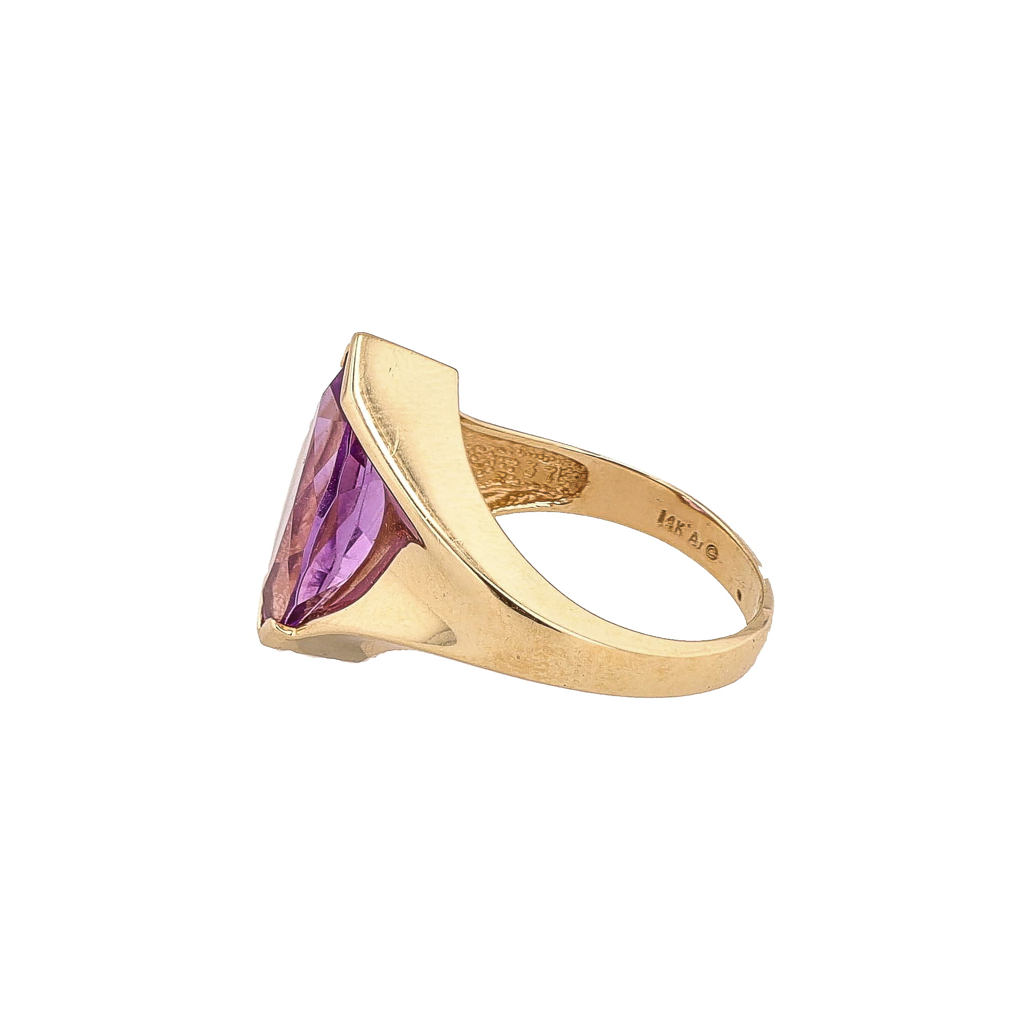 Signed AJ Amethyst 14K Gold Cocktail Ring Sz. 7, 5.6g