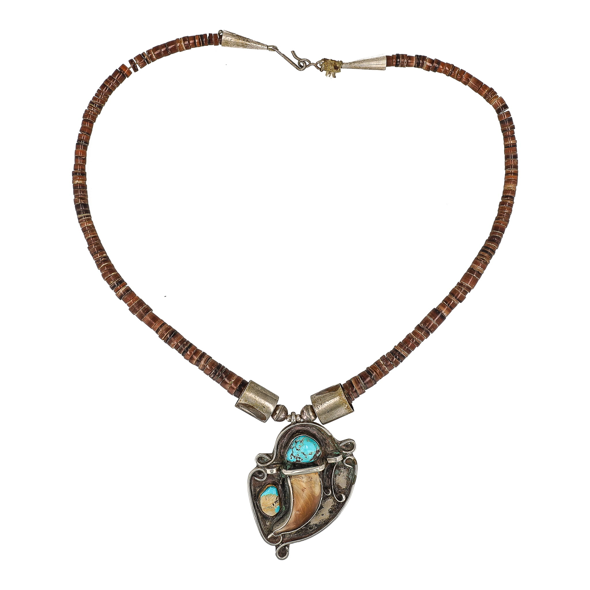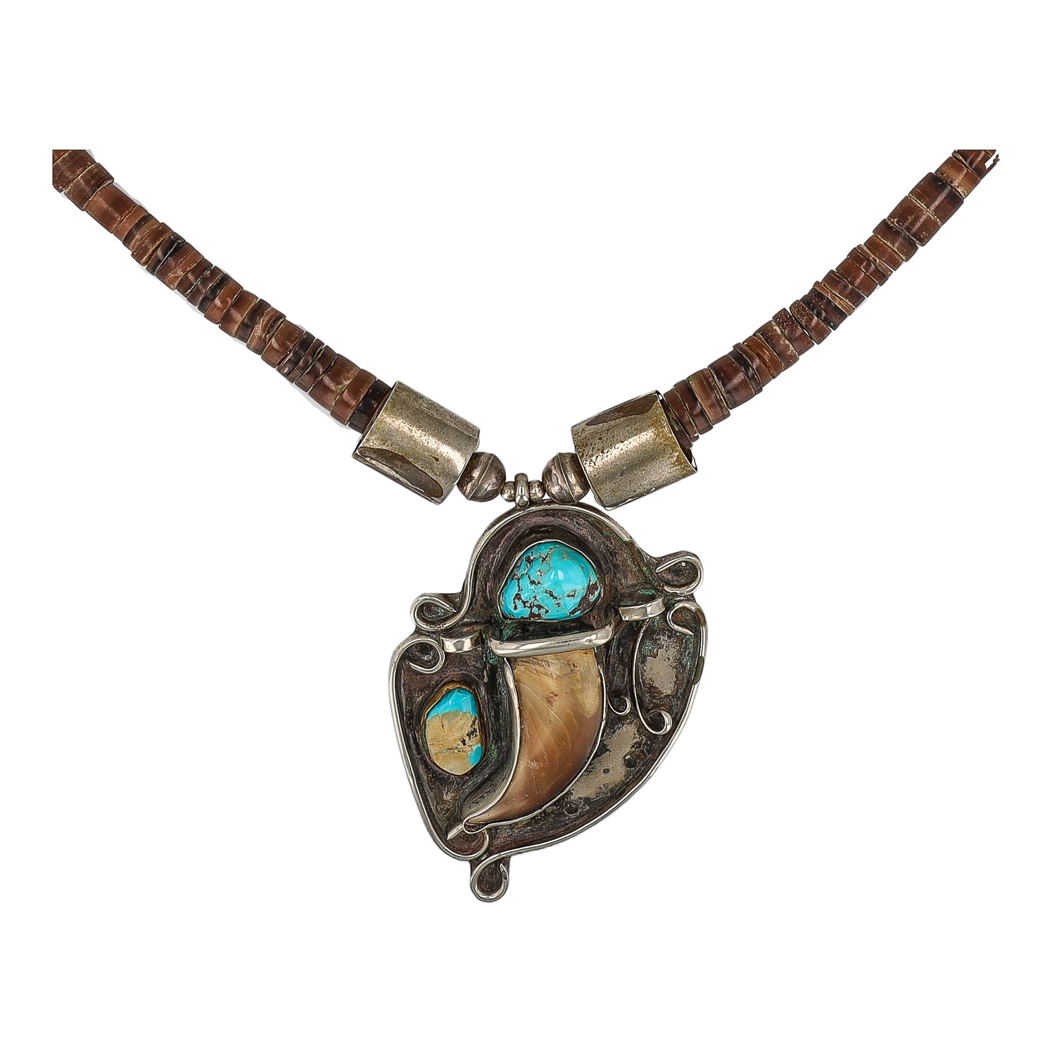 Signed Native American Heishi Bear Claw Chunky Turquoise Sterling Necklace 61g