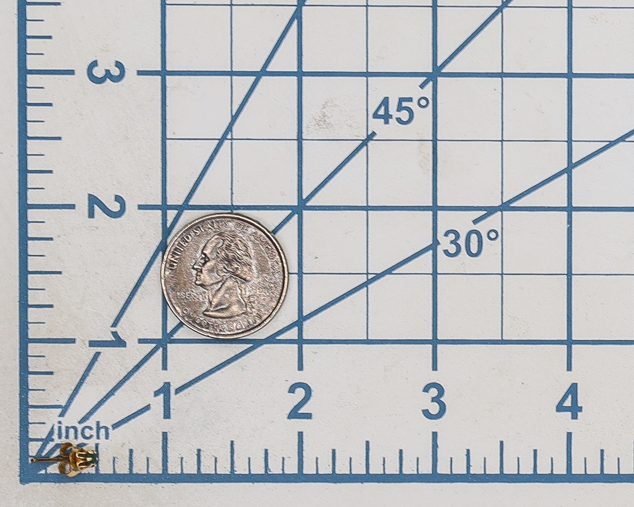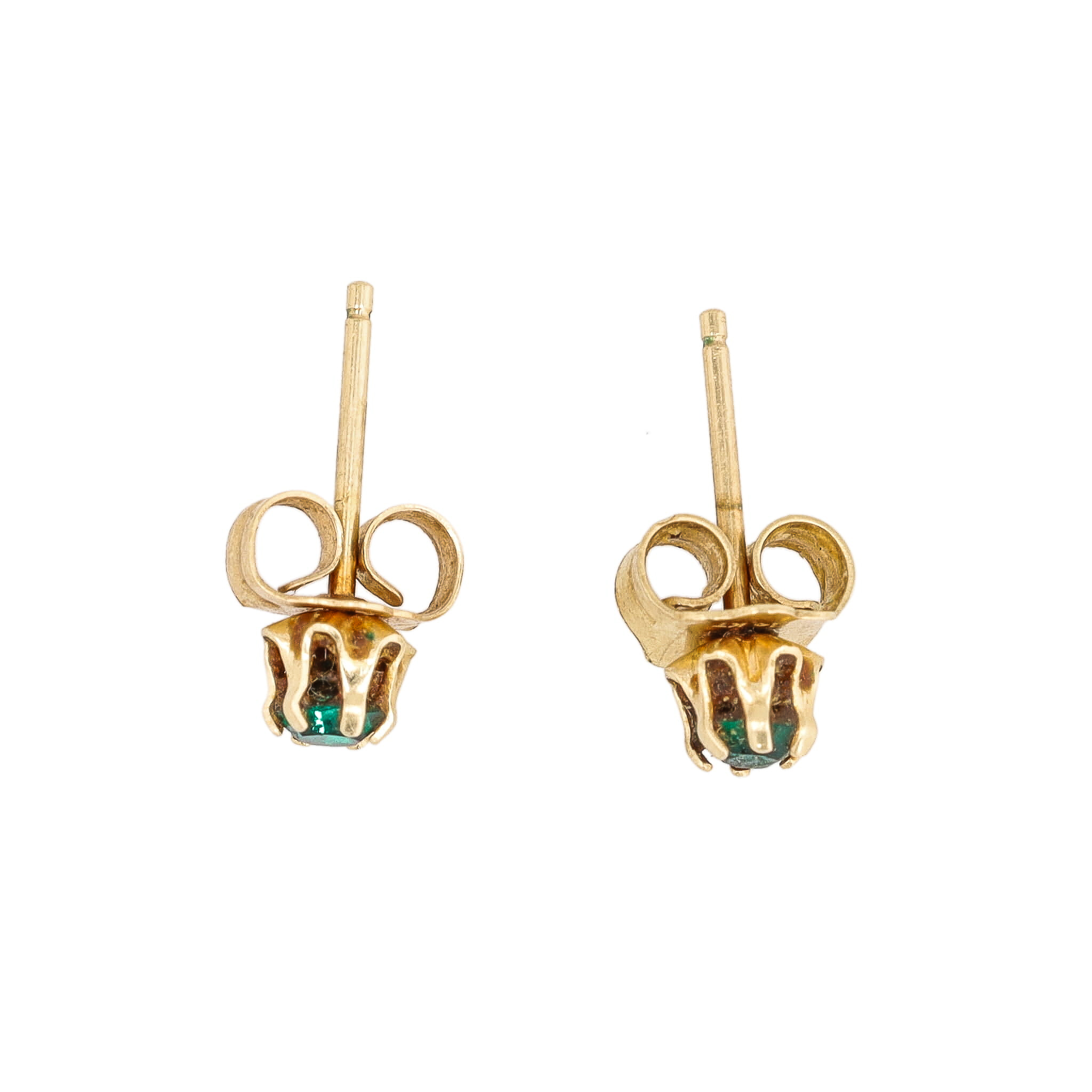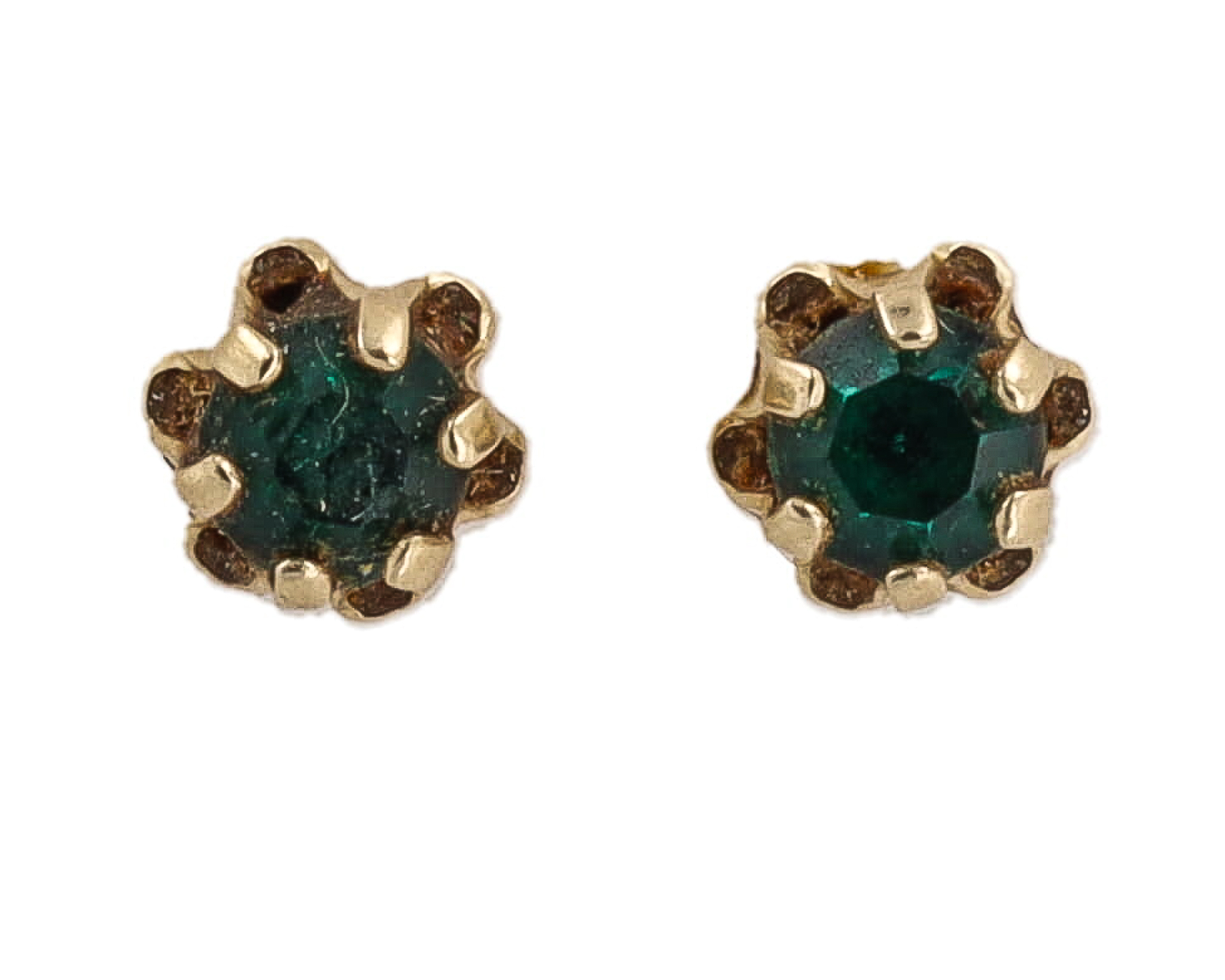Emerald Green Stone 14K Gold Stud Earrings 0.7g
