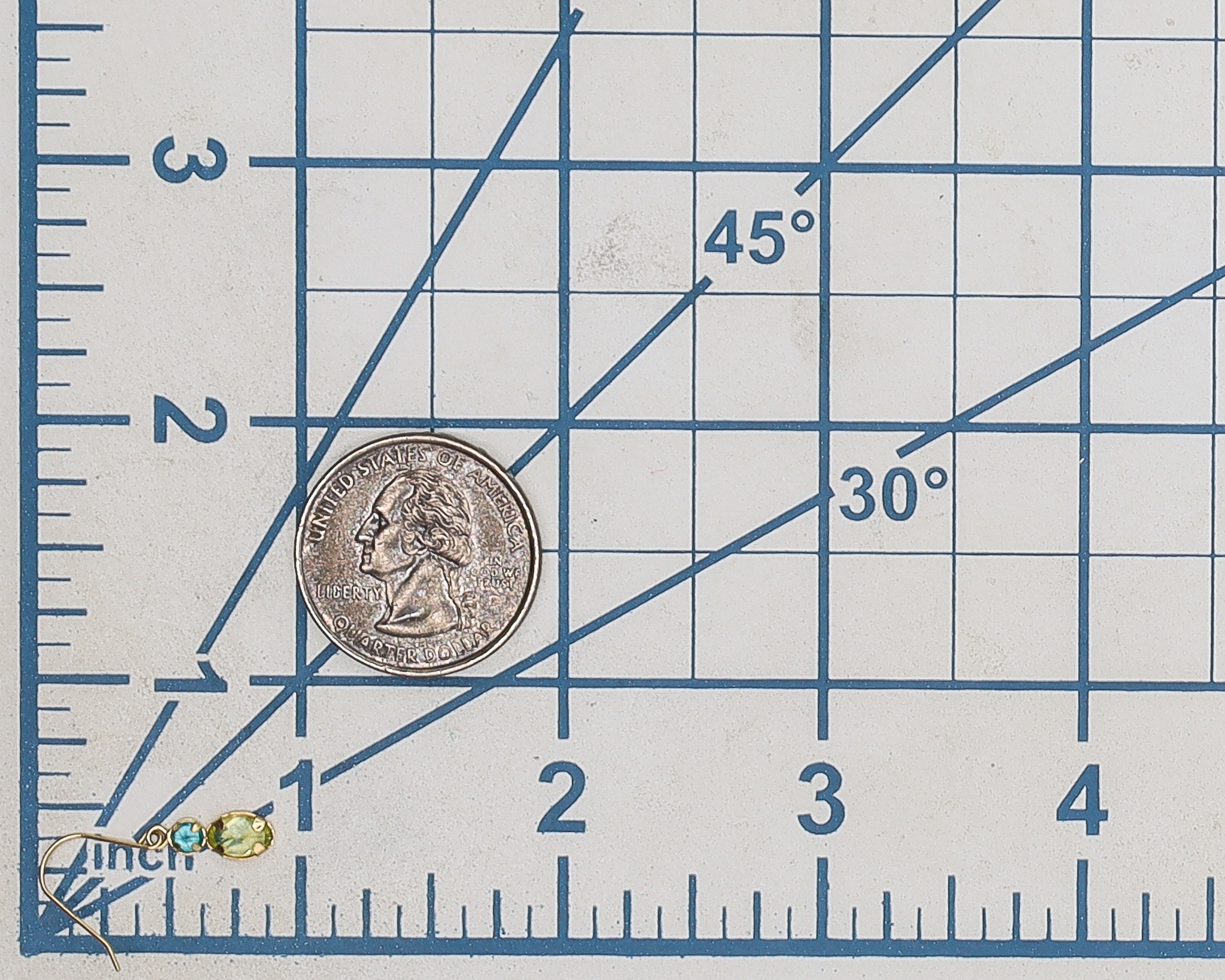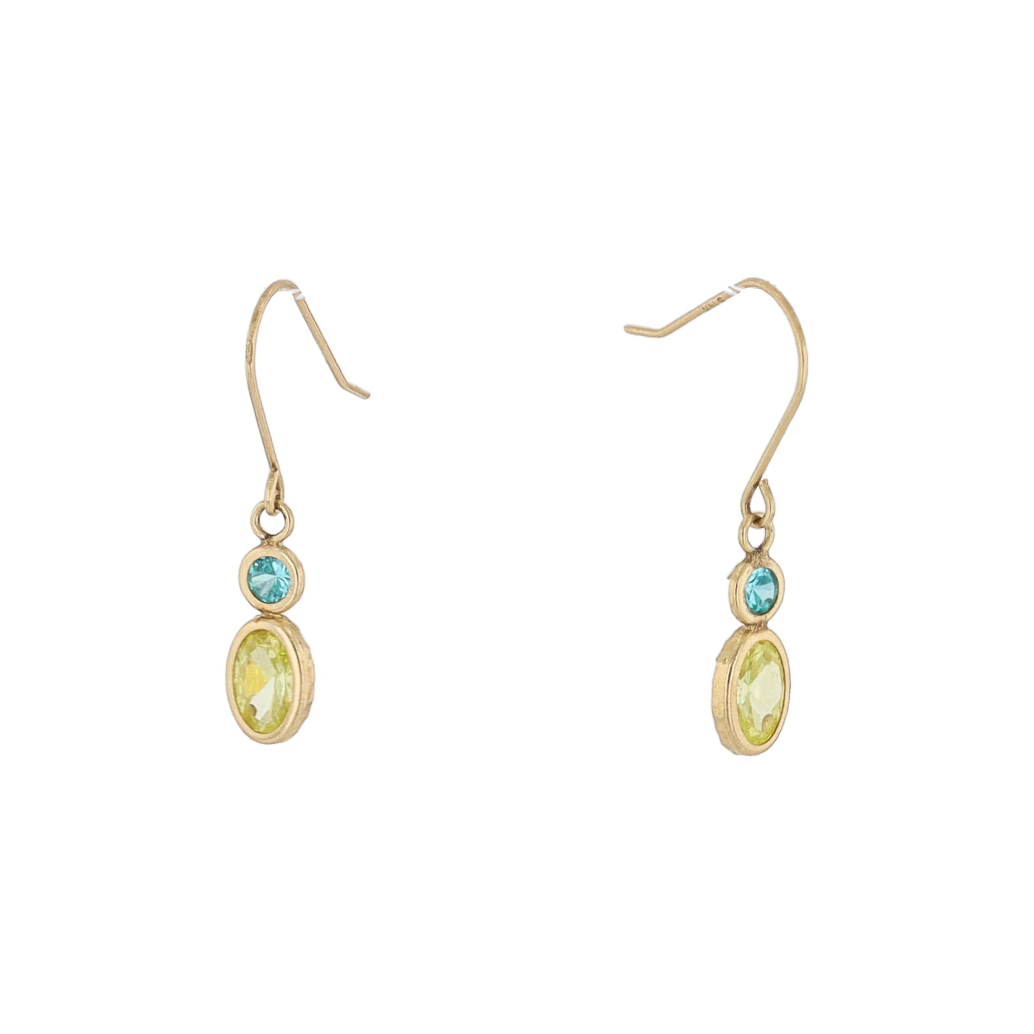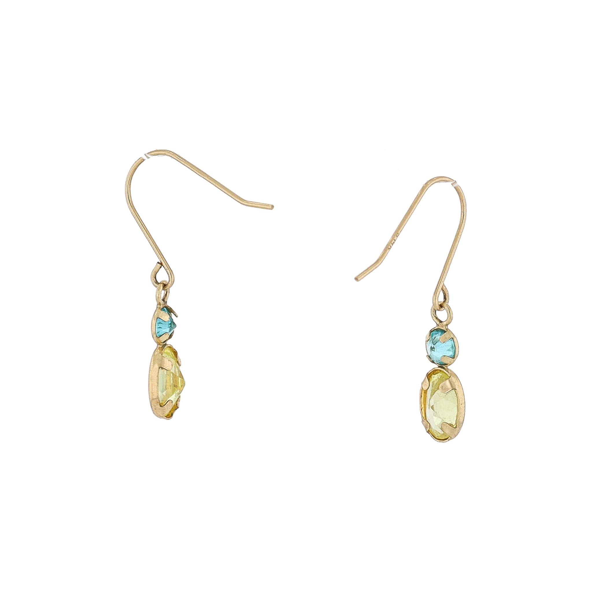 Yellow Blue Stone 14K Gold Drop Dangle Earrings 0.7g