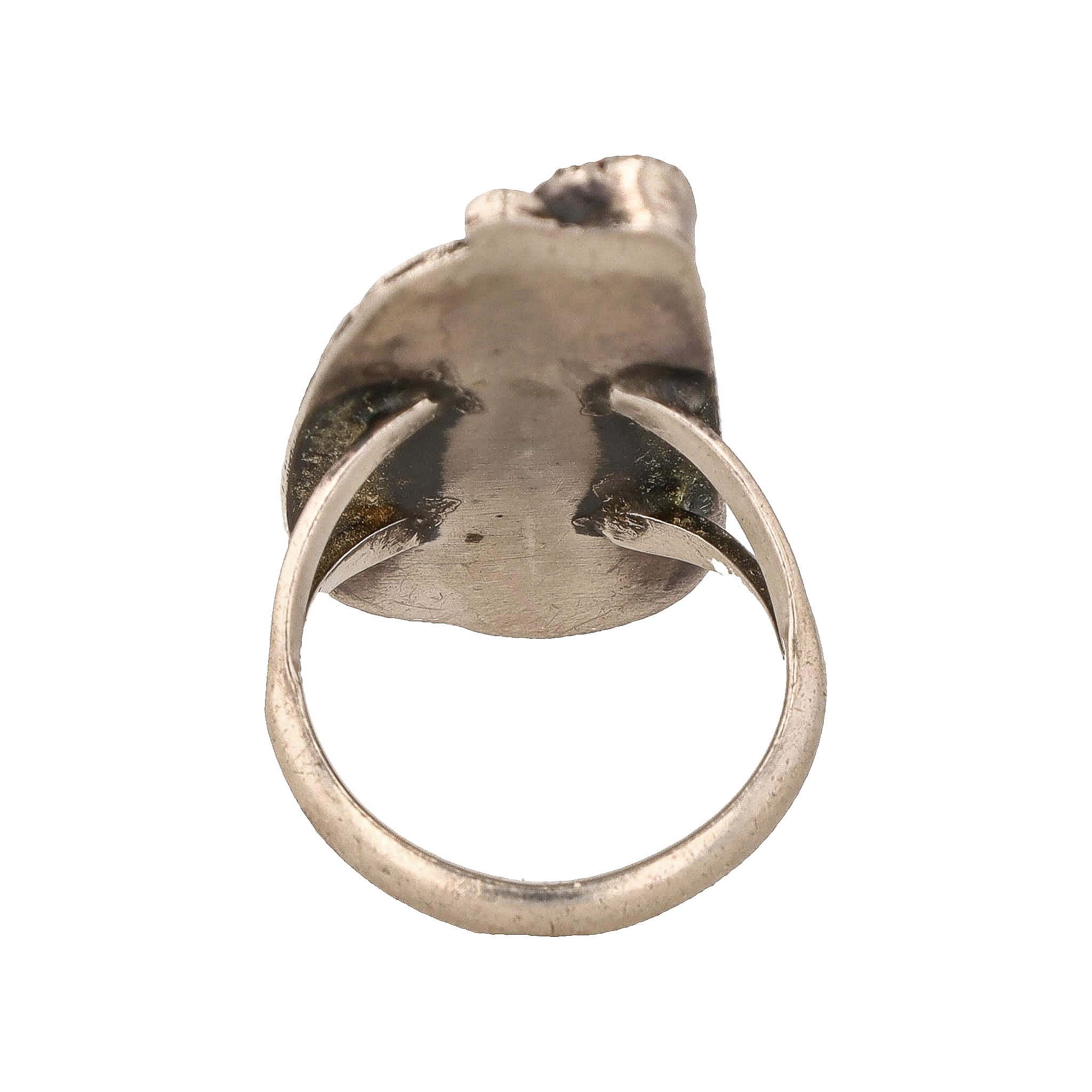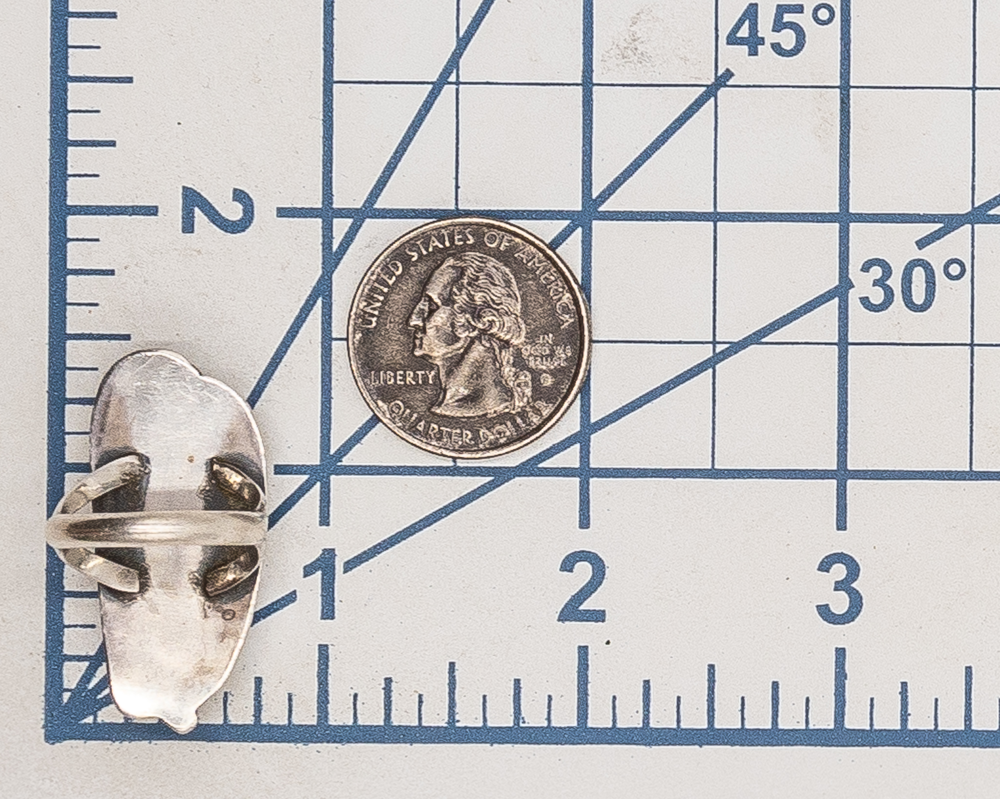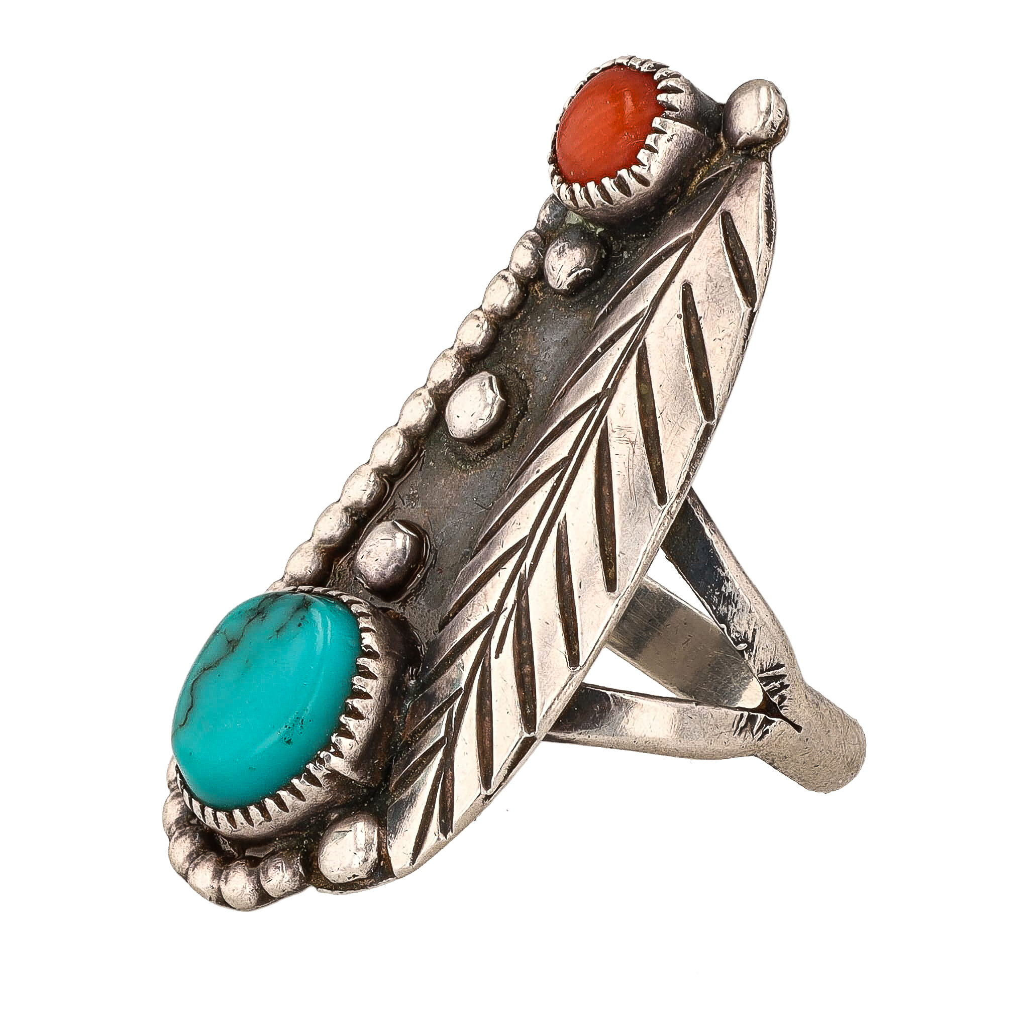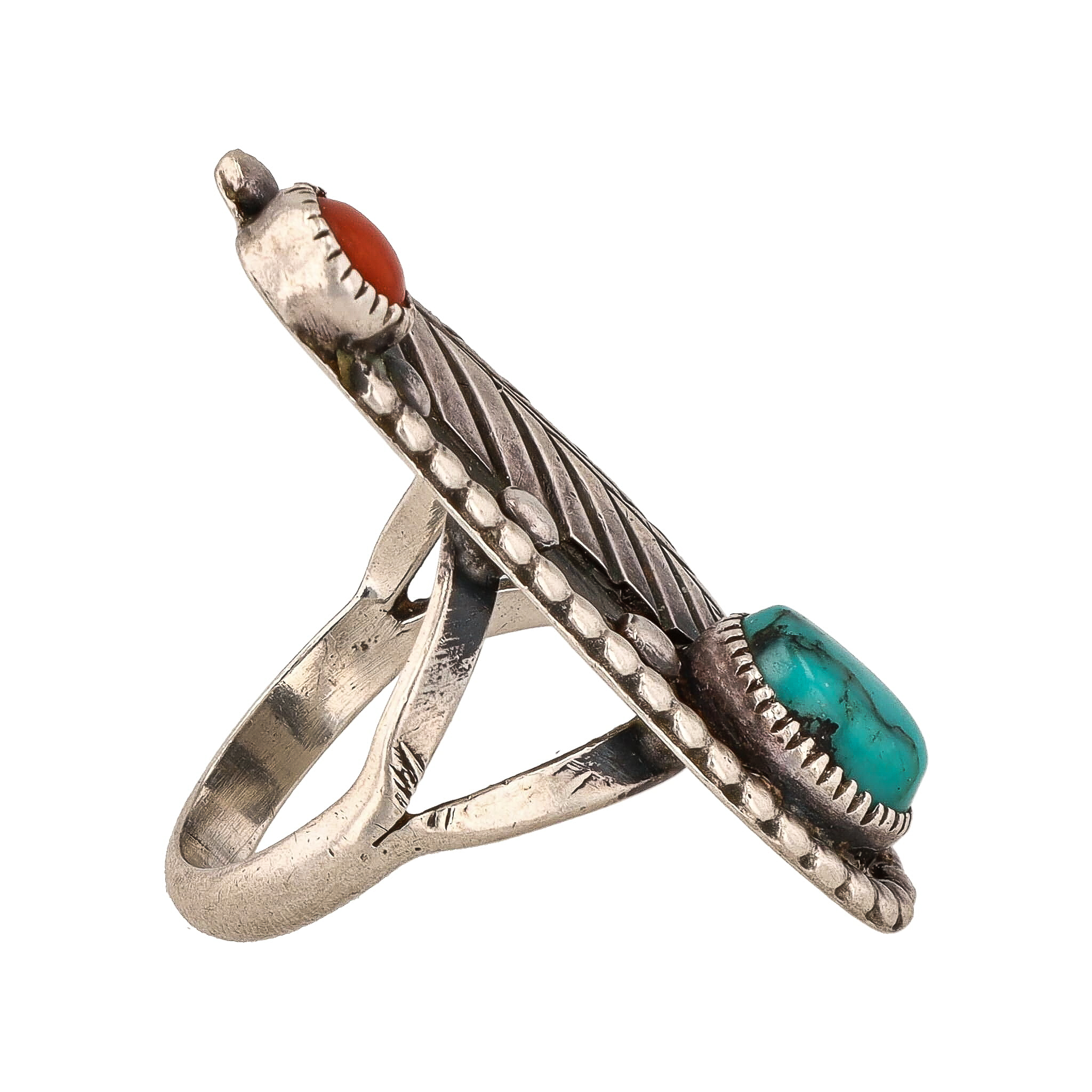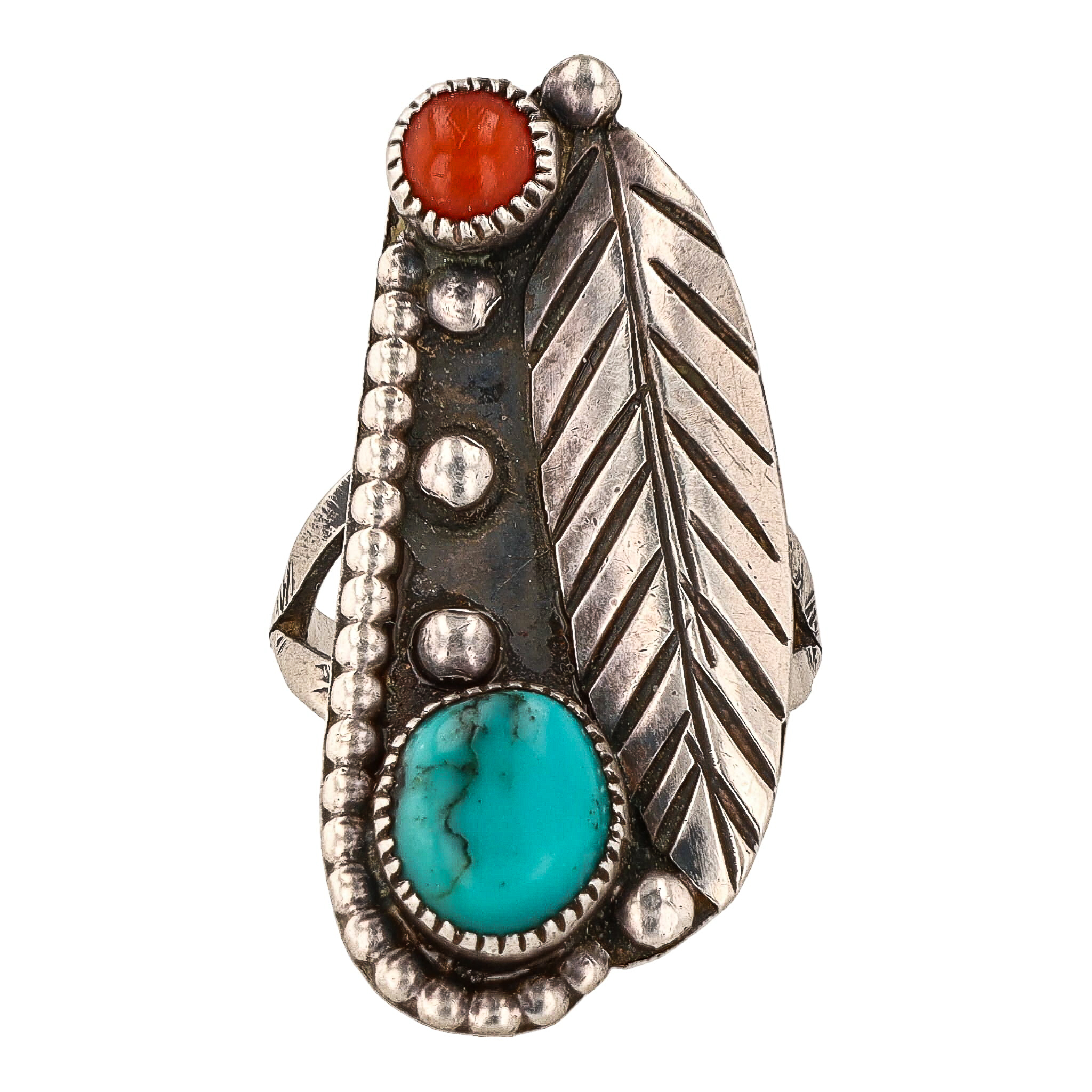 Vintage Navajo Coral Turquoise Sterling Leaf Ring Sz. 7.5, 7g