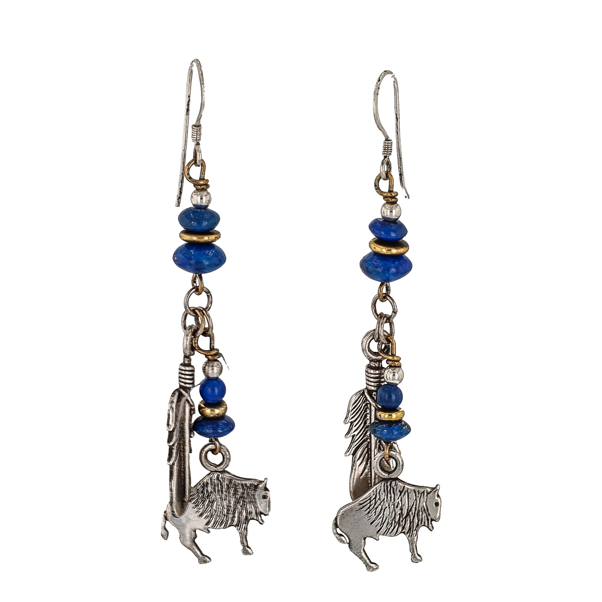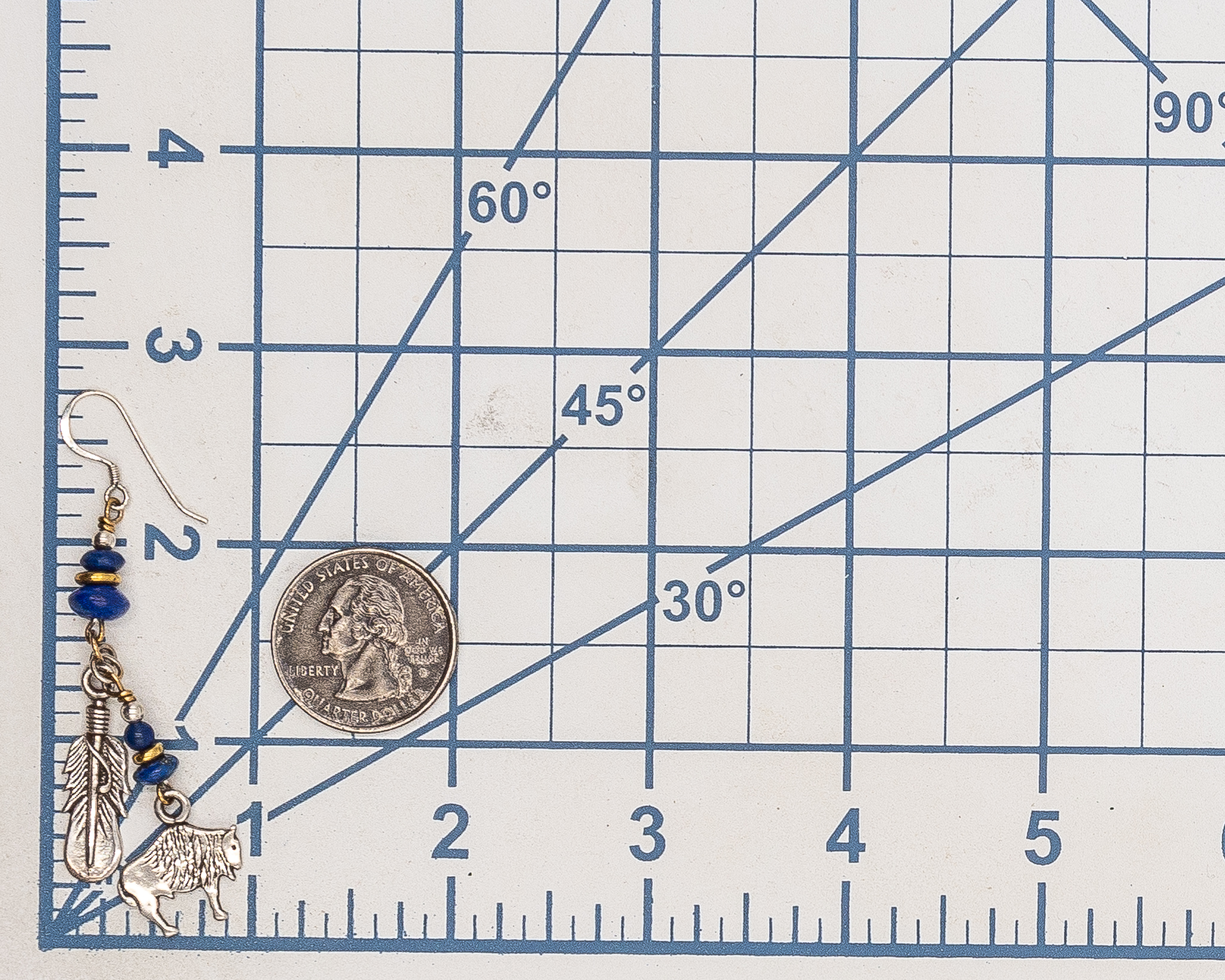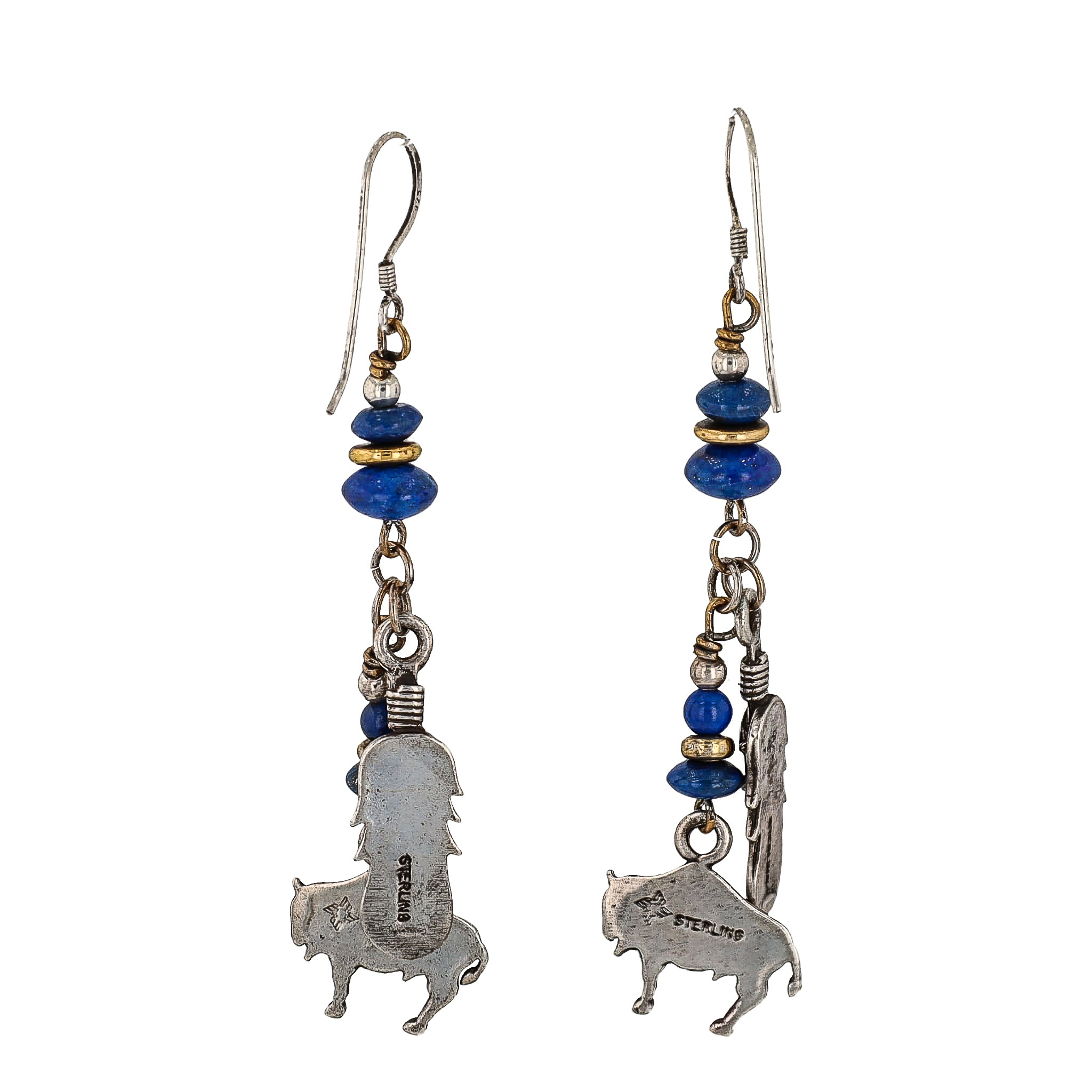 Sun West Silver Co. Lapis Sterling Buffalo Feather Drop Dangle Earrings 10.5g